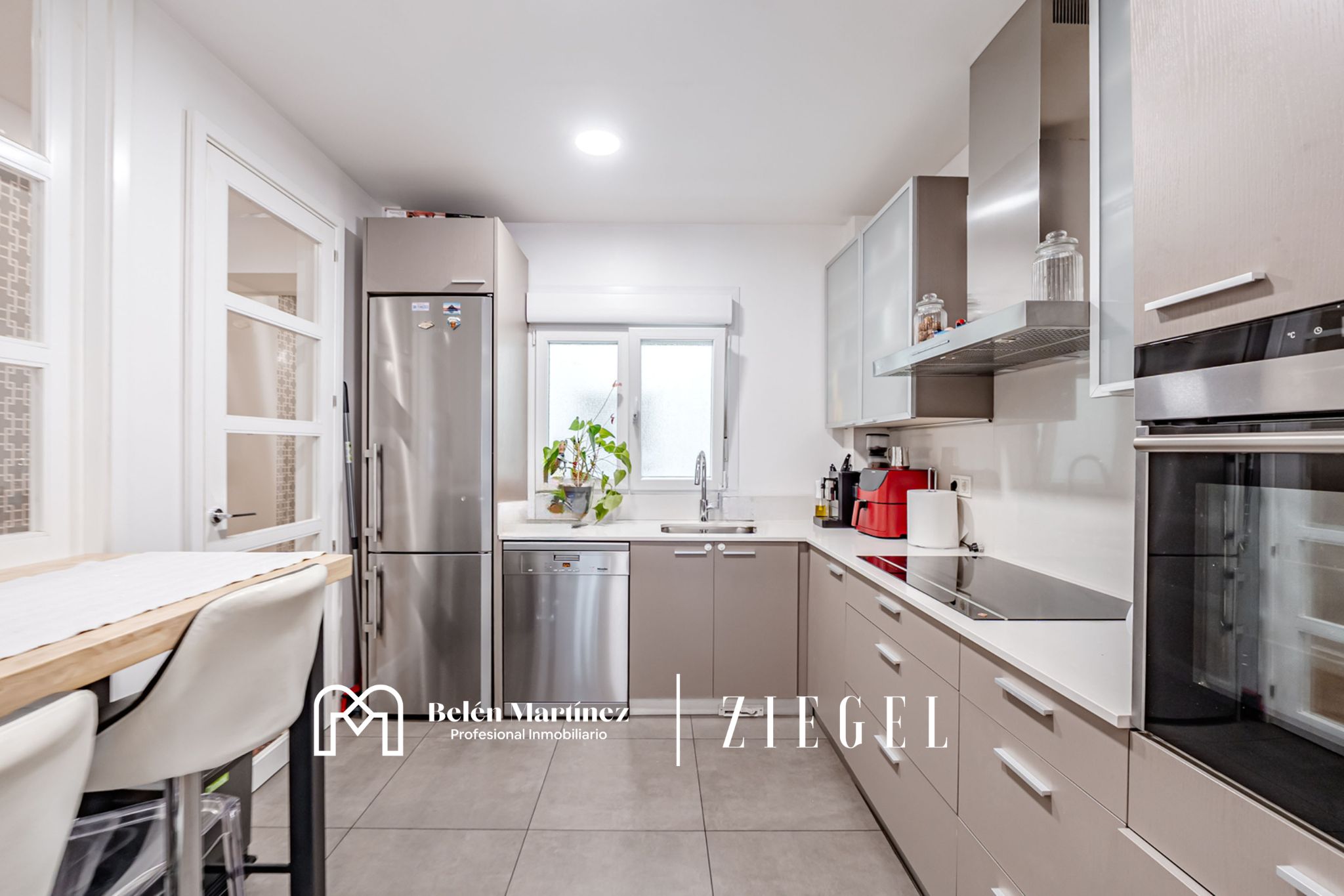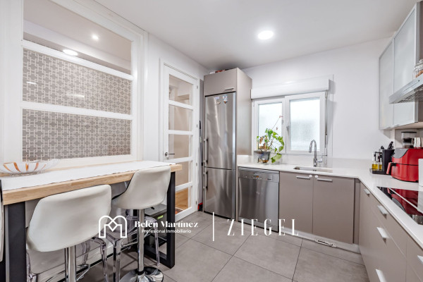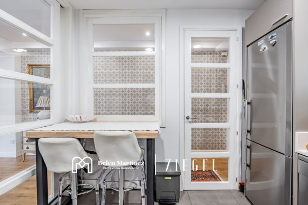 El corazón de la casa es su gran salón-comedor, un espacio exterior inundado de sol que cuenta con el privilegio de una terraza, el rincón perfecto para disfrutar de un café por la mañana o sentir el pulso del barrio. El salón conecta de forma súper cómoda con una cocina de alta gama, totalmente equipada y pensada para que el día a día sea fluido y funcional. Además, no tendrás que preocuparte por el ruido o el clima: toda la casa cuenta con ventanas Climalit abatibles con rotura de puente térmico, garantizando un silencio y una temperatura perfectos durante todo el año.