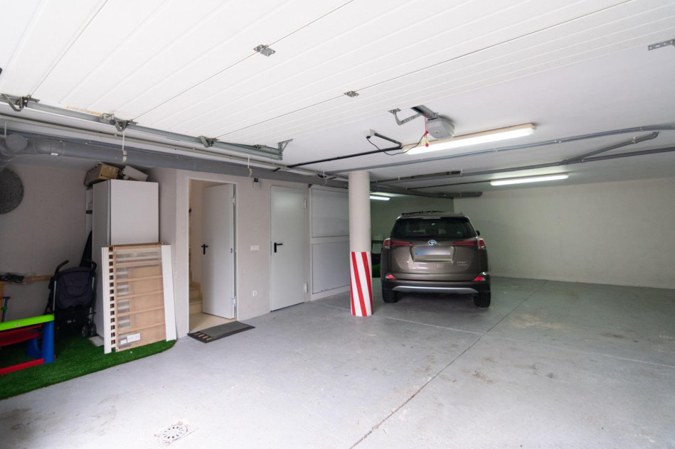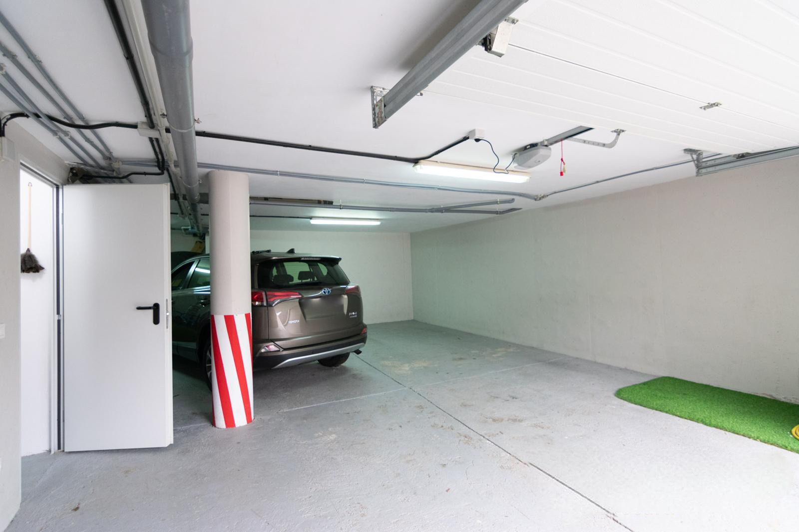 Garaje amplio con capacidad para 3 vehículos, cómodo acceso y espacio adicional de almacenaje.