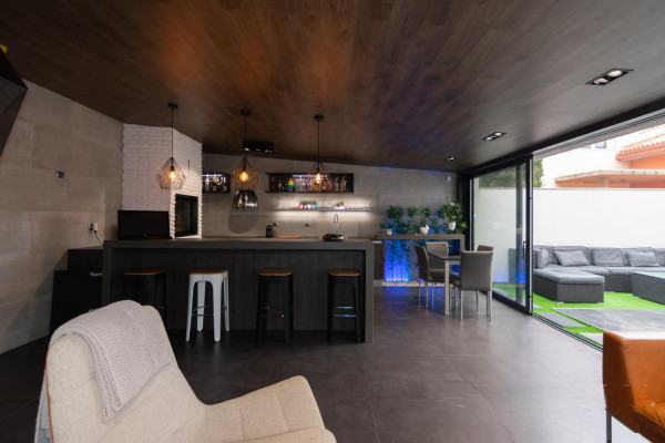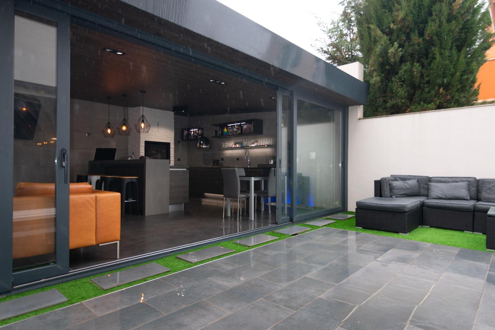 Terraza cerrada con cocina equipada