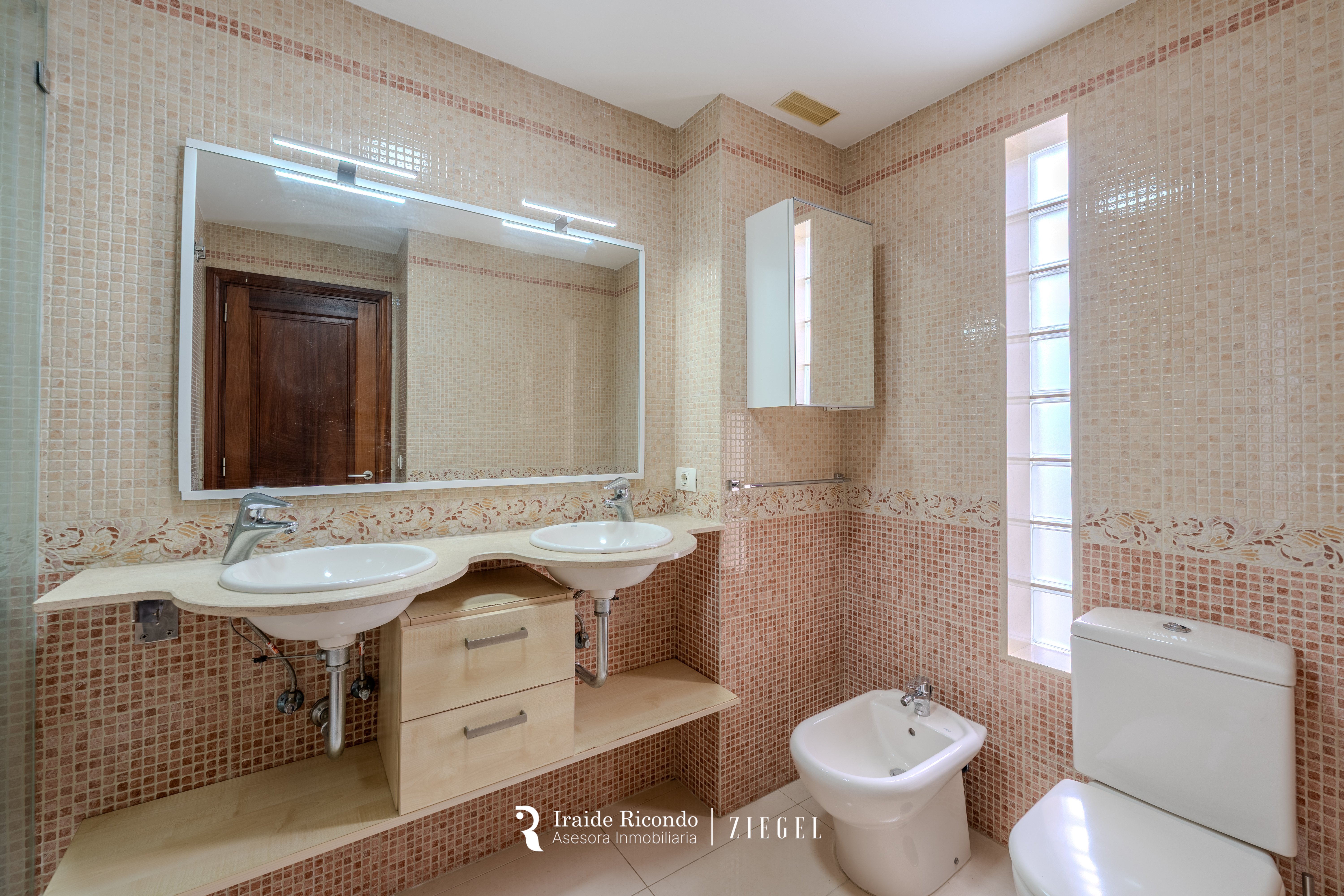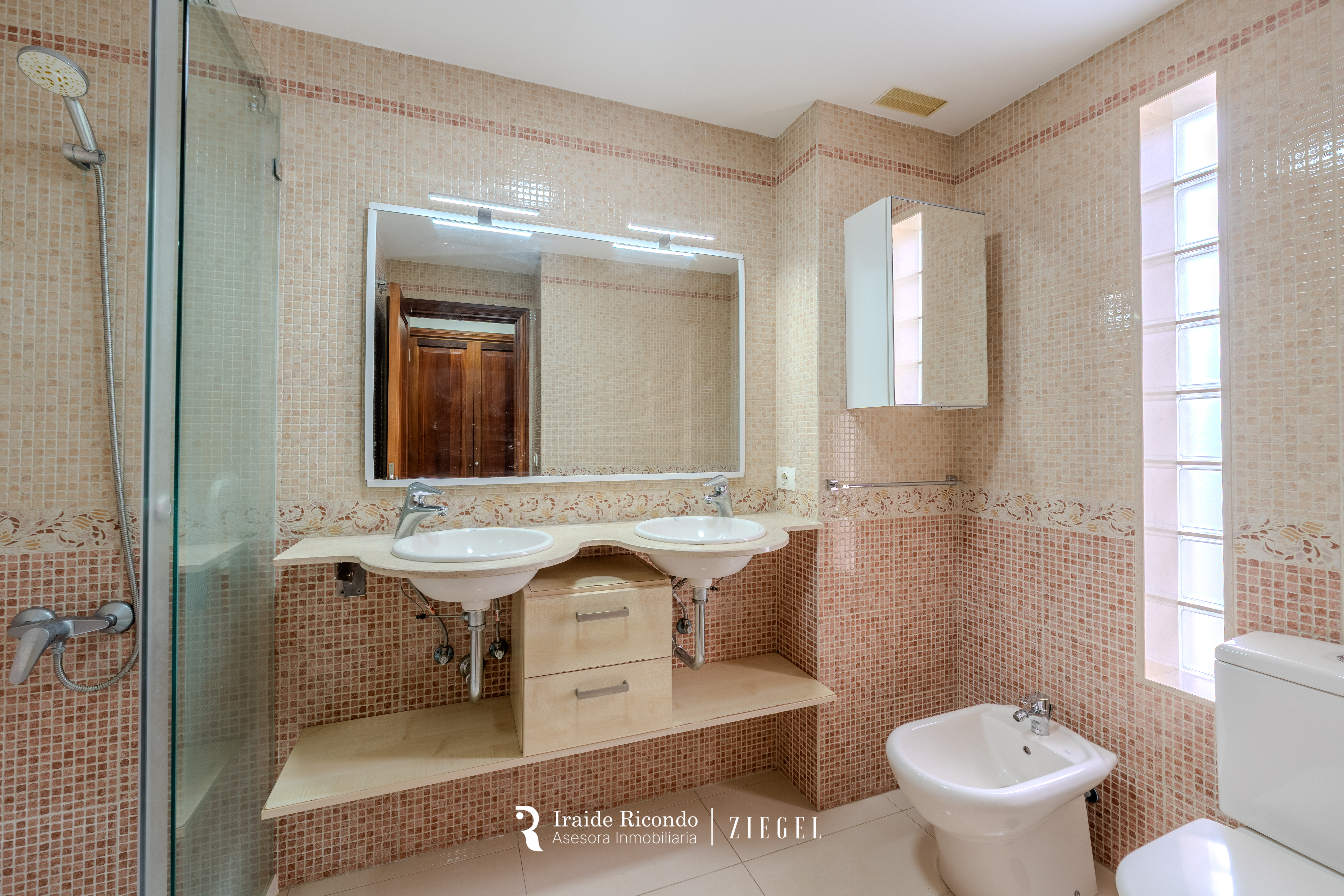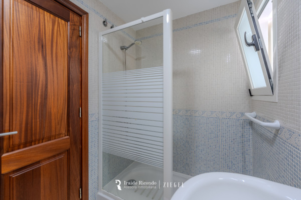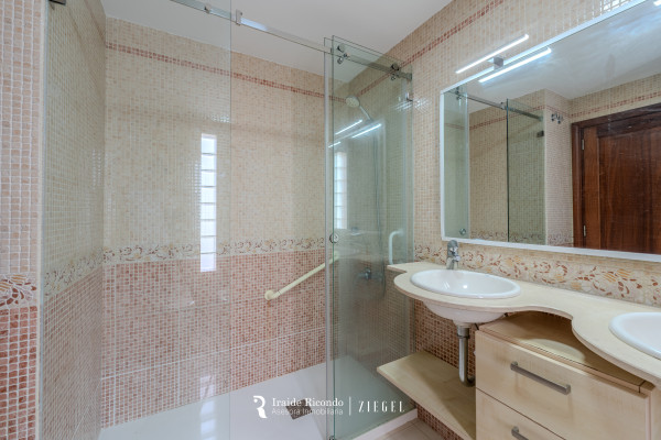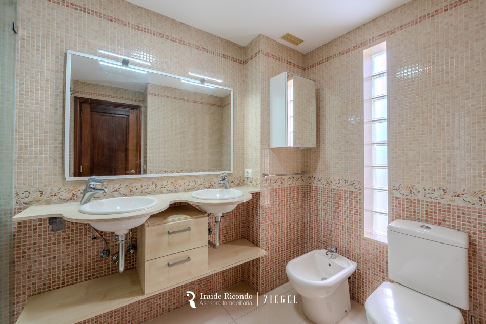 El inmueble dispone de tres dormitorios: un amplio dormitorio principal con armarios empotrados y baño en suite, y dos dormitorios adicionales que comparten un segundo baño completo con plato de ducha.