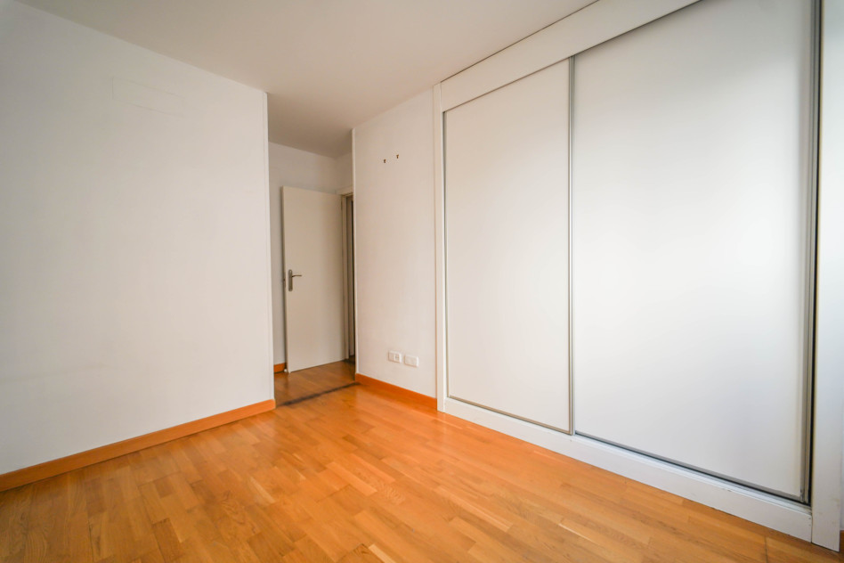 A la izquierda del pasillo yace el refugio del descanso: un dormitorio juvenil que se asoma al patio exterior y un baño general equipado con ducha. La suite principal, con armario empotrado y caja fuerte, ofrece intimidad gracias a su baño propio. Las ventanas con sistema climalit aseguran el confort acústico y térmico, aislándote del mundo exterior.