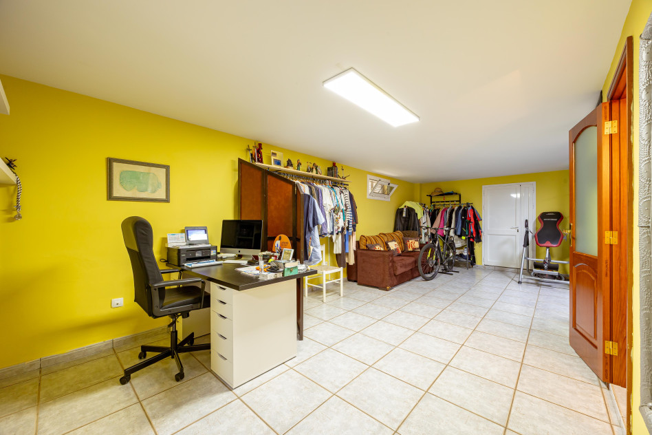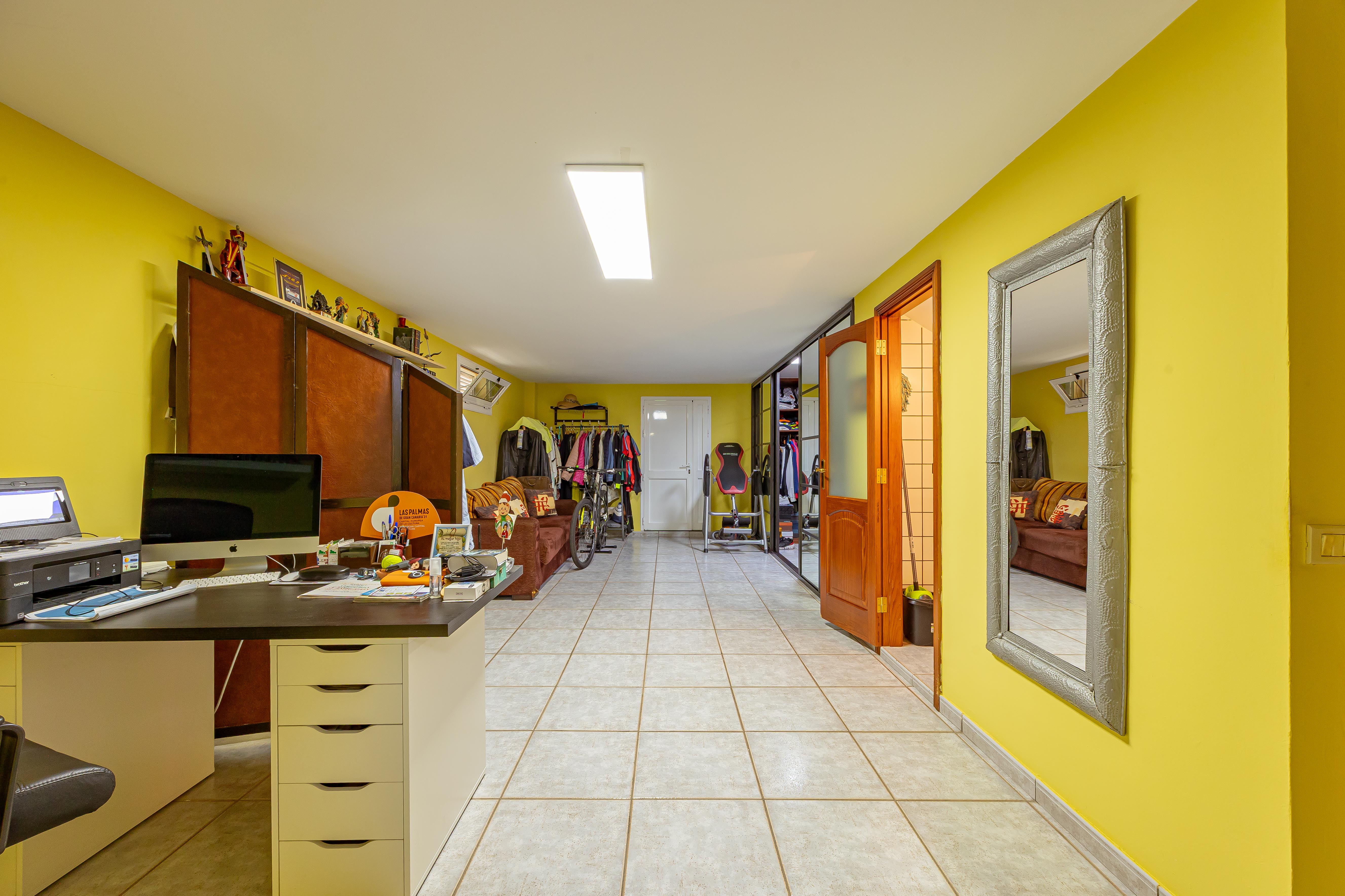 La planta baja es sorprendentemente versátil: una habitación actualmente utilizada como sala de TV, un gran vestidor, un aseo, una zona de despacho y salida directa al garaje. Ideal para teletrabajar o para quienes necesitan espacio adicional para hobbies, almacenaje o proyectos personales.