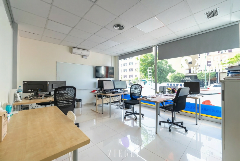 El espacio cuenta con grandes cristaleras, aportando una visibilidad excepcional y convirtiéndolo en un local ideal tanto para oficinas como para actividades formativas, centros de estudio, academias, despachos profesionales o negocios que requieran exposición hacia la calle. Gracias a su distribución actual, dispone de varias salas amplias, zonas de trabajo, recepción y climatización instalada.