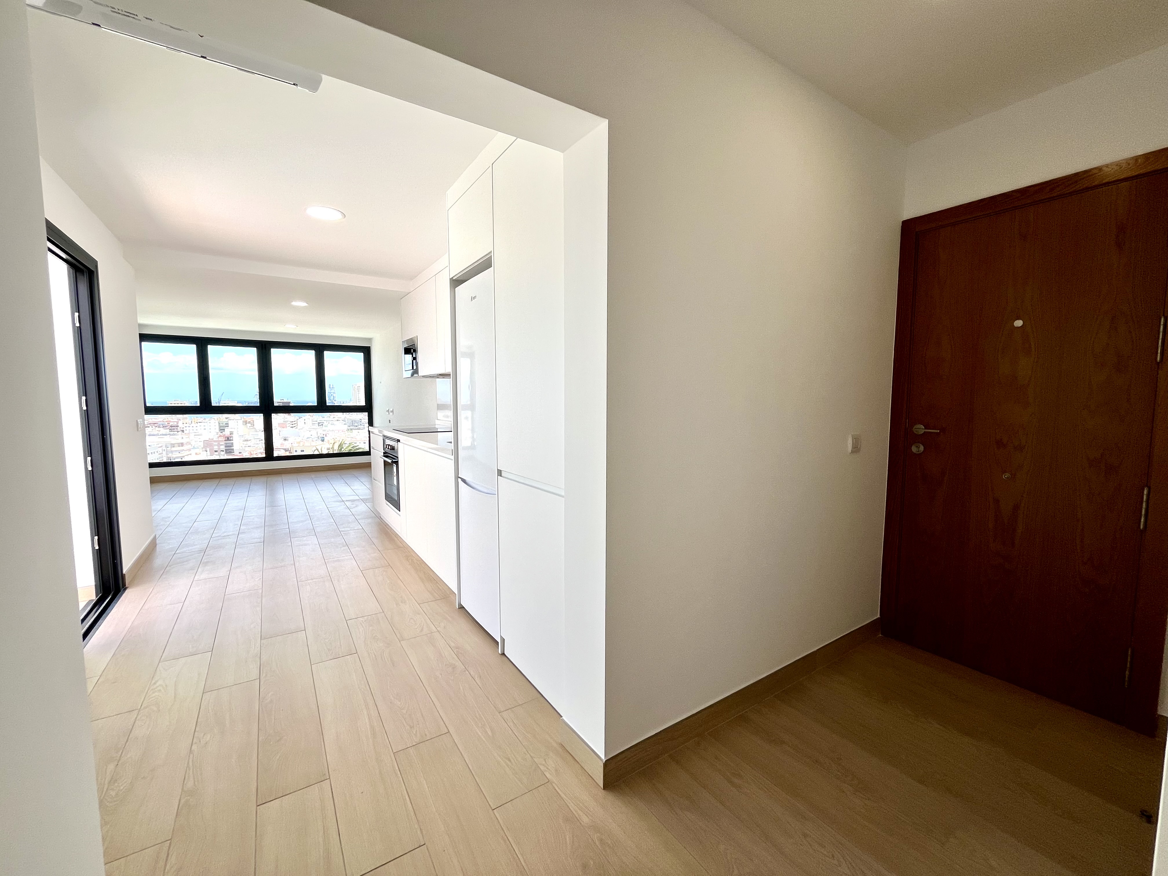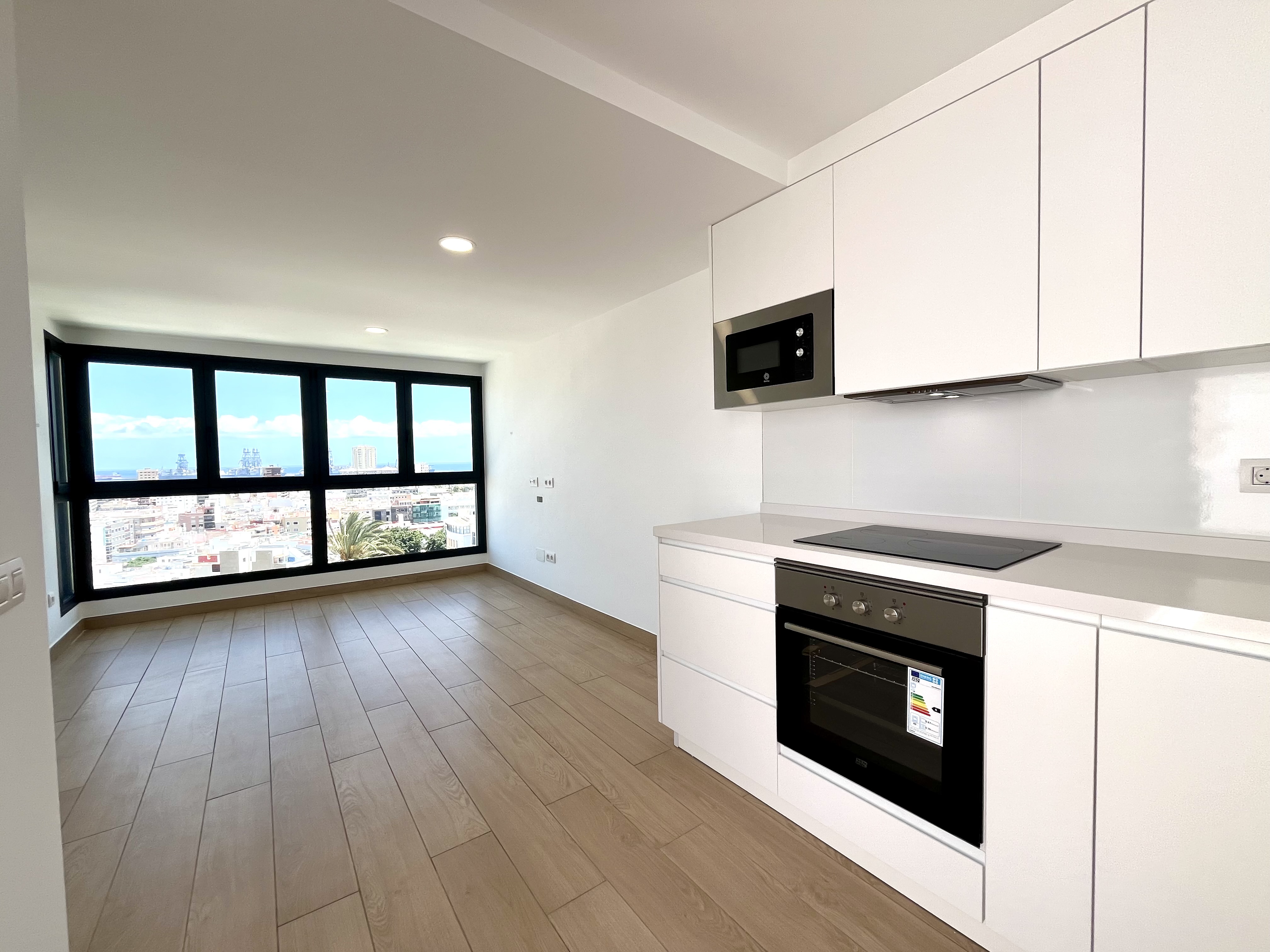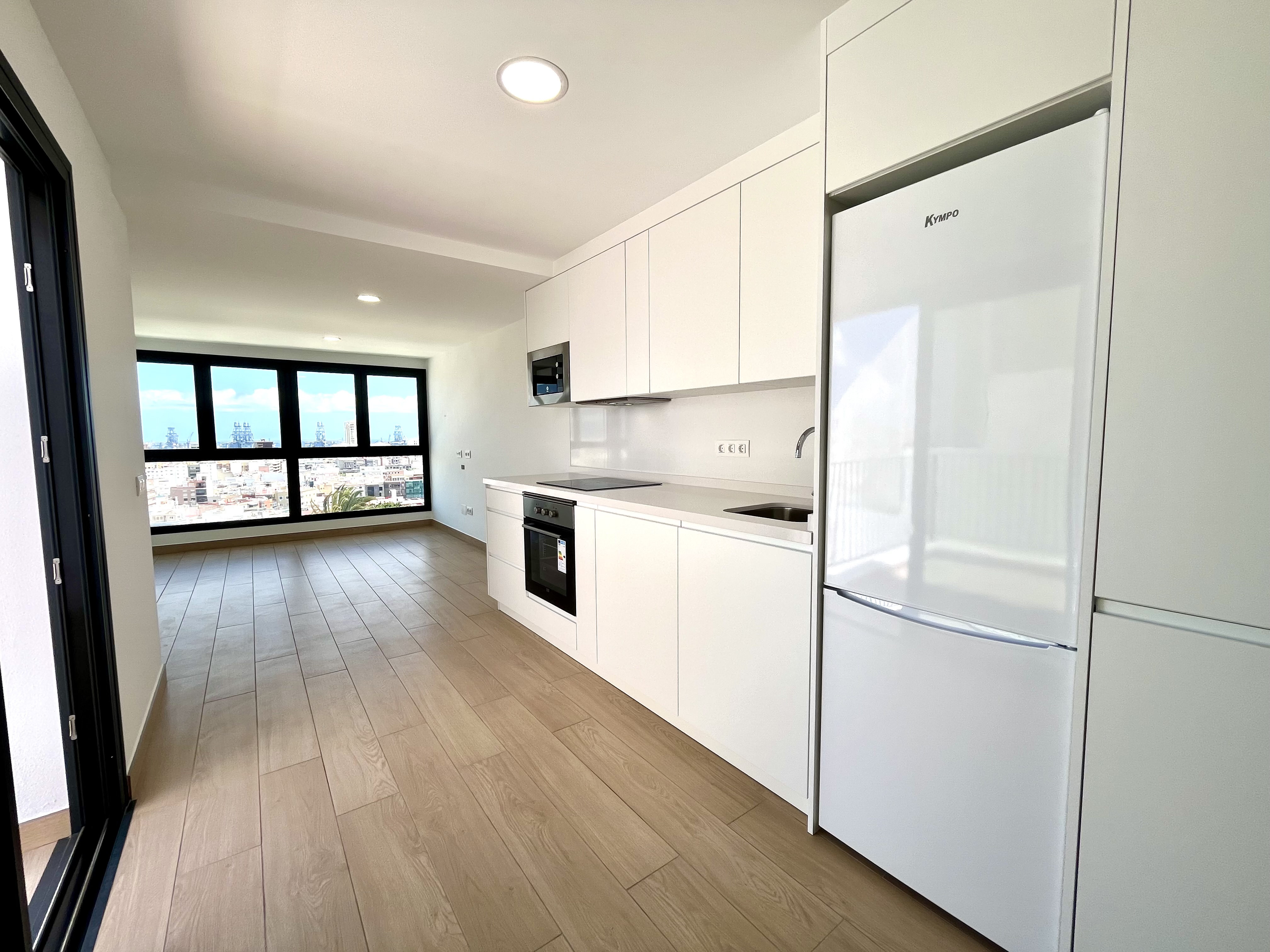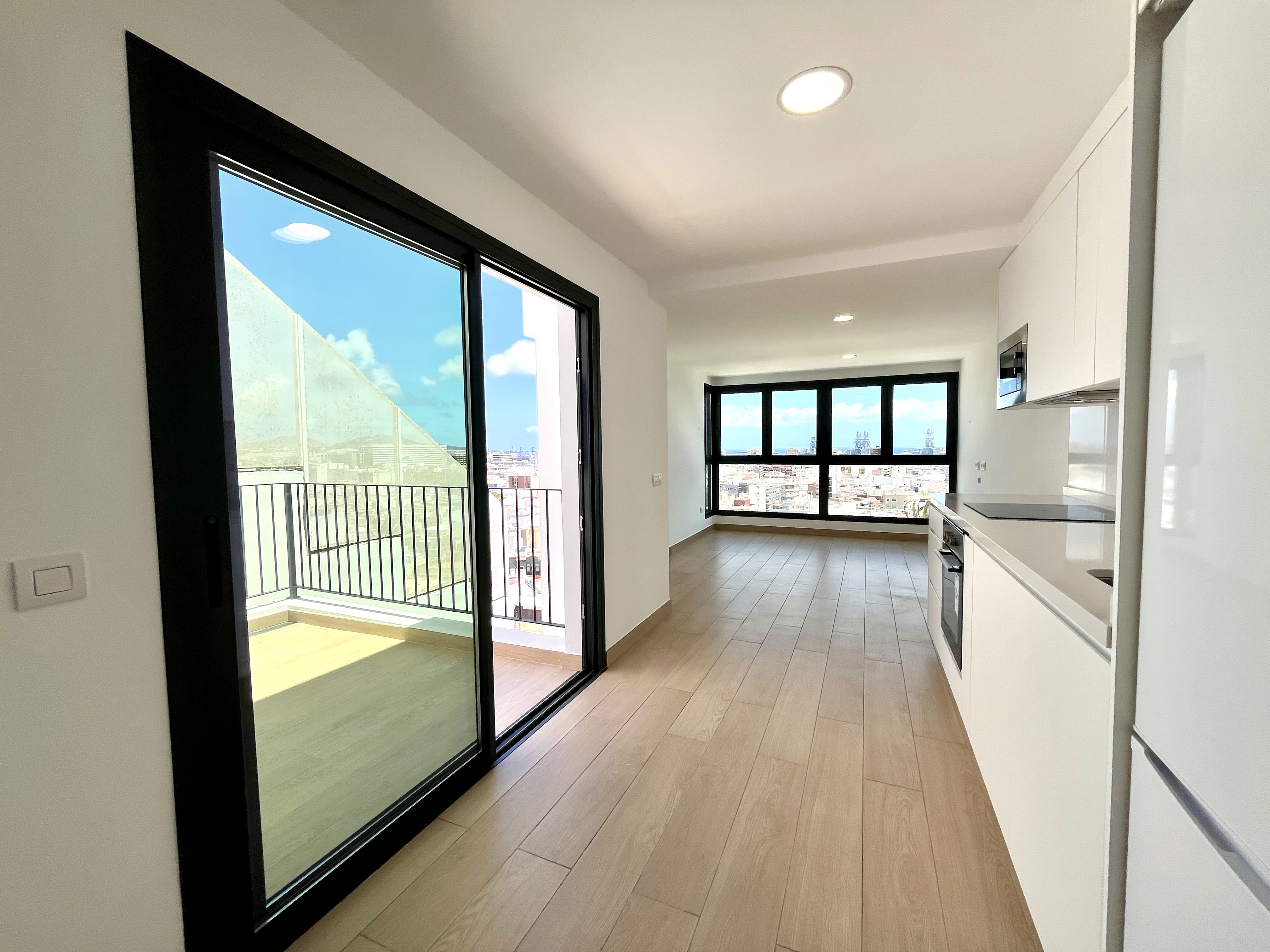 Sus grandes ventanales protagonizan el diseño abierto del inmueble, permitiendo que cada rincón se inunde de luz natural. Las vistas panorámicas al vibrante paisaje urbano y al majestuoso mar, capturadas a través de estos ventanales, enriquecen el ambiente y ofrecen un entorno singularmente sereno. La integración de la cocina y el salón con la terraza (10 metros cuadrados) refuerza la sensación de amplitud creando un espacio fluido y luminoso ideal para compartir momentos únicos.