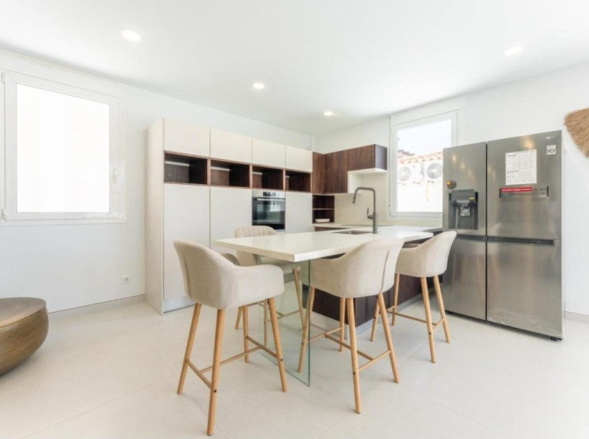 La villa cuenta con 3 dormitorios amplios, 2 baños elegantes, un salón-comedor de diseño y una cocina totalmente amoblada y equipada, pensada para el confort y el disfrute diario.