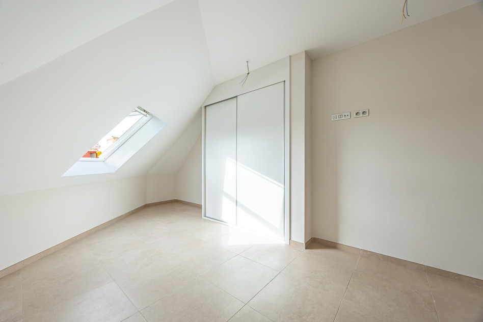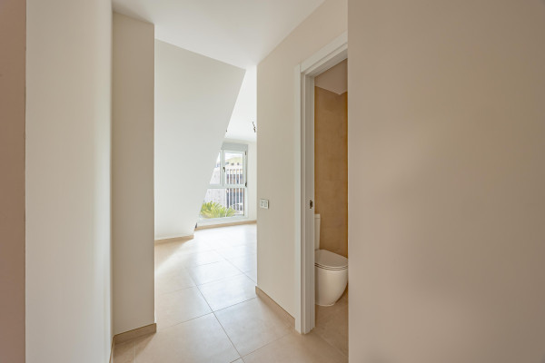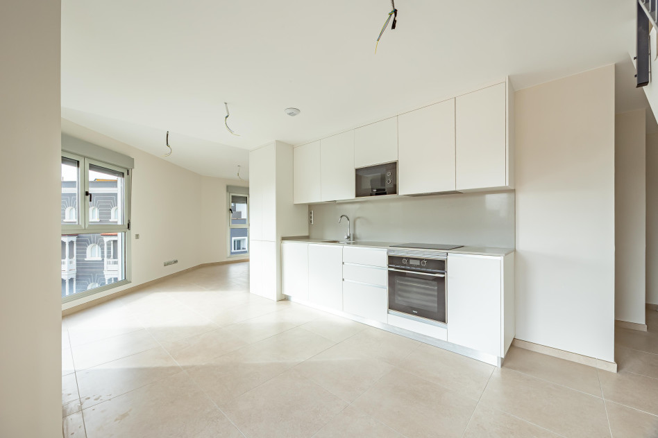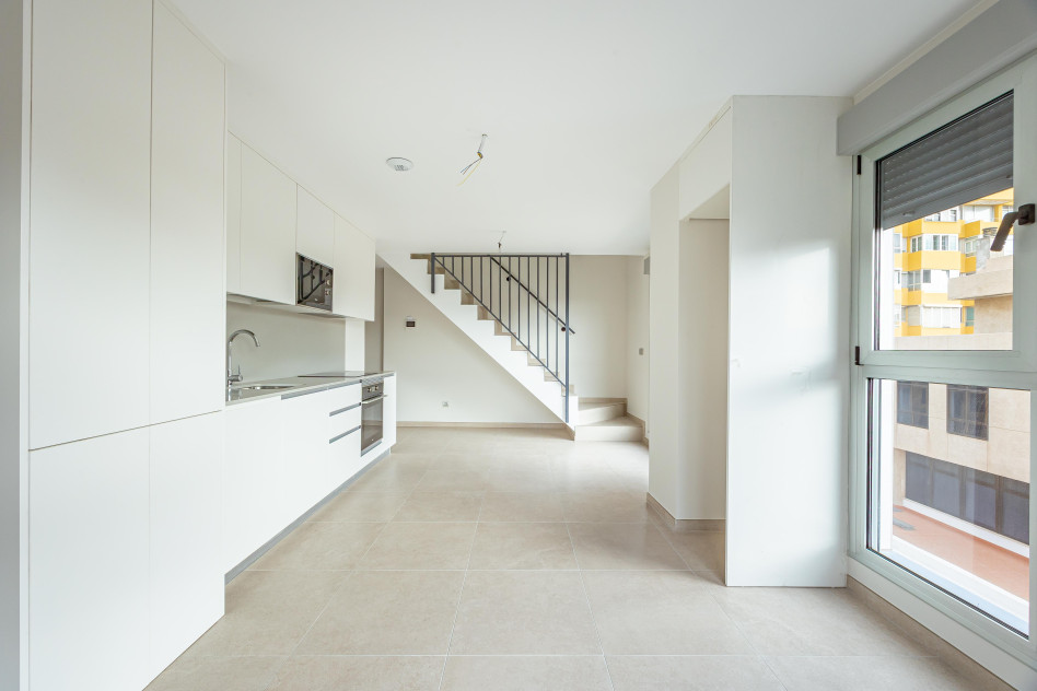 La vivienda, ubicada en la cuarta y última planta, dispone de 69m2 distribuidos en una primera planta con un aseo, un luminoso y espacioso espacio de salón/cocina con grandes ventales y las escaleras de acceso a la planta superior. En esta segunda planta, cuenta con un amplio espacio abierto ahuardillado de dormitorio, un vestidor y un baño completo.