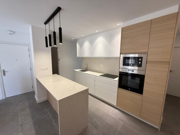 Cocina Americana Totalmente Equipada: Con electrodomésticos de última generación, encimeras de diseño y una práctica isla central para desayunar, nevera nueva, vitrocerámica nueva, microondas nuevo, todo a estrenar.