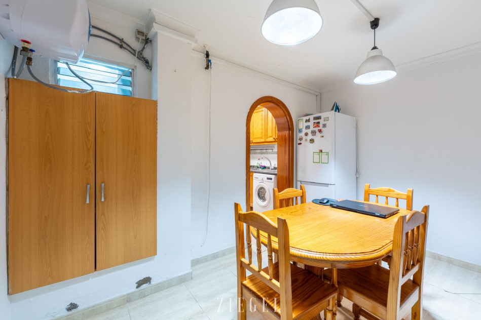 Para quienes valoran la funcionalidad, la cocina es independiente y conecta directamente con un comedor y un patio privado. Este espacio exterior es el verdadero "tesoro" de la propiedad: un desahogo esencial para disfrutar de luz extra, organizar la zona de colada o crear un pequeño jardín urbano que llene de vida tu hogar.
