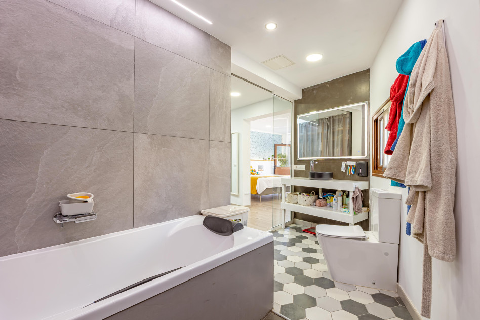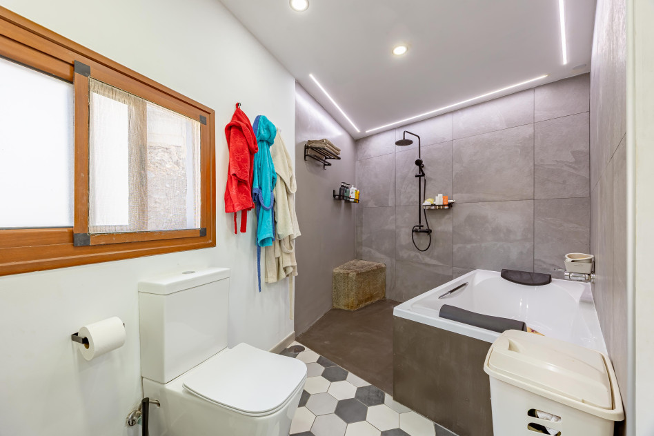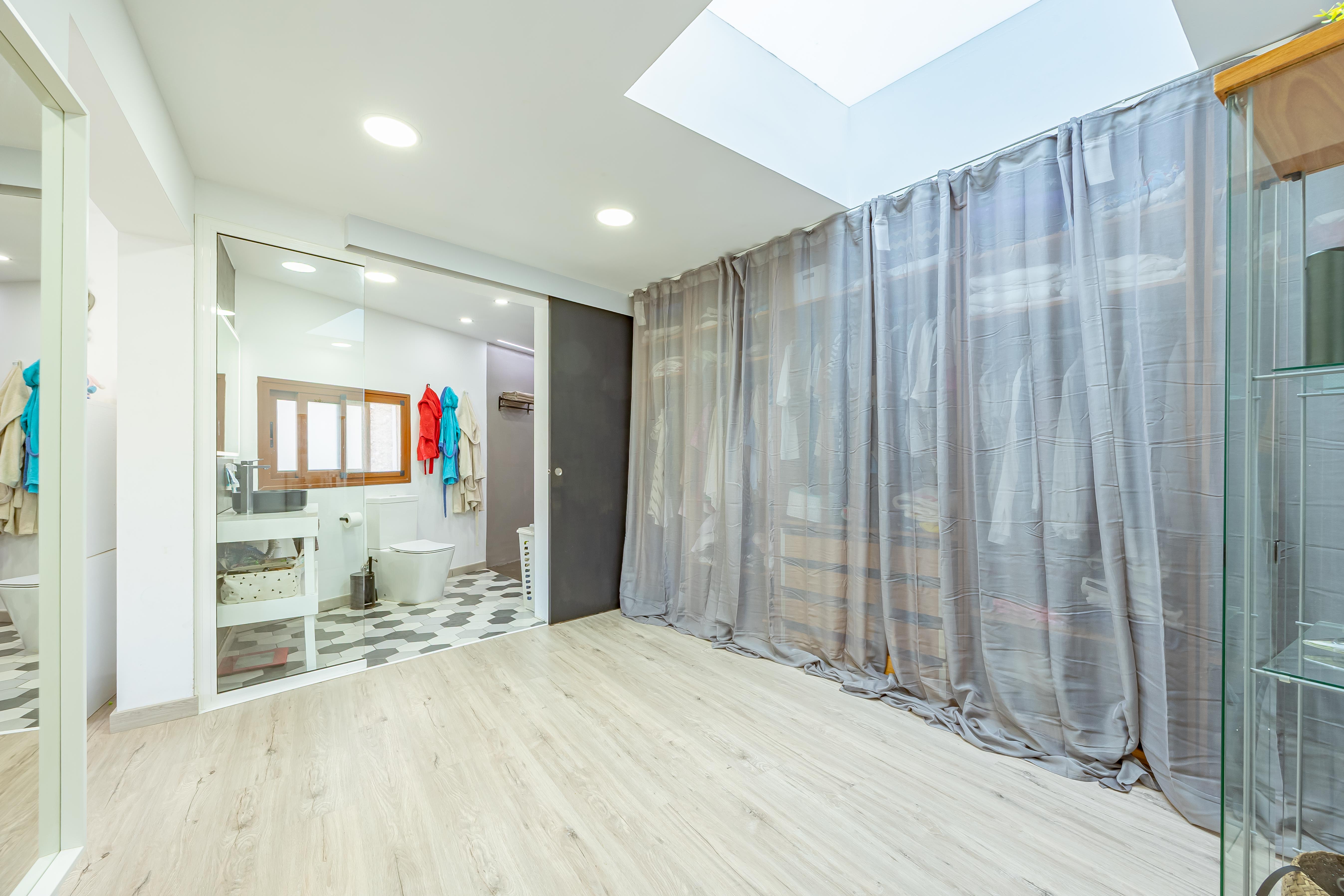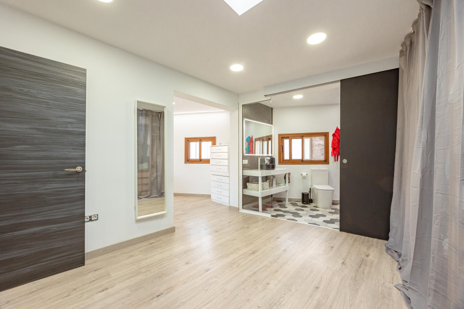 - Planta primera: amplio distribuidor que da paso a dos dormitorios dobles (uno de ellos con baño en suite y otro con salida a un balcon) y un dormitorio principal que te deja sin palabras por su increíble espacio de vestidor, baño completo integrado con ducha y bañera y una comoda zona de descanso con salida a un balcón.