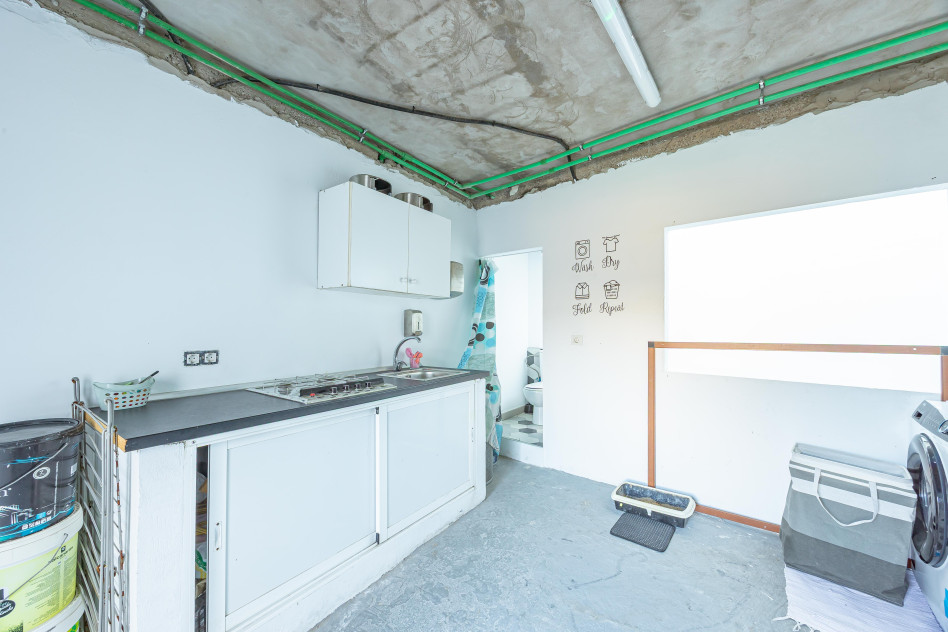 - Planta segunda: en la última planta de la casa, dispone de un espacio de distribuidor pendiente de terminar, un espacio cerrado de lavandería, con aseo y zona de cocina desde el que salimos a una pequeña terraza abierta y por el otro lado, un espacio totalmente abierto y diáfano para disfrutar al aire libre.