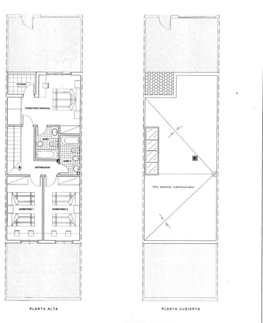 Planta alta: cuenta con tres dormitorios, baño completo y dormitorio principal en suite, con baño privado y vestidor, ofreciendo el máximo confort.