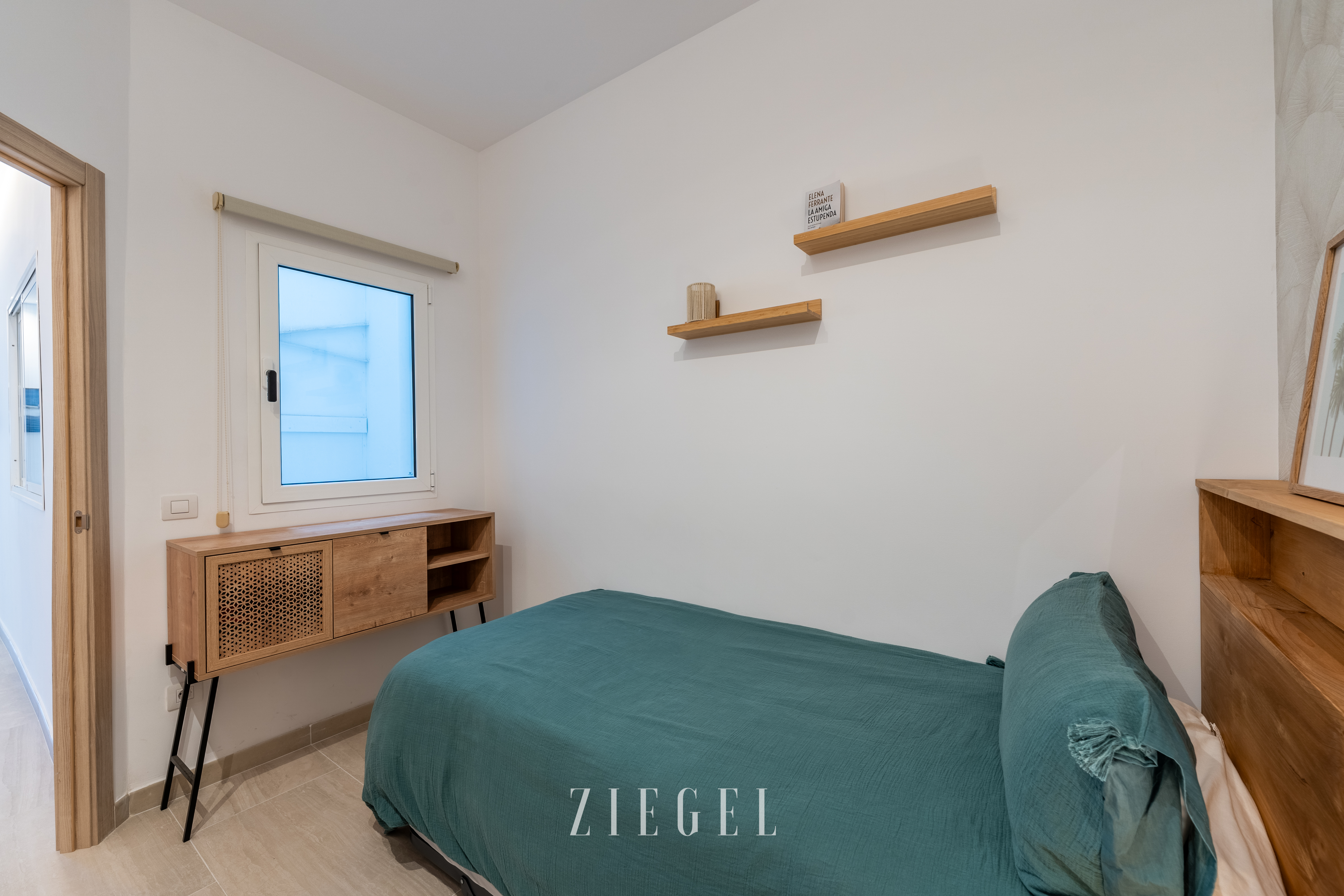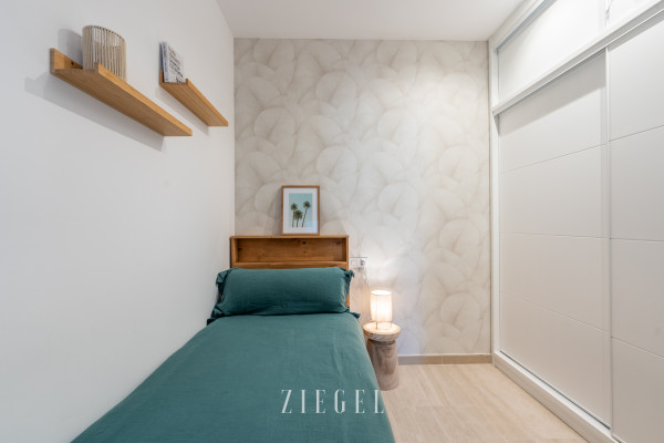 - Dormitorio secundario con cama individual y armarios empotrados.