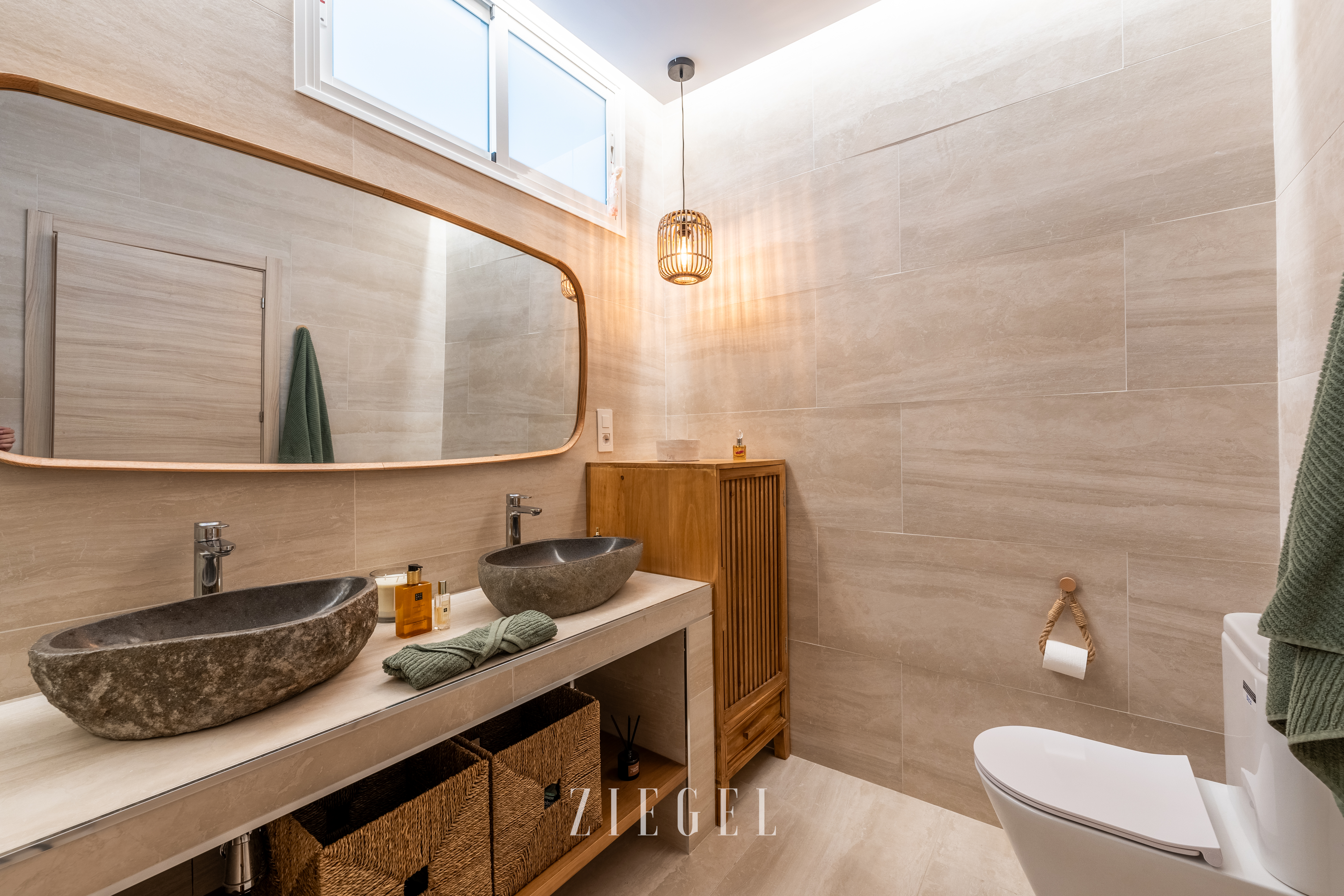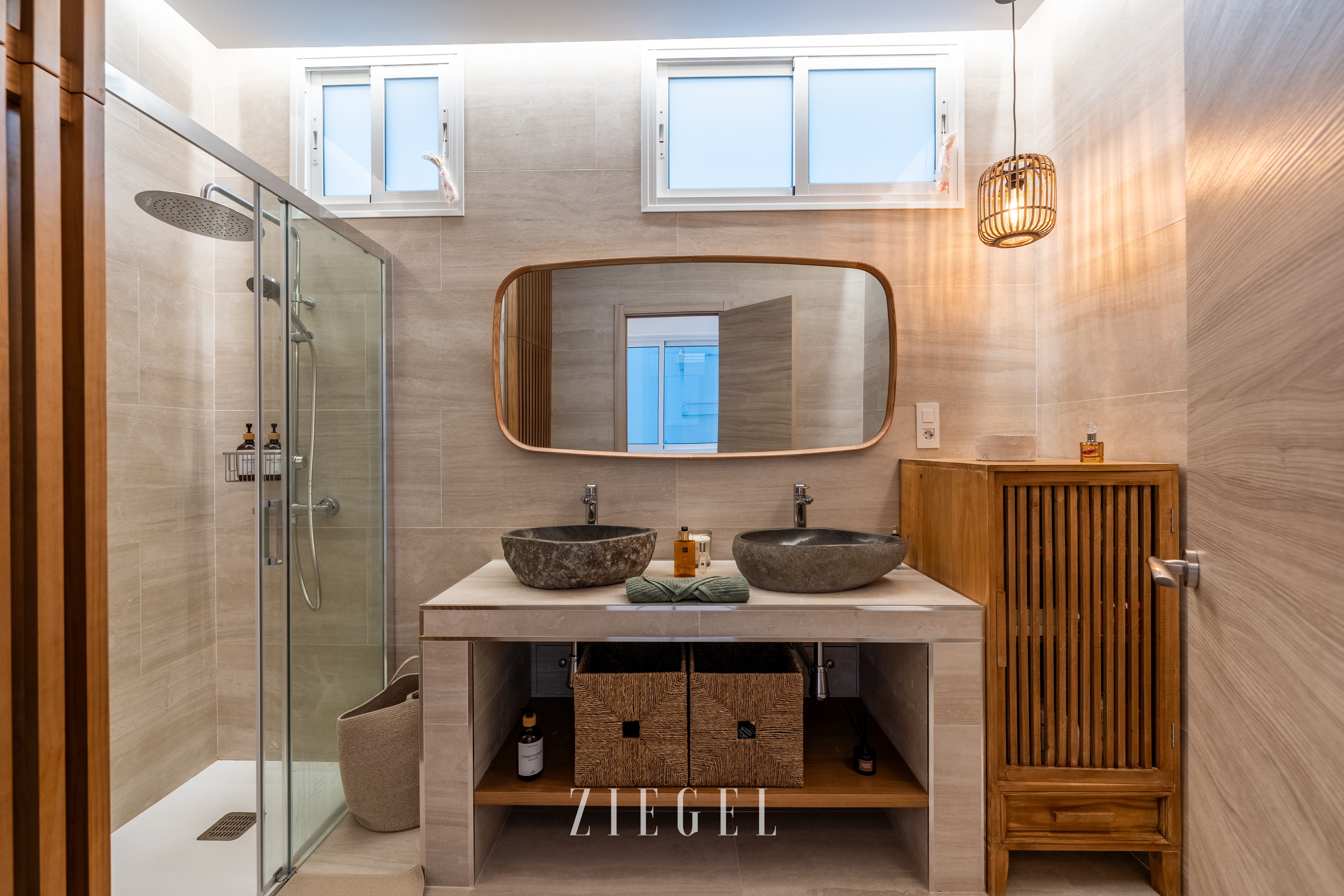 - Baño amplio con plato de ducha y zona de lavandería.