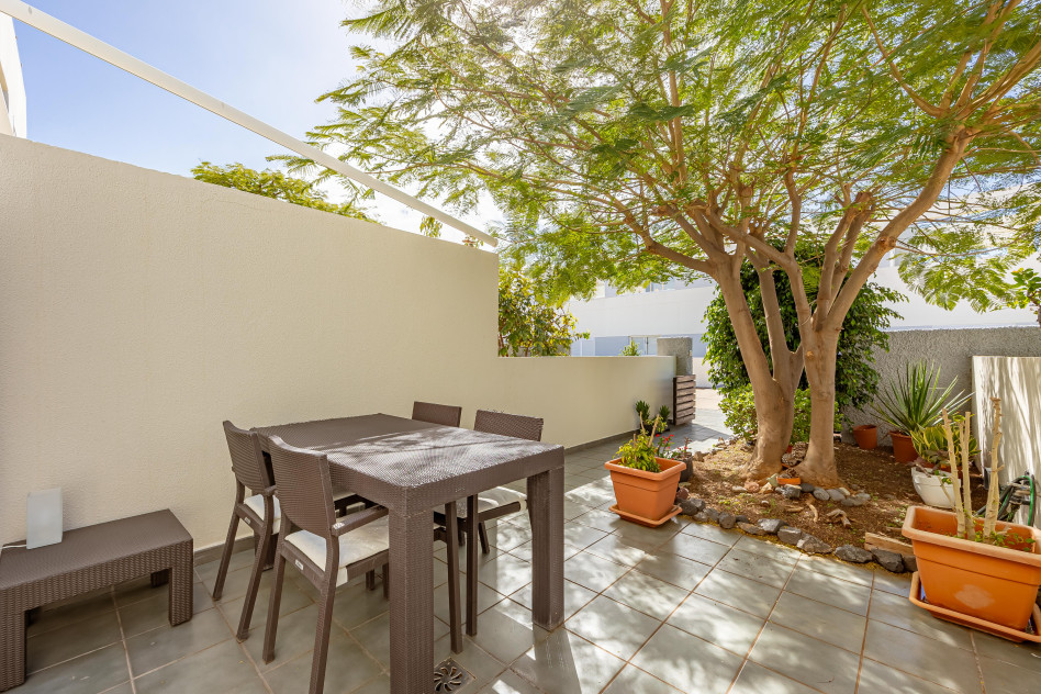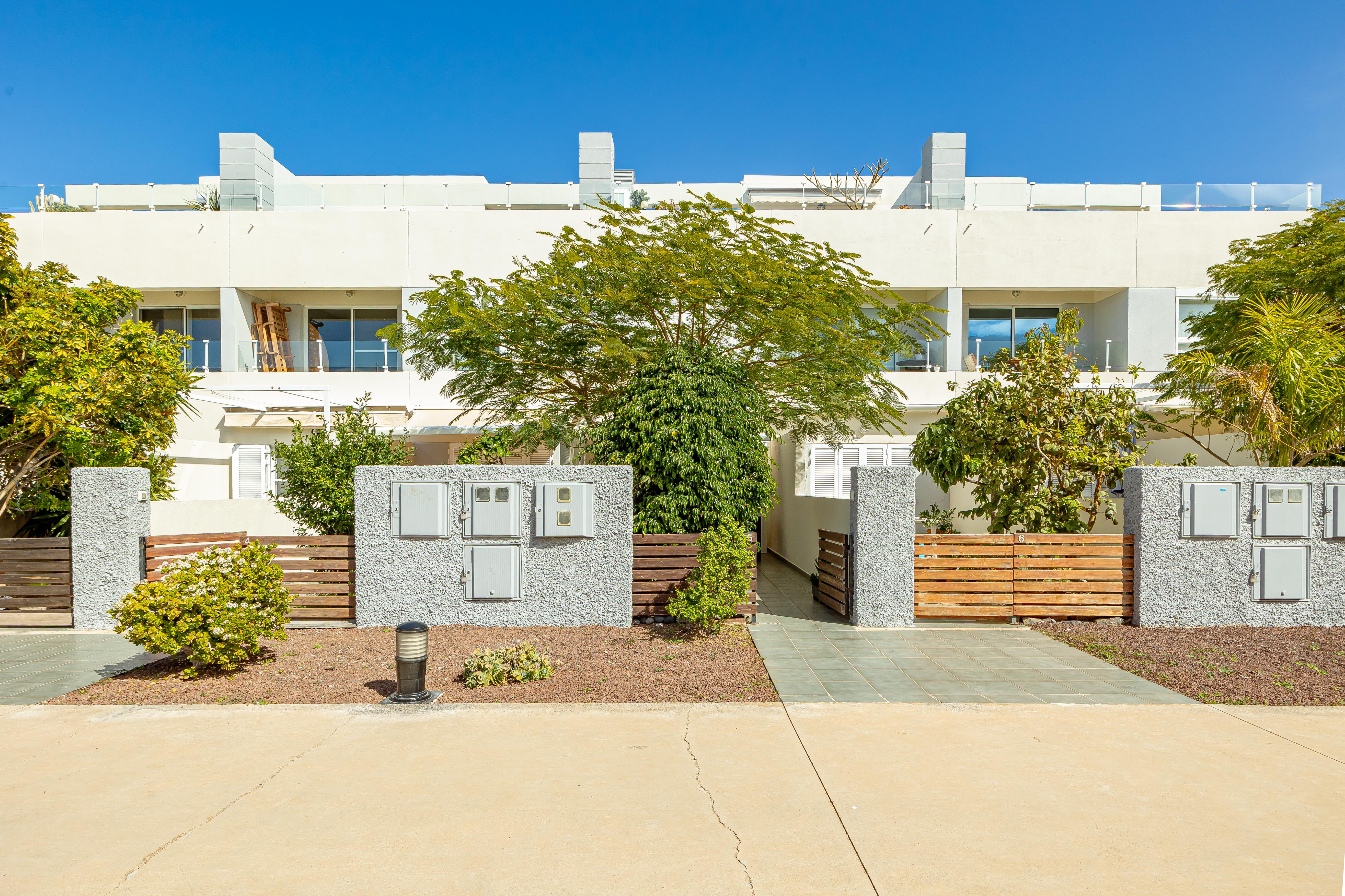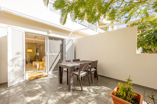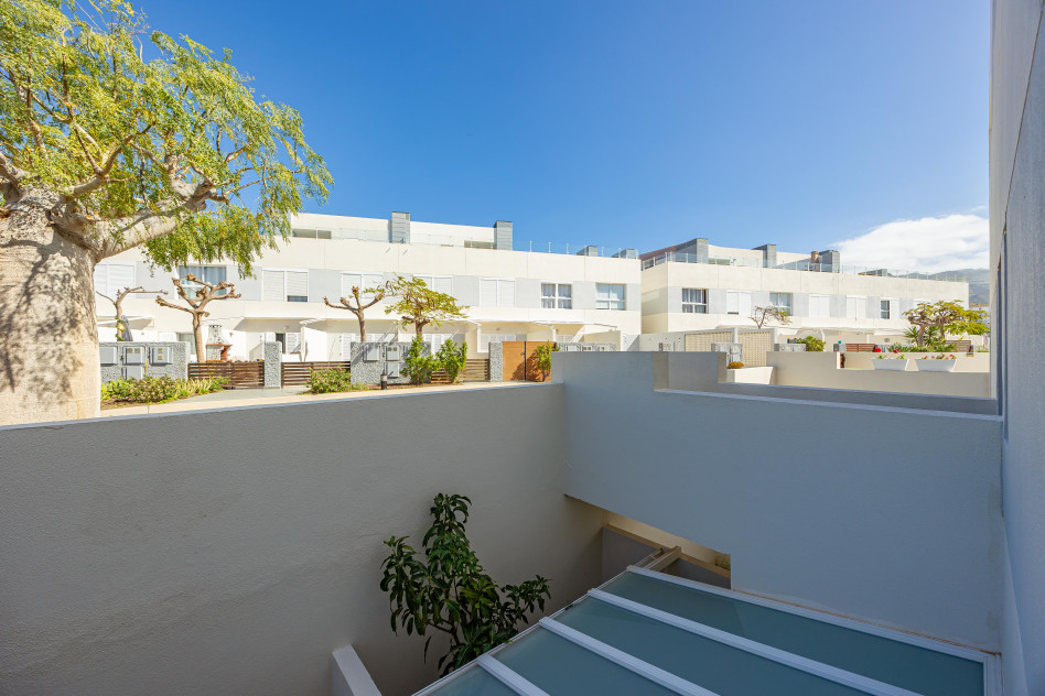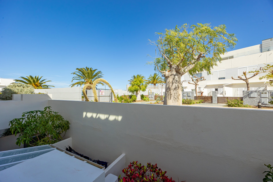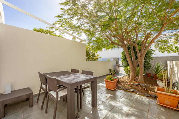 Accedemos a través de su terraza frontal, acogedora y perfecta para disfrutar del privilegiado clima canario durante todo el año. En la planta principal encontramos un salón independiente, cómodo y luminoso, un baño completo y una amplia cocina con salida directa a una segunda terraza trasera, ideal como zona de relax, comedor exterior o espacio funcional adicional.