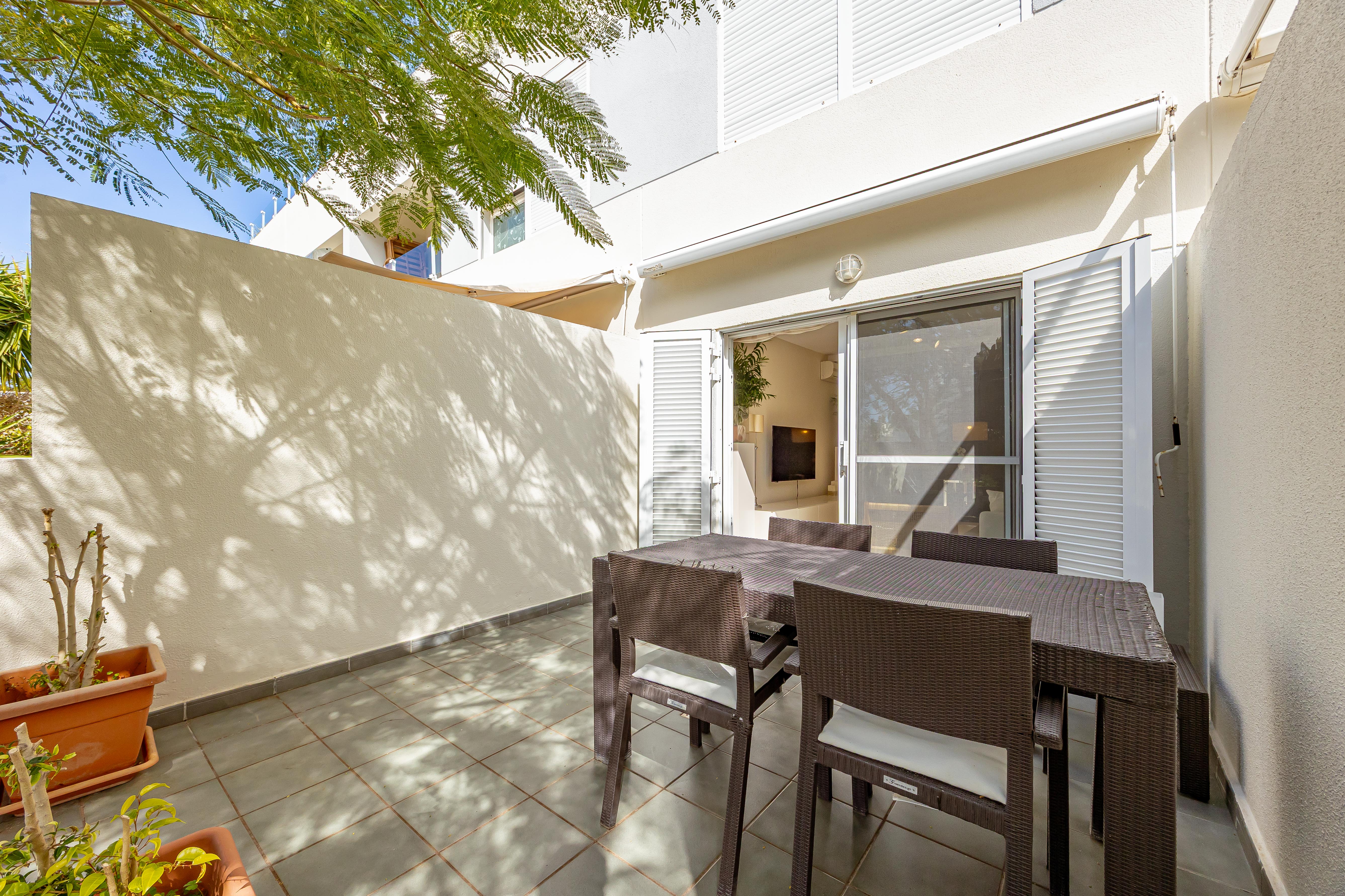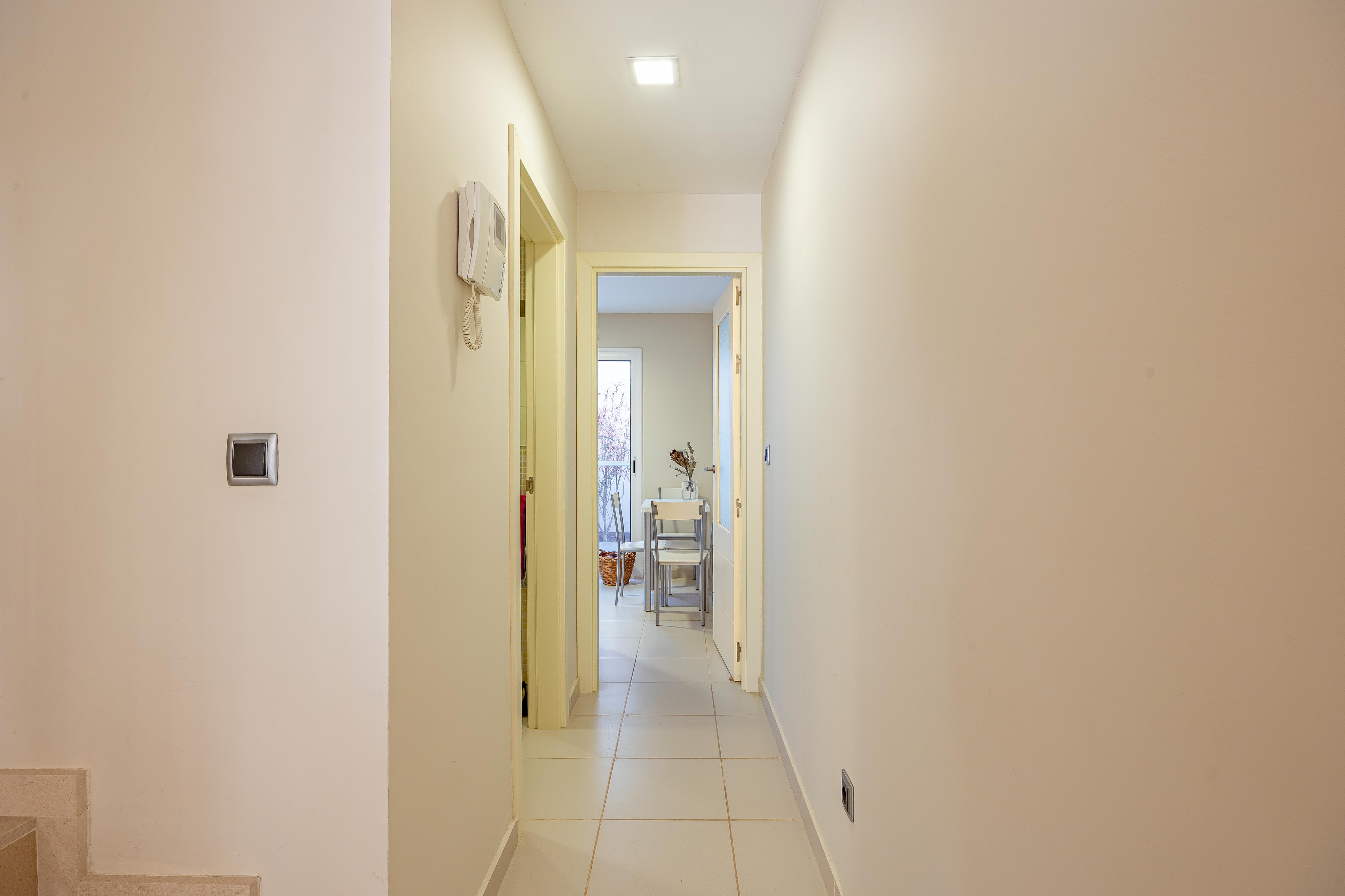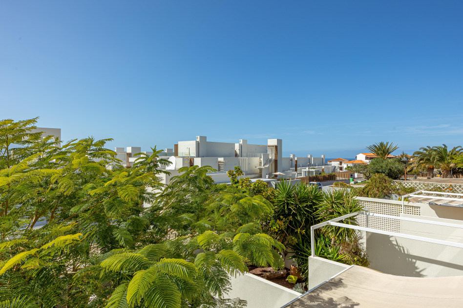 Accedemos a través de su terraza frontal, acogedora y perfecta para disfrutar del privilegiado clima canario durante todo el año. En la planta principal encontramos un salón independiente, cómodo y luminoso, un baño completo y una amplia cocina con salida directa a una segunda terraza trasera, ideal como zona de relax, comedor exterior o espacio funcional adicional.