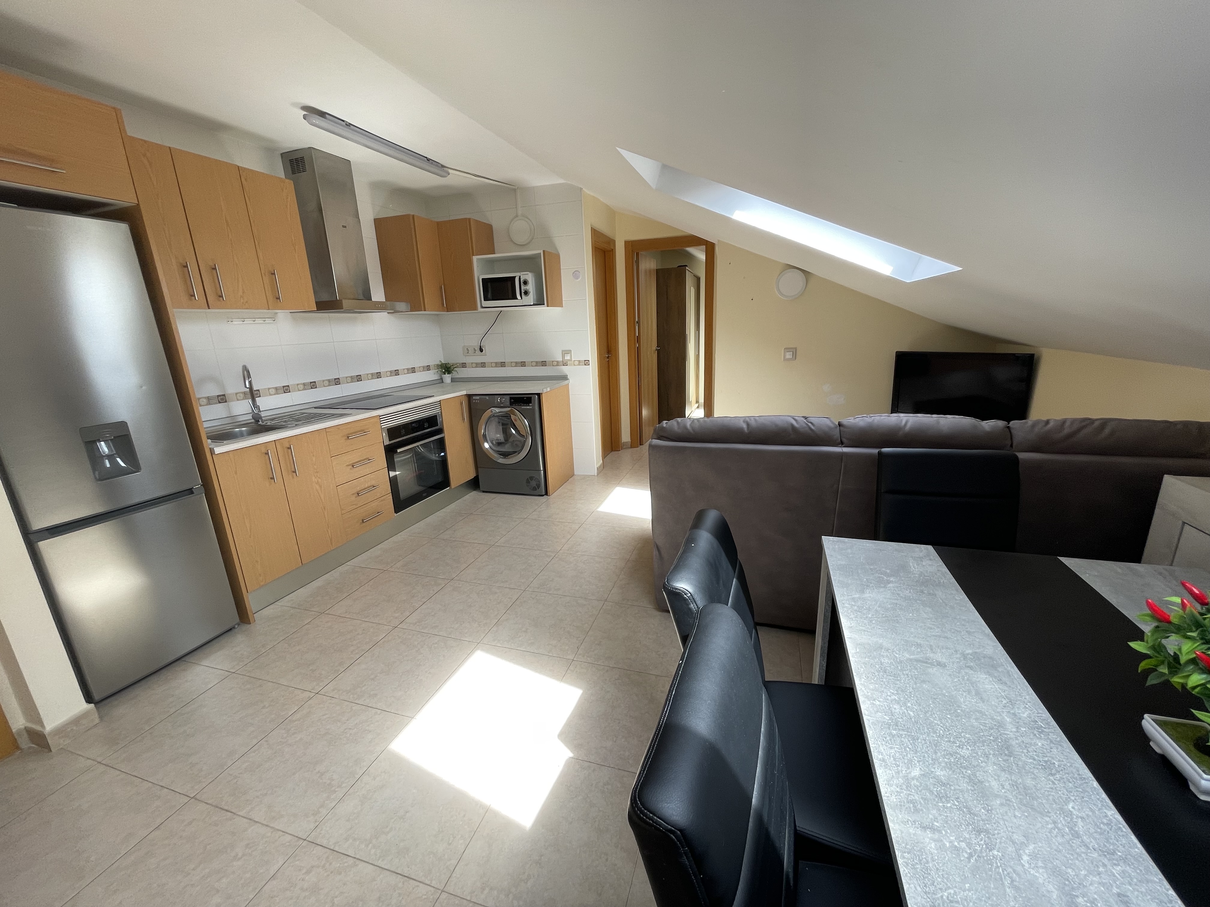 Se trata de un estupendo segundo piso abuhardillado de 76 m² construidos y 57 m² útiles, diseñado con un gusto exquisito para aprovechar cada rincón y que te sientas cómodo desde el primer segundo. Lo que más te va a enamorar es la luz natural que inunda toda la casa gracias a sus ventanas tipo Velux en todas las estancias; ¡es una auténtica alegría despertar aquí! El salón-comedor es amplio y se integra perfectamente con una cocina americana moderna, totalmente equipada con muebles de gran capacidad para que el orden sea siempre sencillo.