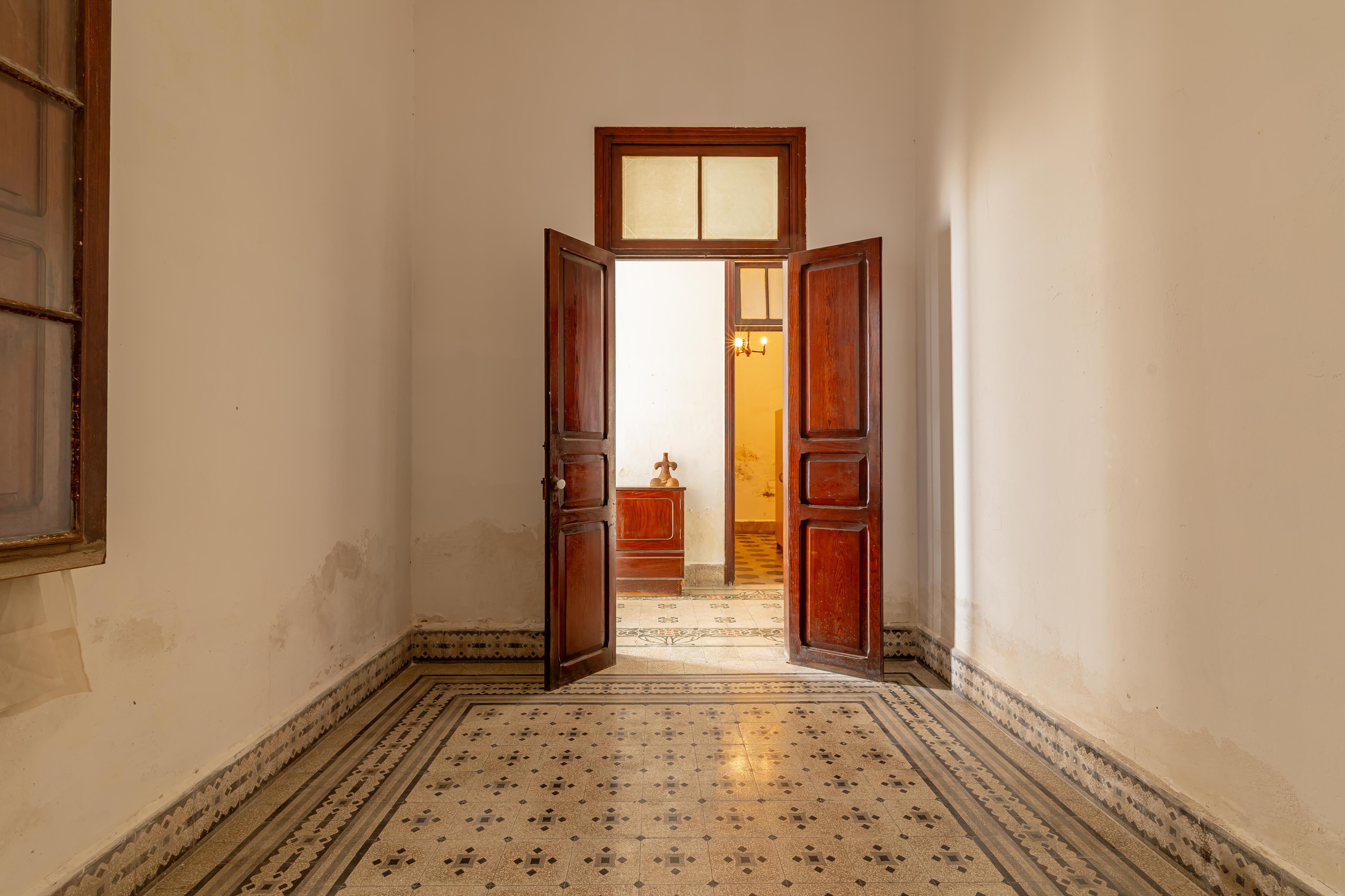 Desde su acceso principal, la vivienda cuenta con un amplio pasillo central que distribuye a todas las estancias. Cuenta con 7 habitaciones con posibilidad de dar multiples usos. Una de ellas, da directamente hacia la calle, la cual se conecta directamente con el local con acceso independiente de la vivienda. El resto de estancias, ventilan a varios patios de luces además de un gran patio central que es la joya de la casa que proporciona mucha luminosidad y ventilacion al inmueble.