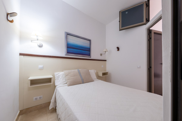 Cuenta con una zona de dormitorio separada, una pequeña cocina totalmente equipada, un baño completo y un balcón con vistas espectaculares al mar, perfecto para disfrutar del desayuno o una copa al atardecer.