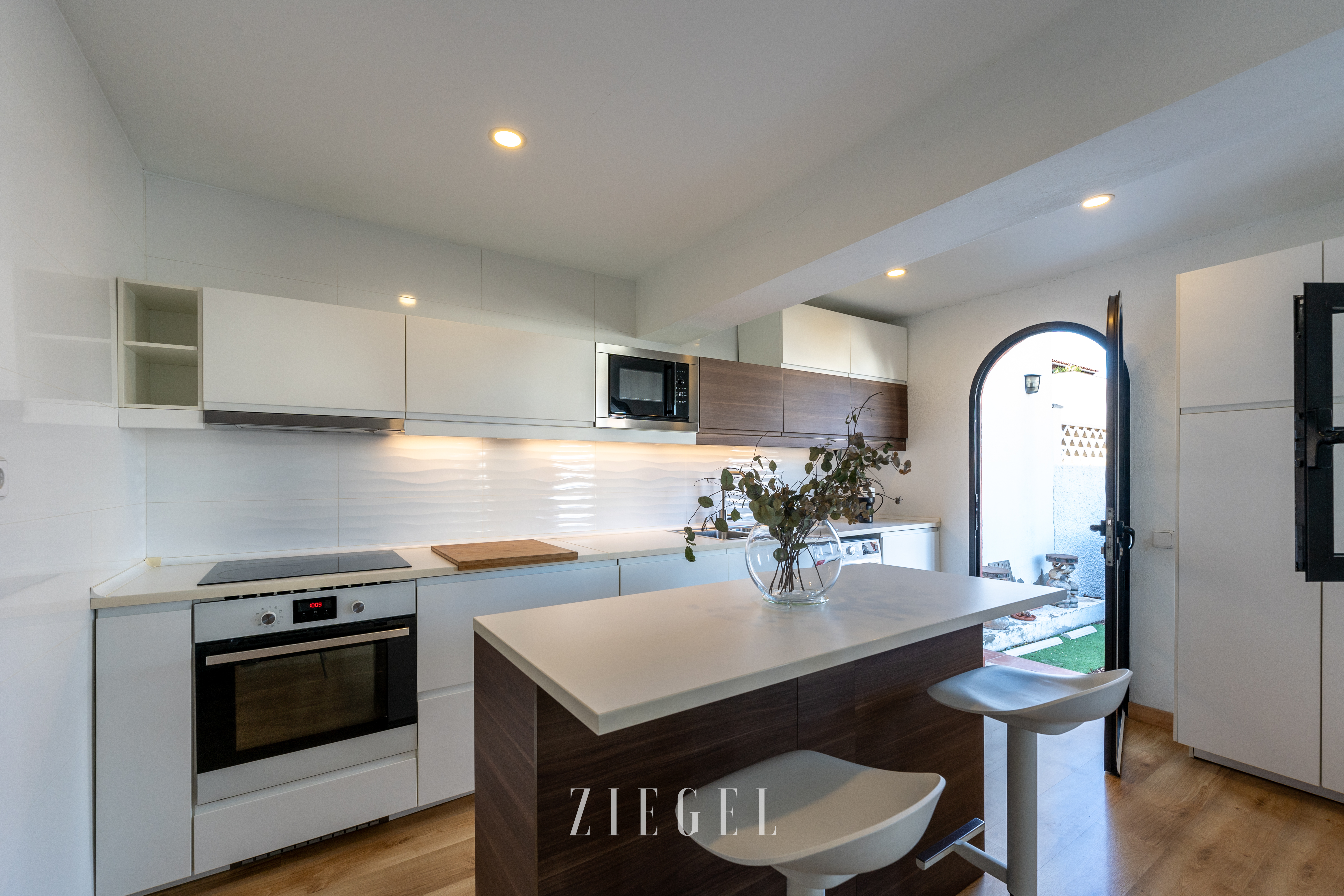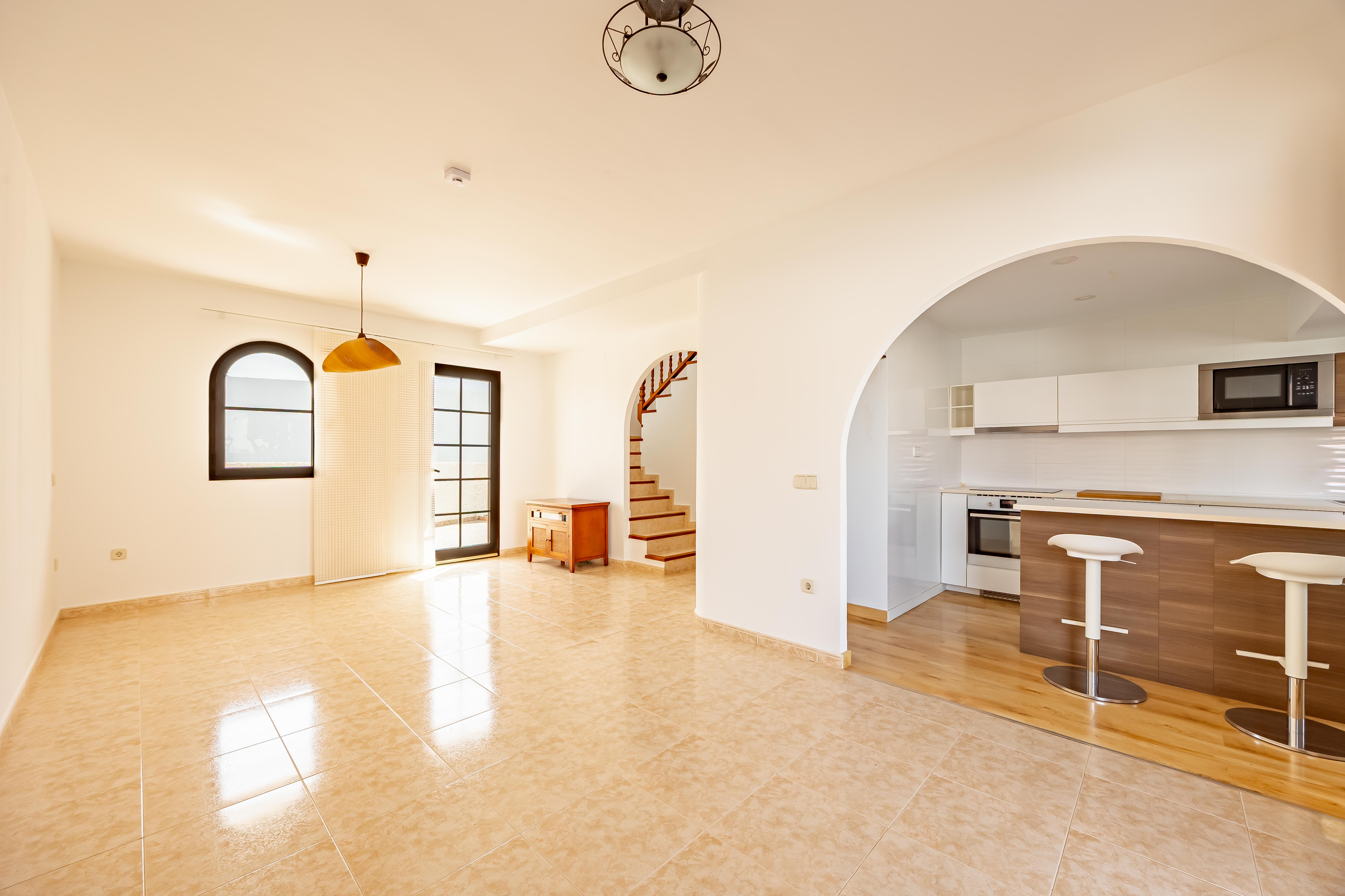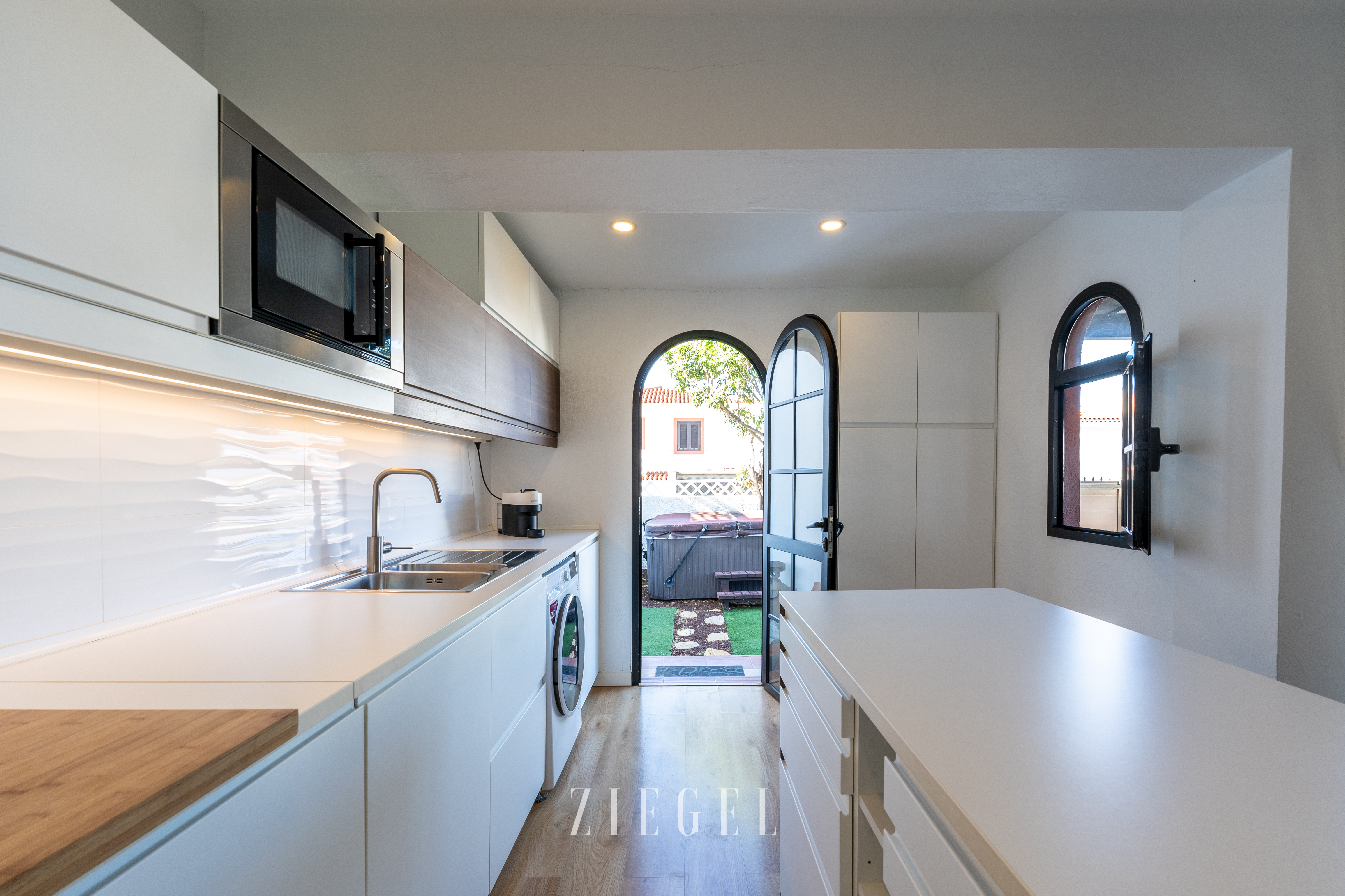 La cocina, funcional y bien distribuida, está lista para inspirar sus habilidades culinarias. Desde aquí, la vida se extiende al exterior con un jardín y una terraza donde podrá disfrutar del delicioso clima de Agaete mientras se deleita con las cautivadoras vistas al mar.