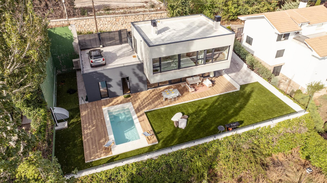 CARACTERISITICAS PRINCIPALES: Parcela: 493 m² Solar Urbano; Superficie Construida: 173 m²; Climatización con Aerotermia con suelo radiante refrescante, confort en invierno y verano; Energía renovable: Preparada para paneles solares fotovoltaicos; Carpintería exterior: PVC con doble y triple acristalamiento, excelente aislamiento térmico y acústico; Acabados premium: Solados y alicatados en porcelánico, máxima durabilidad y diseño.