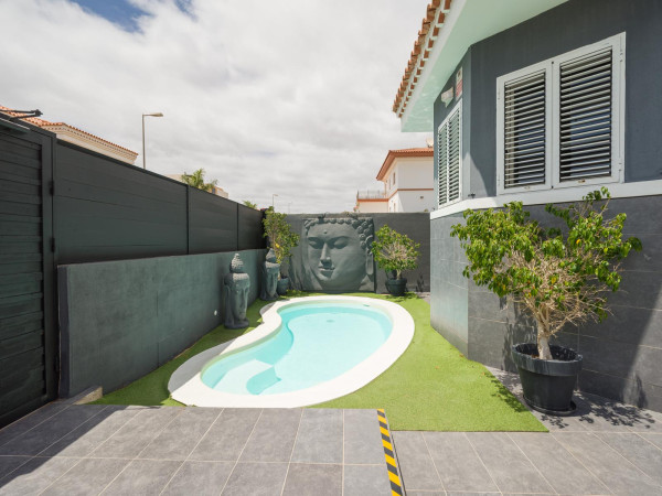 Meloneras es una de las zonas más cotizadas de Canarias y en la tranquila calle Océano Pacífico encontramos esta exclusiva villa a la venta.