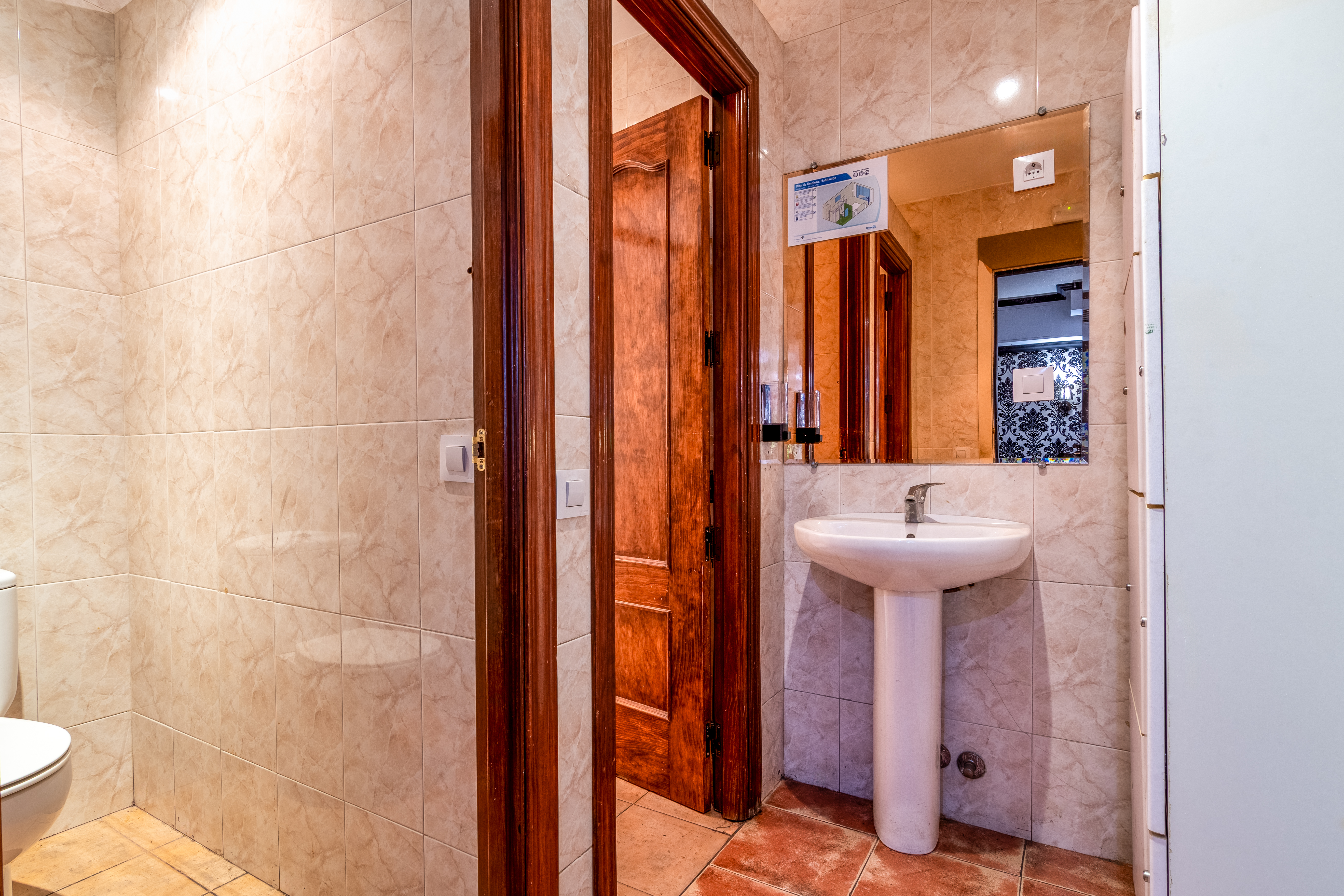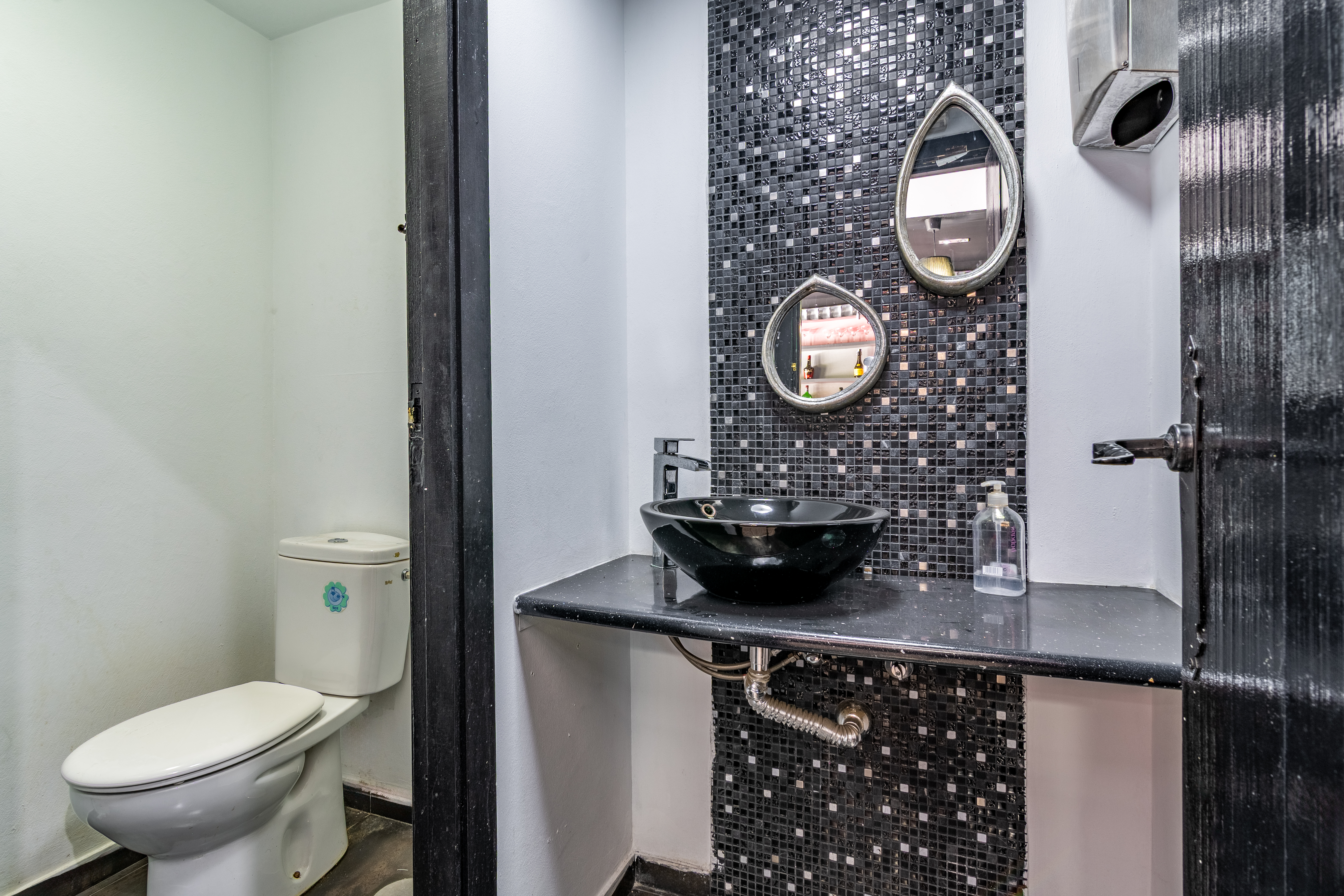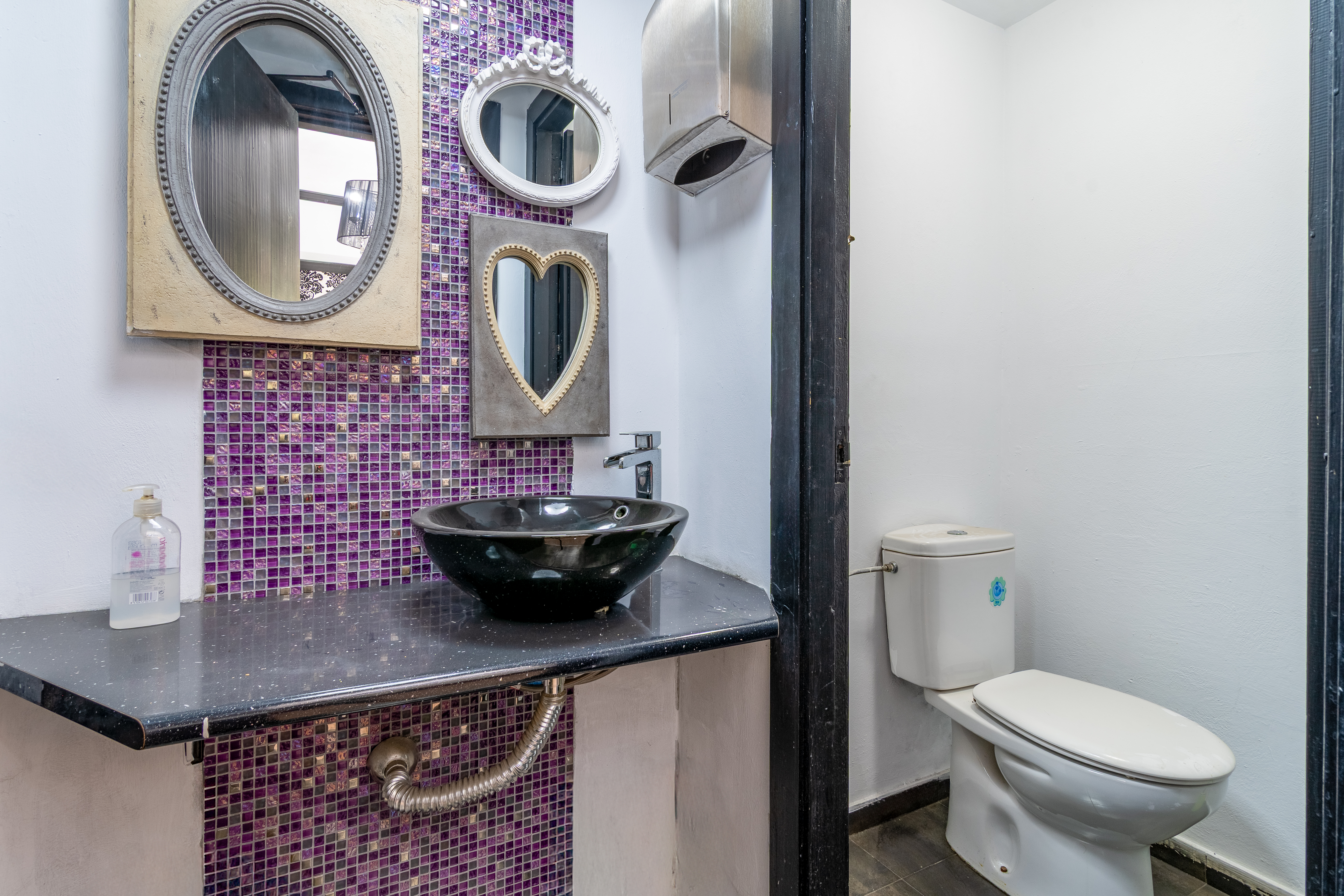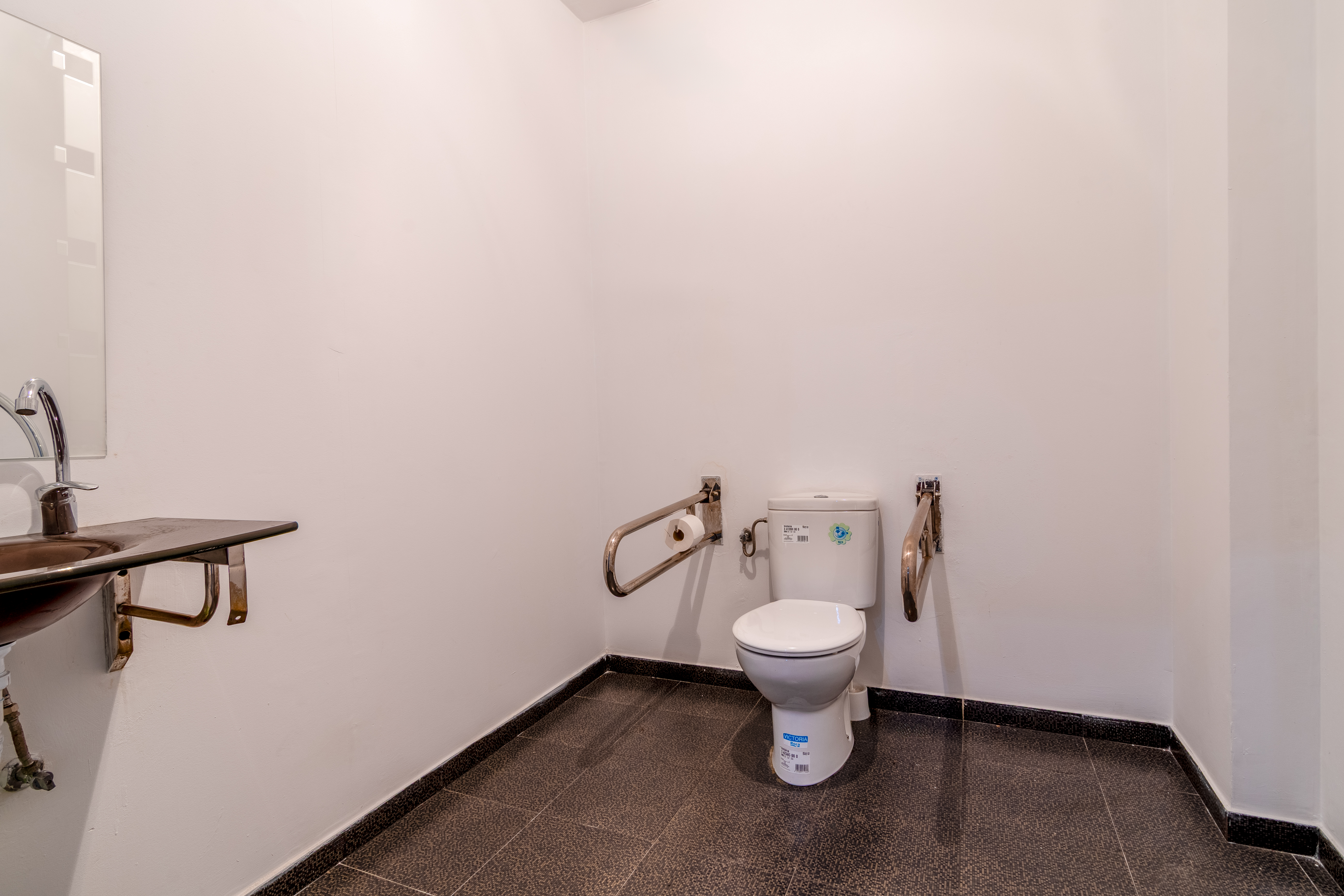 El local está equipado con dos elegantes aseos, diseñados para damas y caballeros, además de contar con un baño adaptado para personas con movilidad reducida, demostrando un compromiso con la accesibilidad e inclusión. Un baño adicional para el personal asegura un ambiente de trabajo cómodo y profesional.