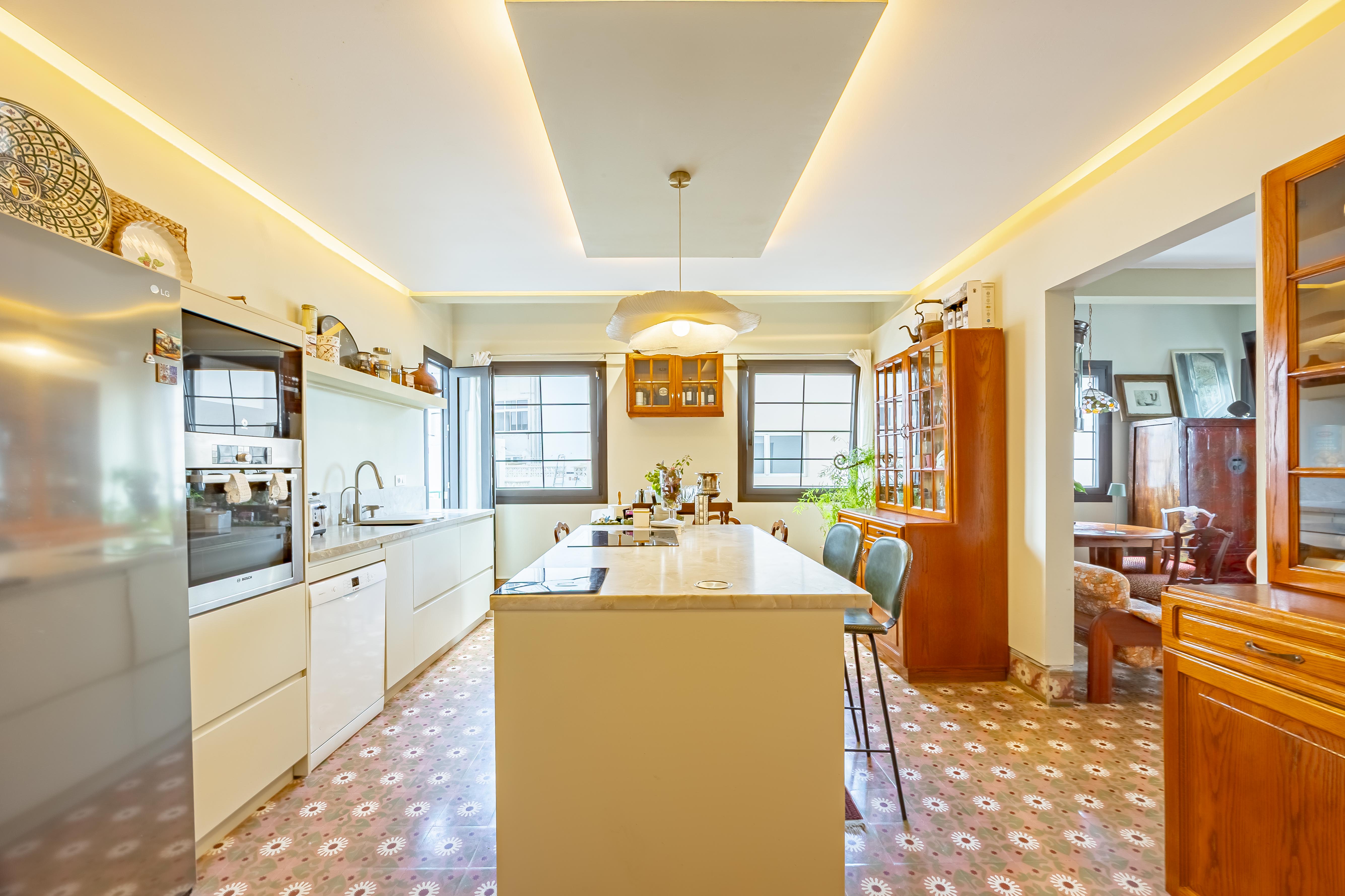 Su cocina moderna con isla es el corazón de la vivienda, un espacio donde compartir y disfrutar, también con salida a balcón que garantiza luminosidad en todo momento.