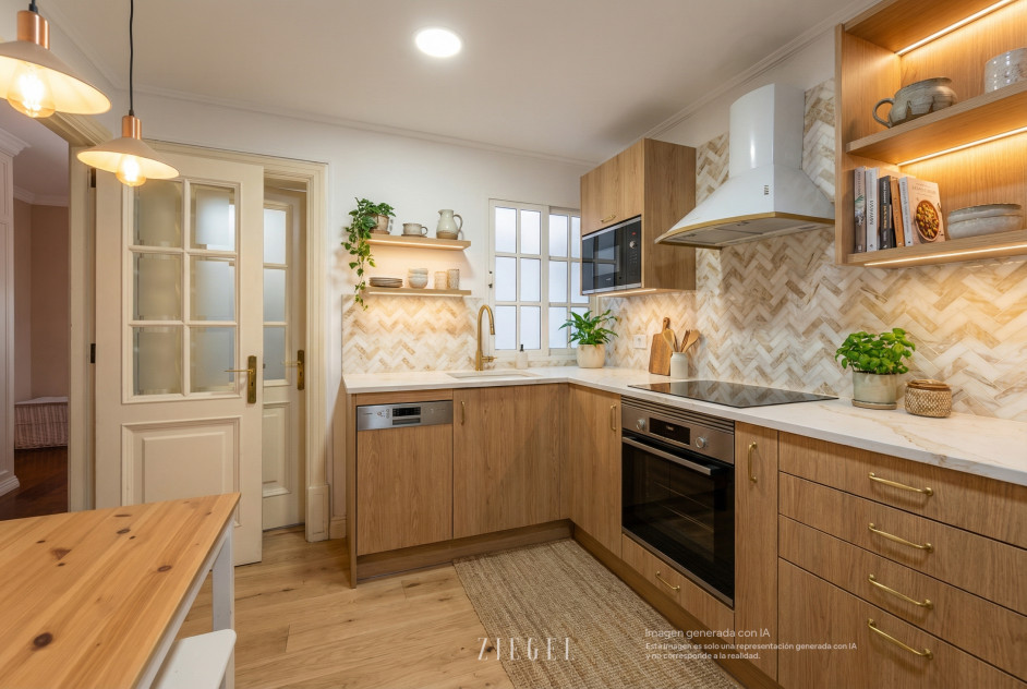 Algunas de las imágenes mostradas corresponden a renders orientativos, diseñados para visualizar posibles reformas y distribución del espacio, manteniendo proporciones similares a la vivienda real