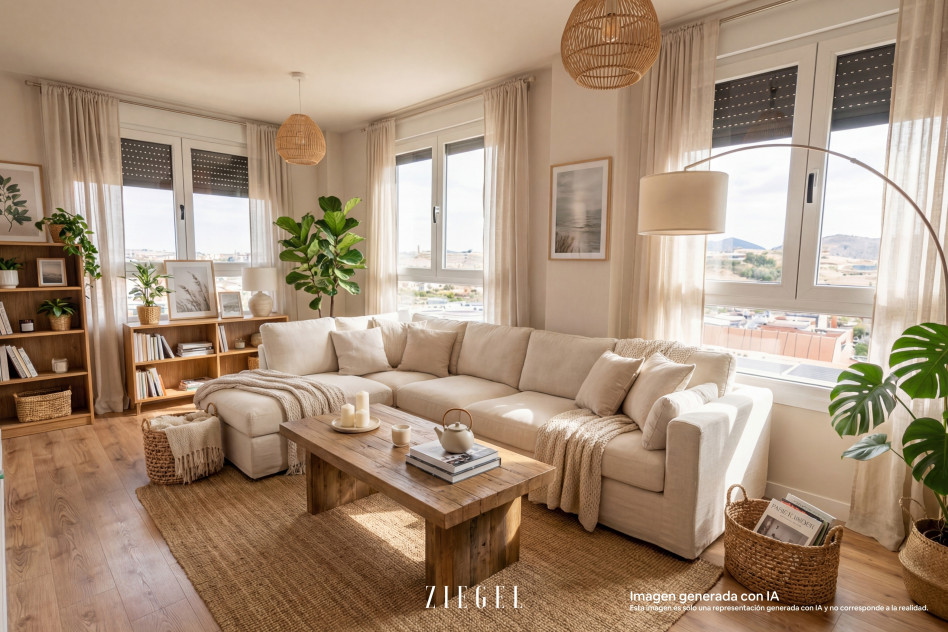 El inmueble cuenta con 80m2 distribuidos en recibidor, cocina, espacio de solana, amplio salón/comedor con grandes ventanales, dos dormitorios dobles y uno principal con baño en suite además de un segundo baño completo. Además, dispone de plaza de garaje y trastero.