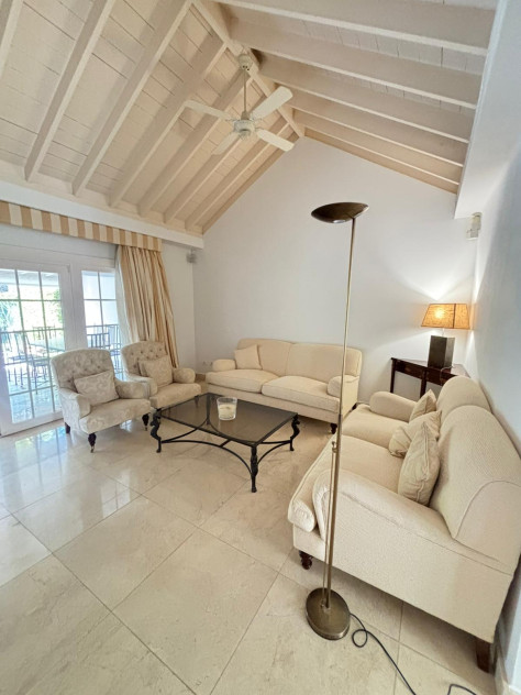 En el exterior, cuenta con jardín privado, con un agradable porche equipado con sillones y mesa, ideal para disfrutar del buen clima durante todo el año. Además, la vivienda cuenta con terraza, aire acondicionado y acceso a piscina comunitaria.