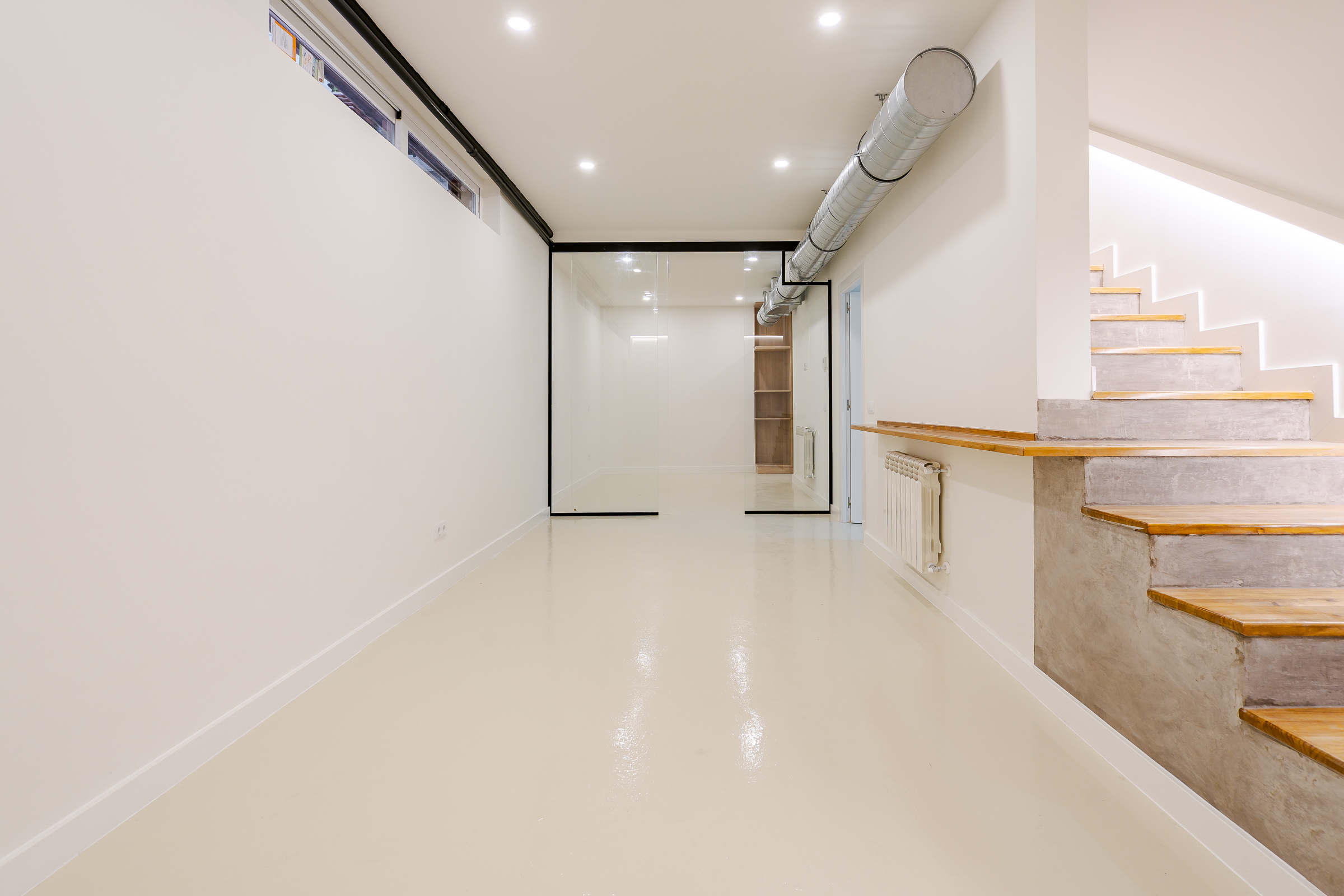 Descendiendo las escaleras, encontrarás 89 m2 adicionales que te invitan a explorar nuevas posibilidades. Este nivel cuenta con un amplio salón diáfano, ideal para el entretenimiento, además de una sala adaptable como cine, bodega o zona recreativa. Con baño completo y despensa, todo el nivel está armoniosamente iluminado por un gran ventanal con puerta corredera.