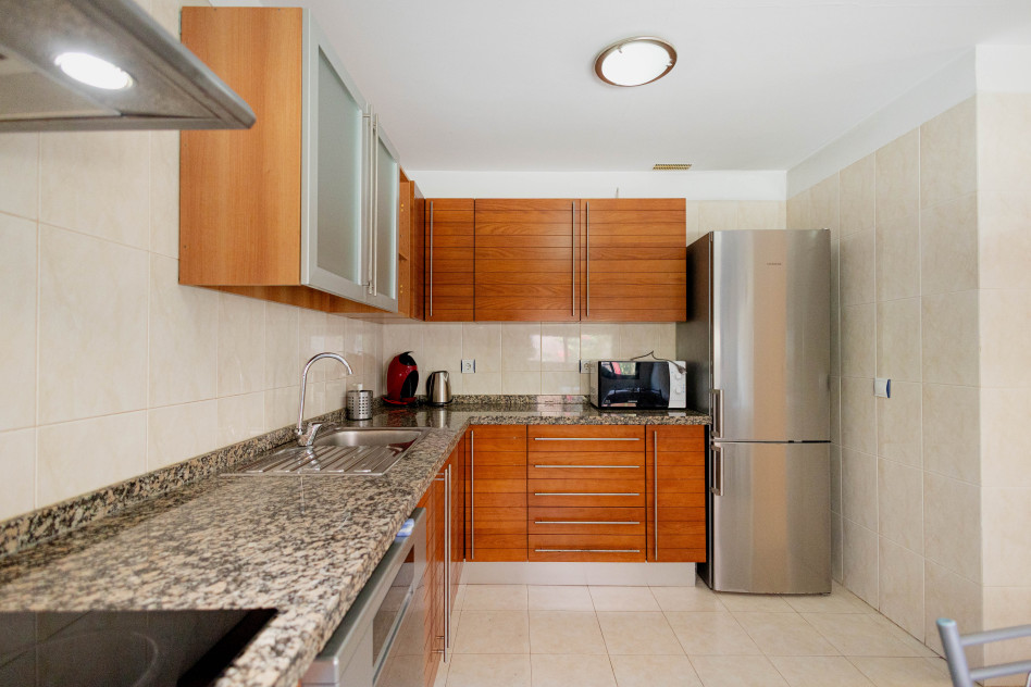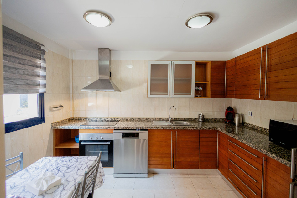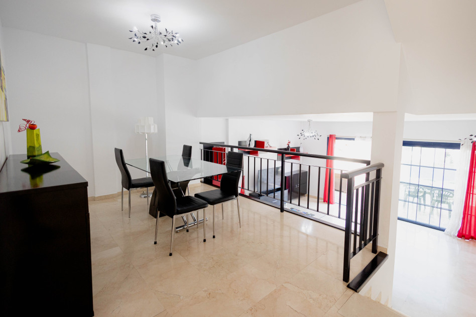 La vida social se desarrolla en un luminoso salón-comedor, diseñado en dos alturas, que crea un ambiente de amplitud y sofisticación. A pocos pasos, se encuentra una cocina independiente, totalmente equipada, lista para desplegar tus habilidades culinarias.