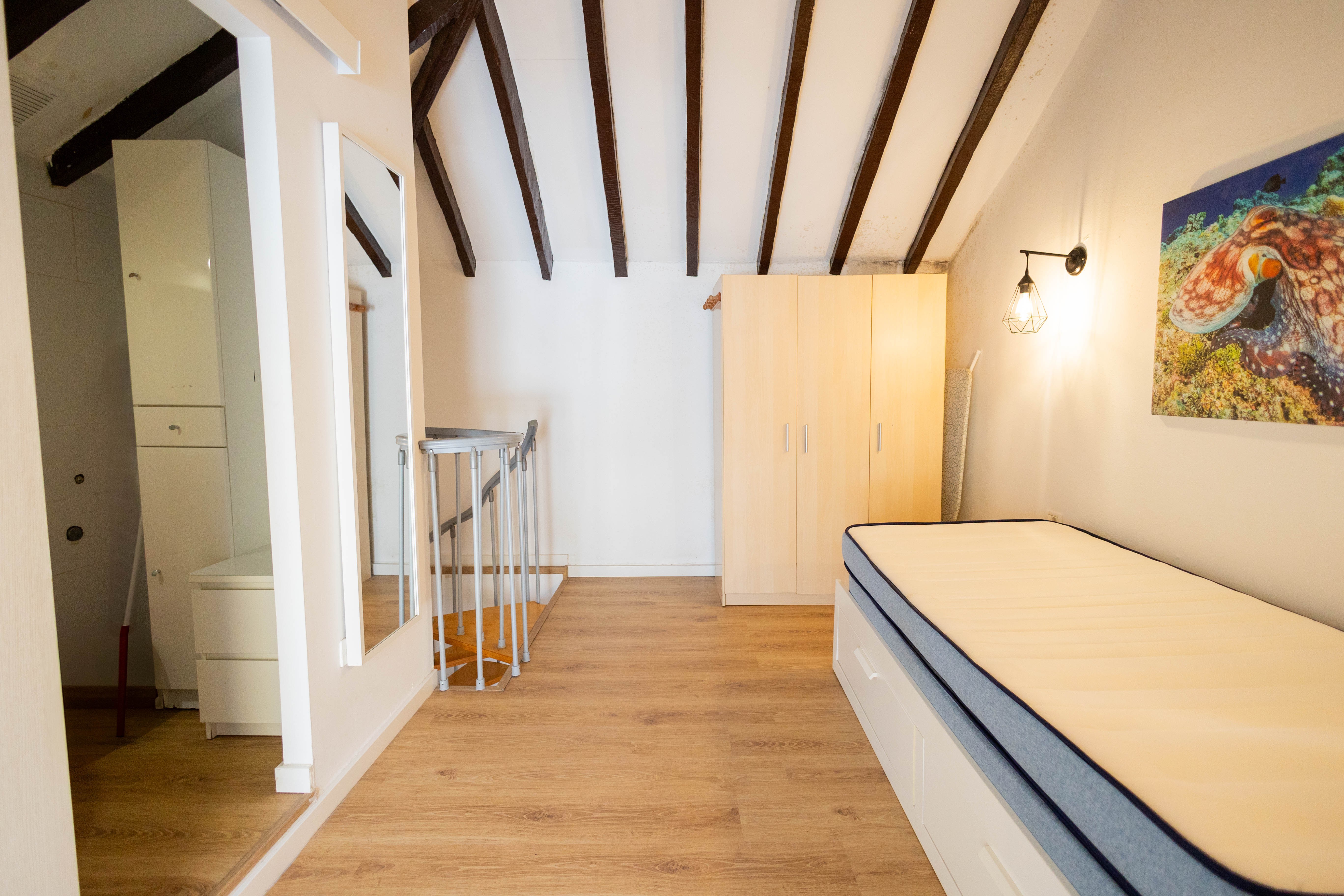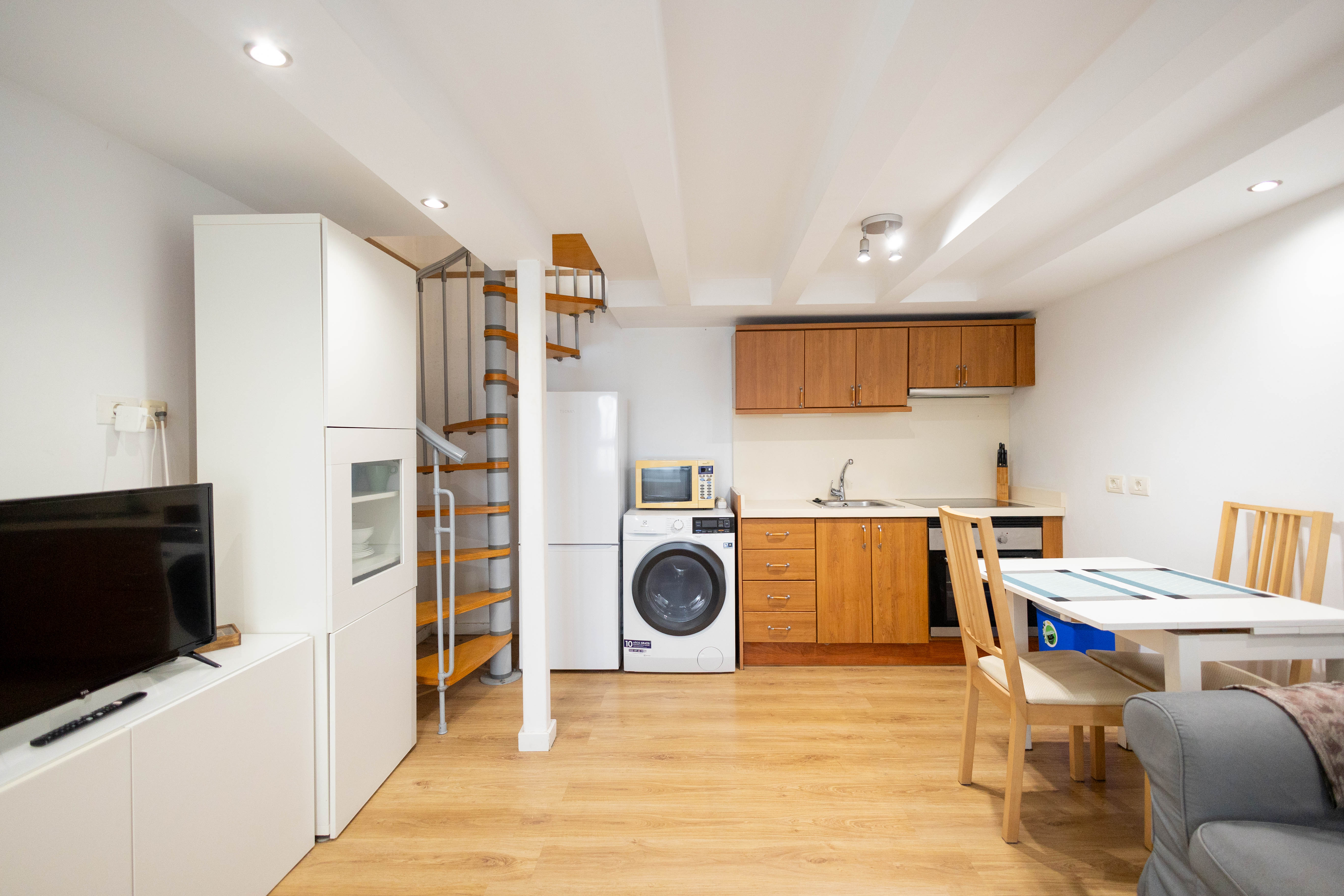 En la planta baja se encuentra la cocina equipada, de diseño moderno, junto con la zona de estar. En la planta superior, un dormitorio amplio y un baño completo.