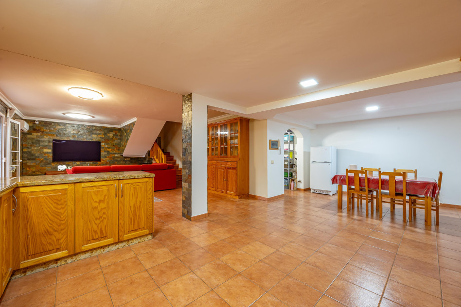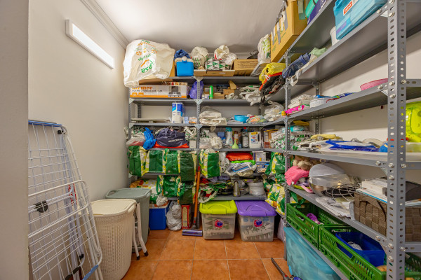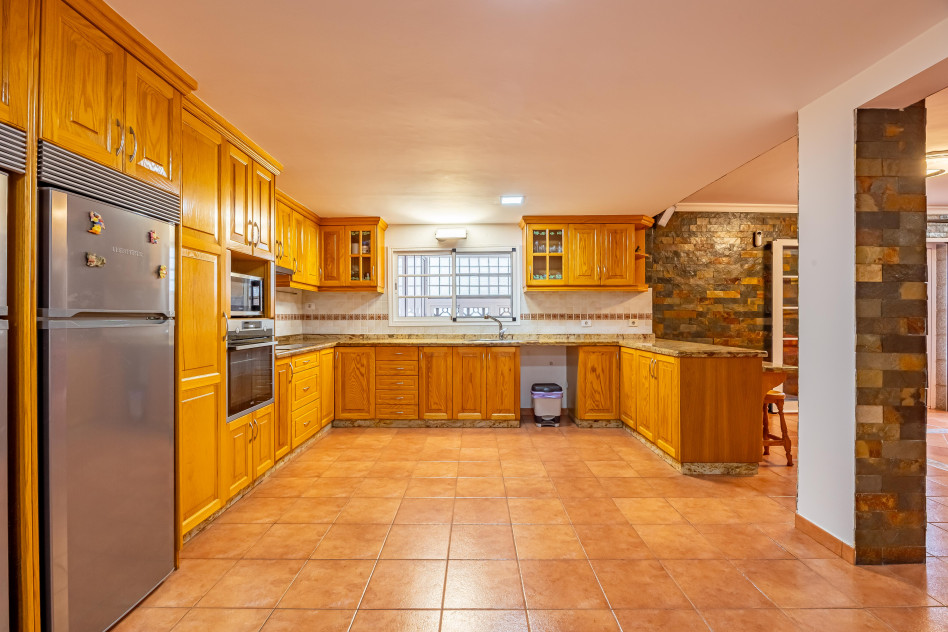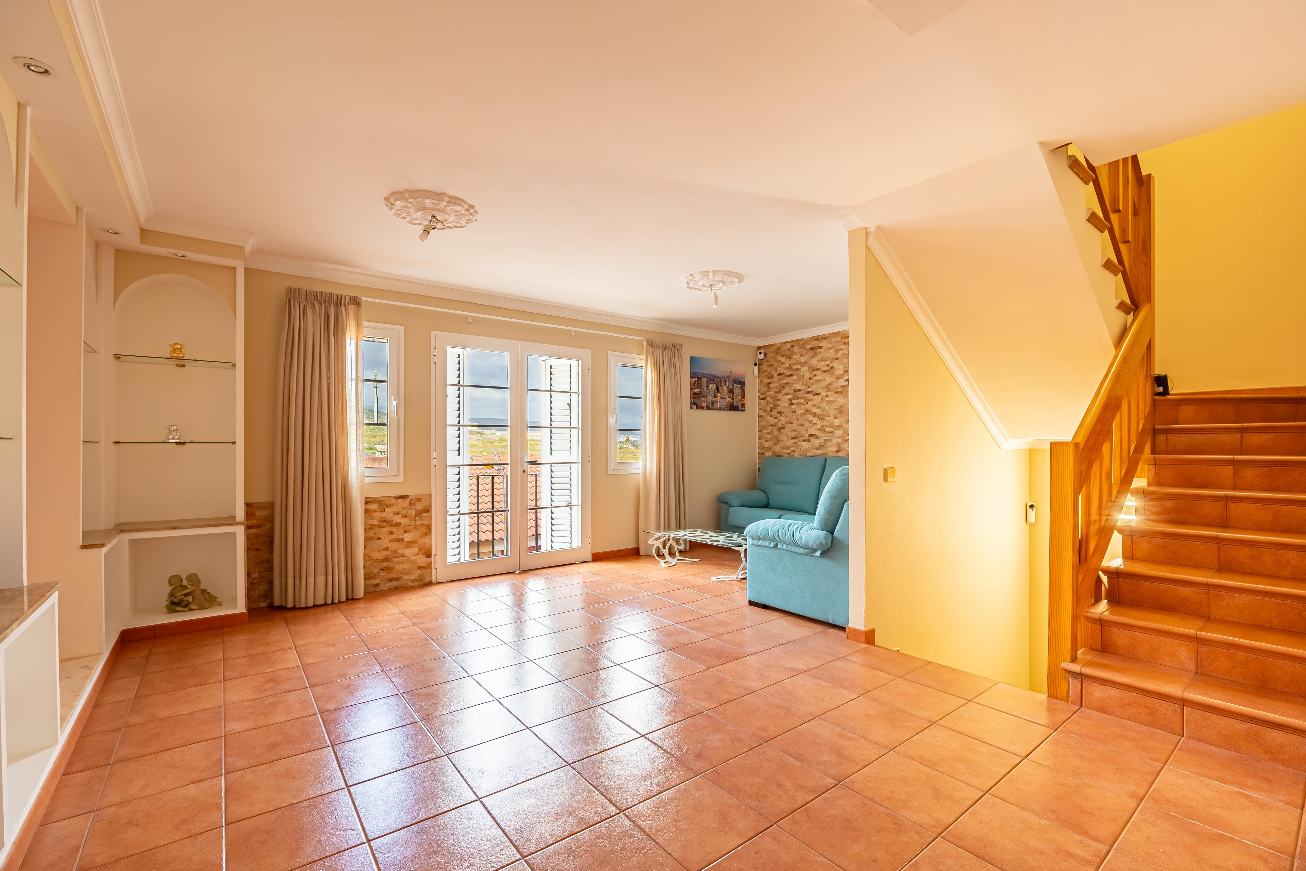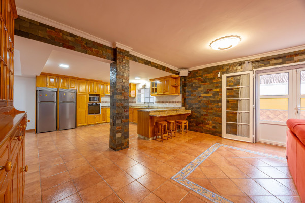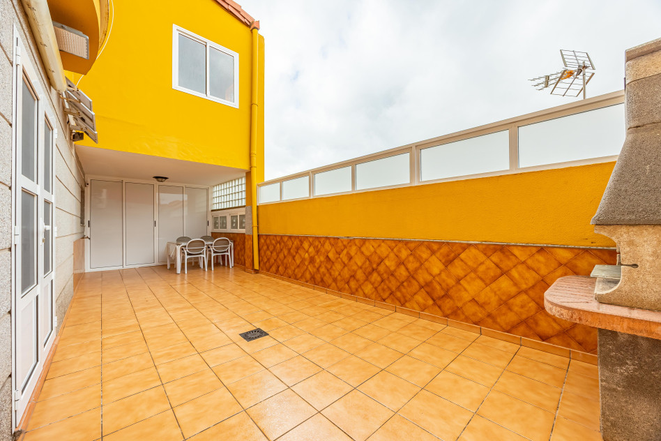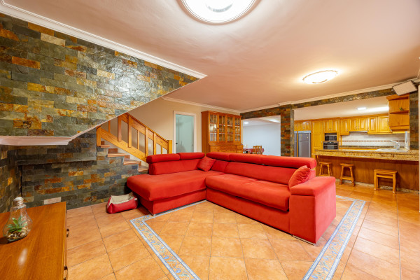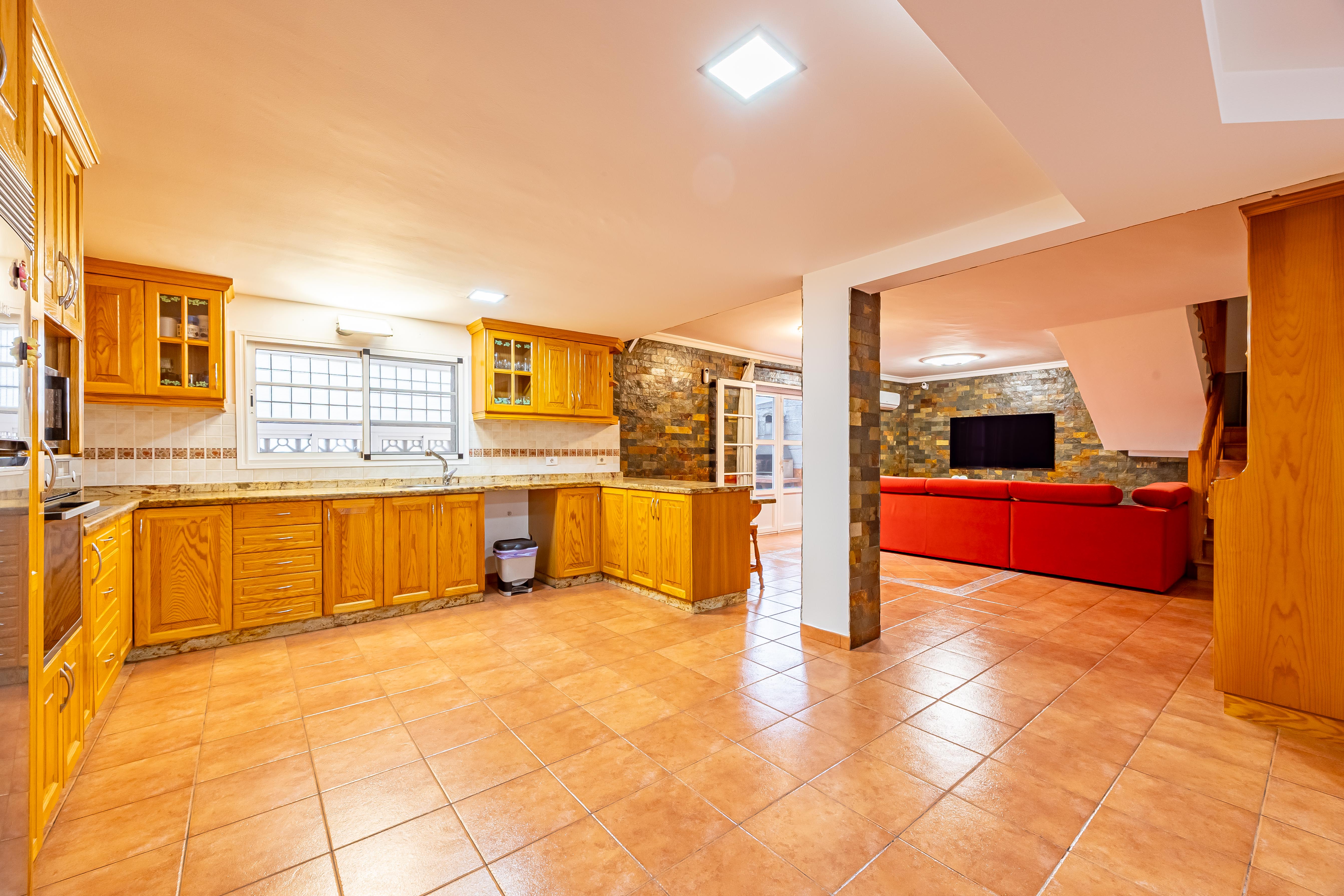 En la planta más baja, un salón-cocina-comedor impresionantemente amplio se convierte en el corazón del hogar, diseñado para acoger tanto reuniones familiares como momentos íntimos de ocio. La cocina está equipada con una amplia despensa, optimizando el espacio para realizar tus actividades culinarias. Una habitación adicional se encuentra en esta planta, junto a una extensa terraza que redefine la idea de disfrutar al aire libre, equipada con una barbacoa y un área cubierta con armarios, donde la practicidad de disponer de lavadora y secadora se fusiona con las vistas inigualables a un barranco cercano, sumergiéndote en una paz indescriptible.