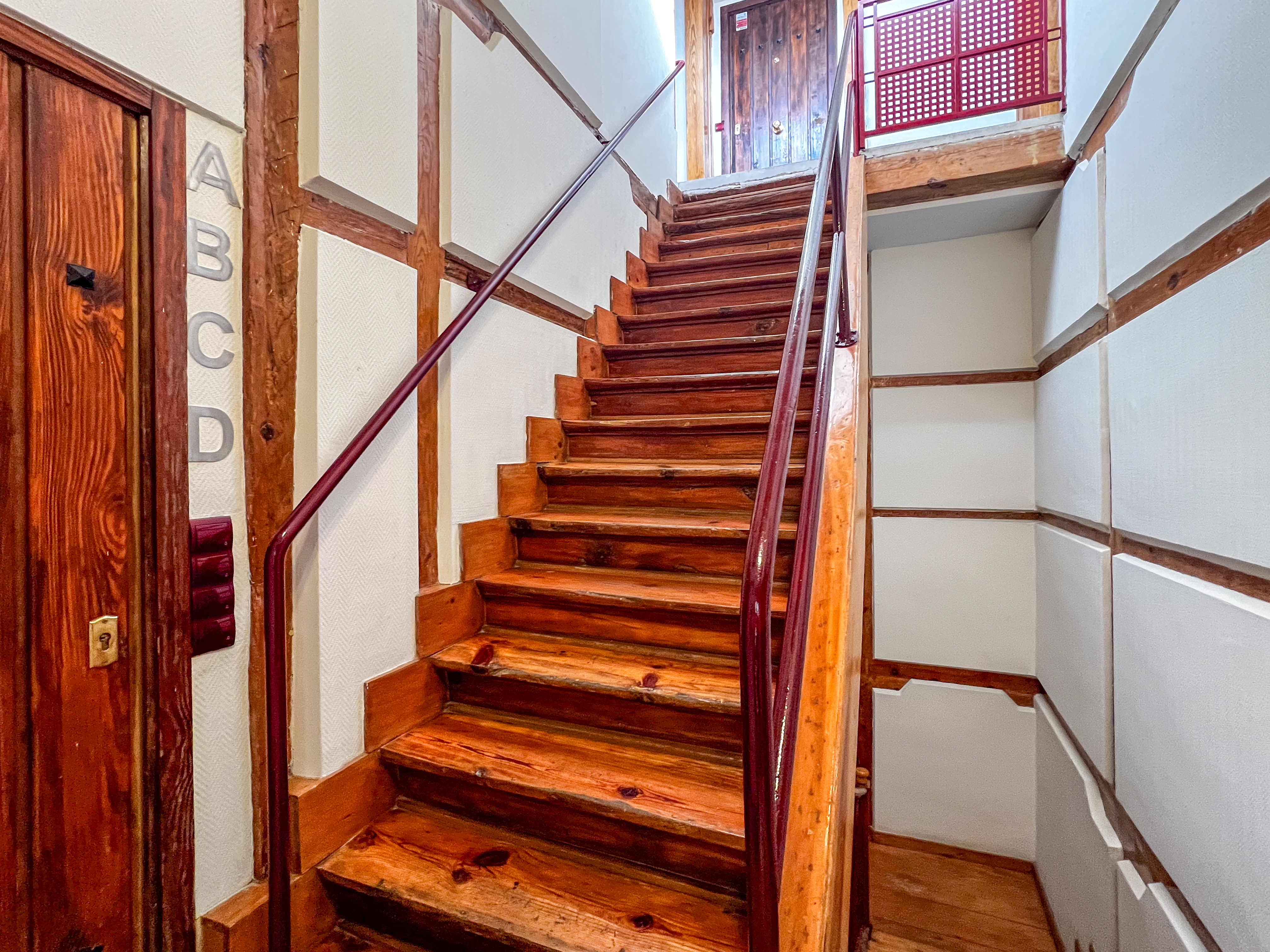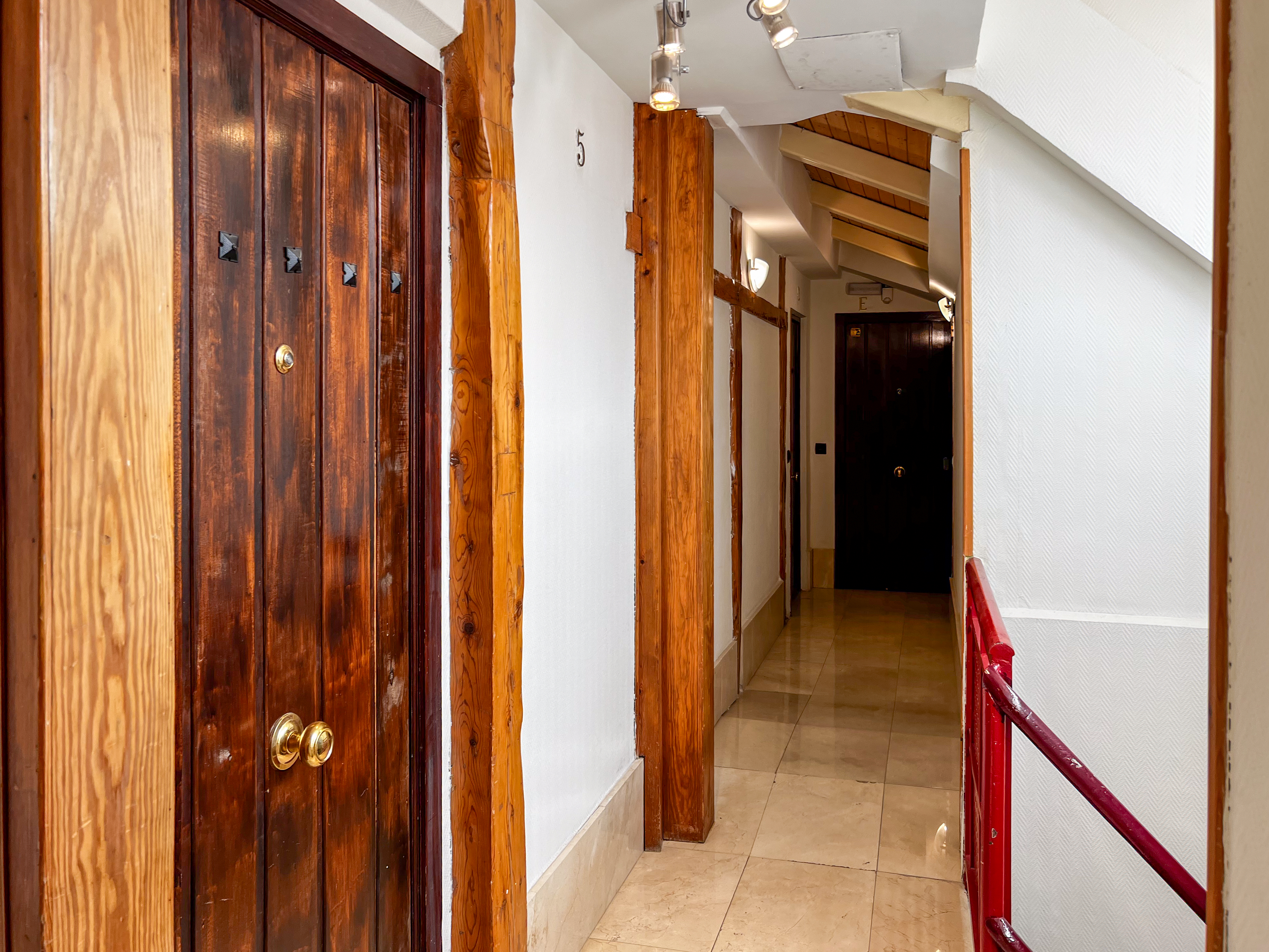 El edificio cuenta con ascensor hasta la cuarta planta, y el acceso a la vivienda (quinta planta) se realiza subiendo un pequeño tramo de escaleras, que podrás ver en las fotografías.