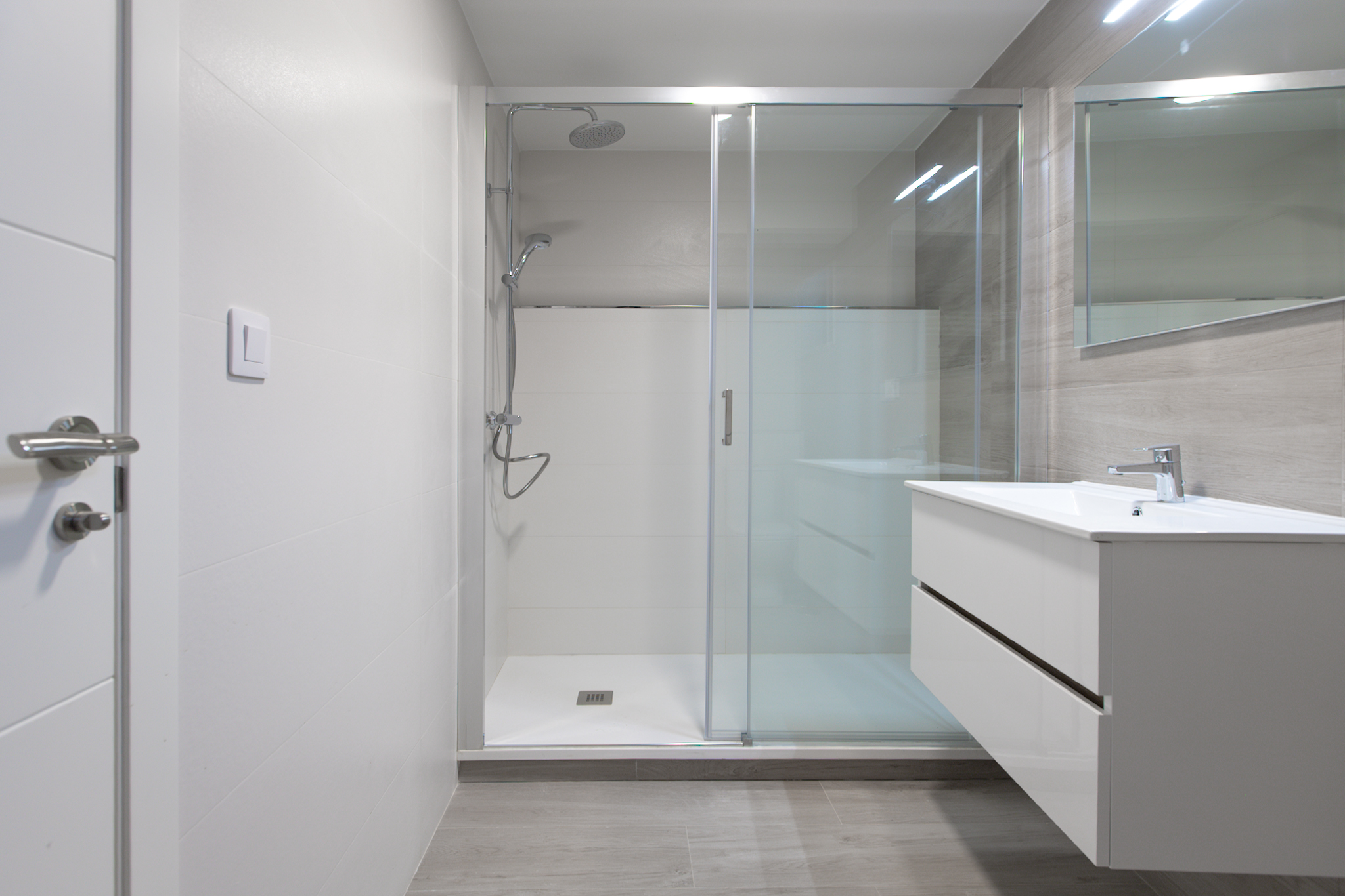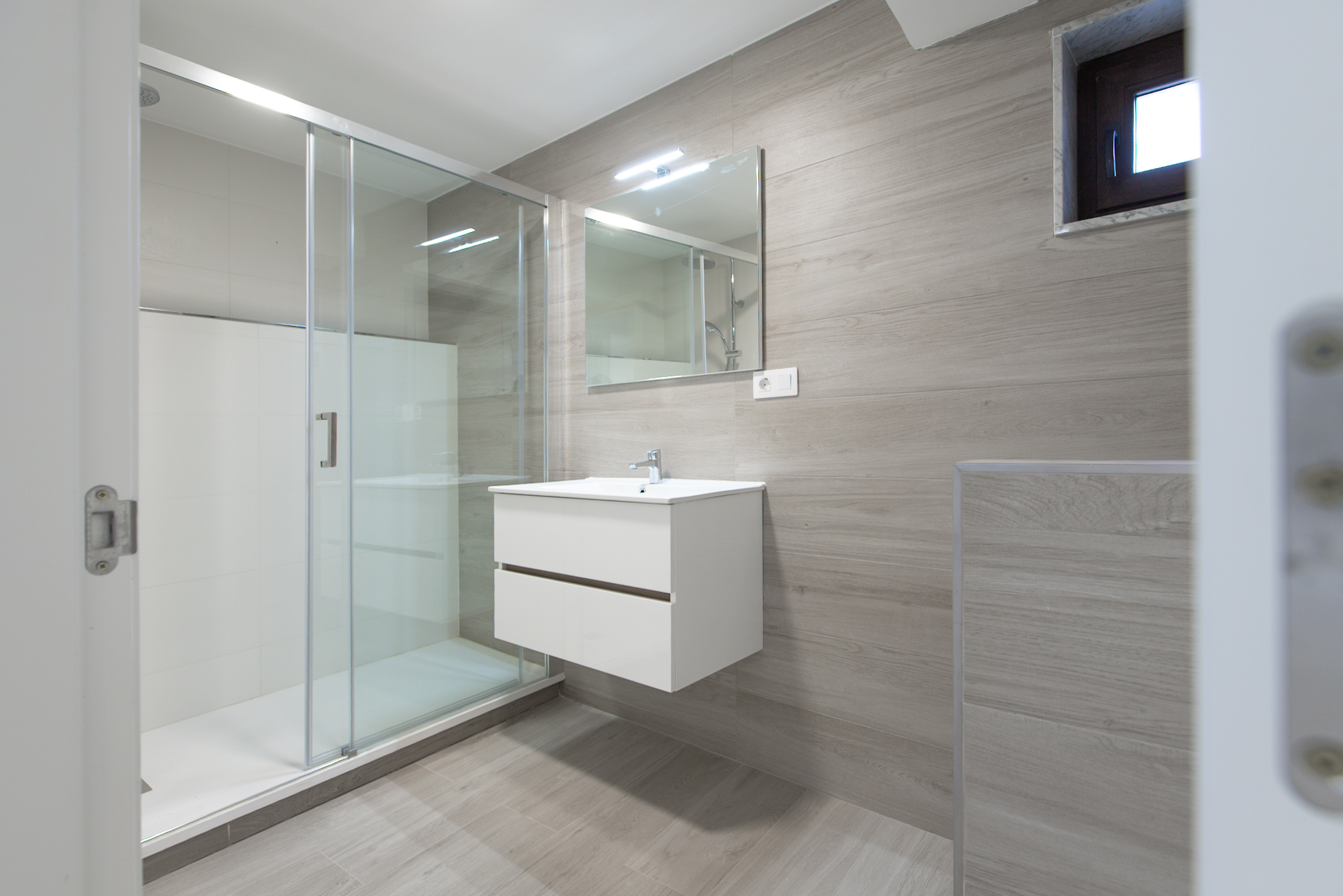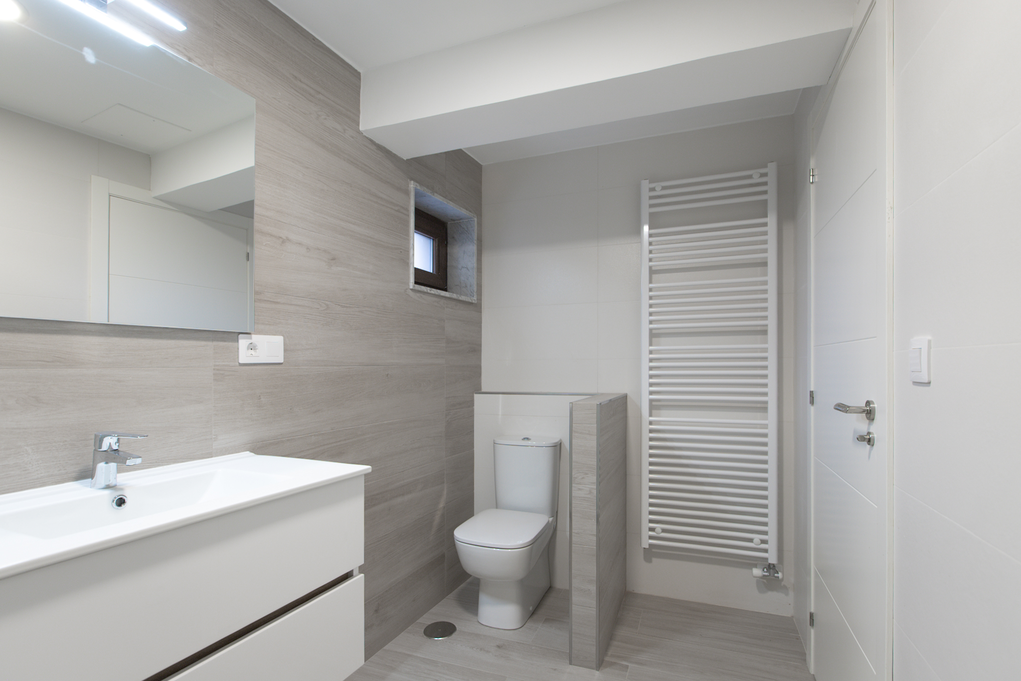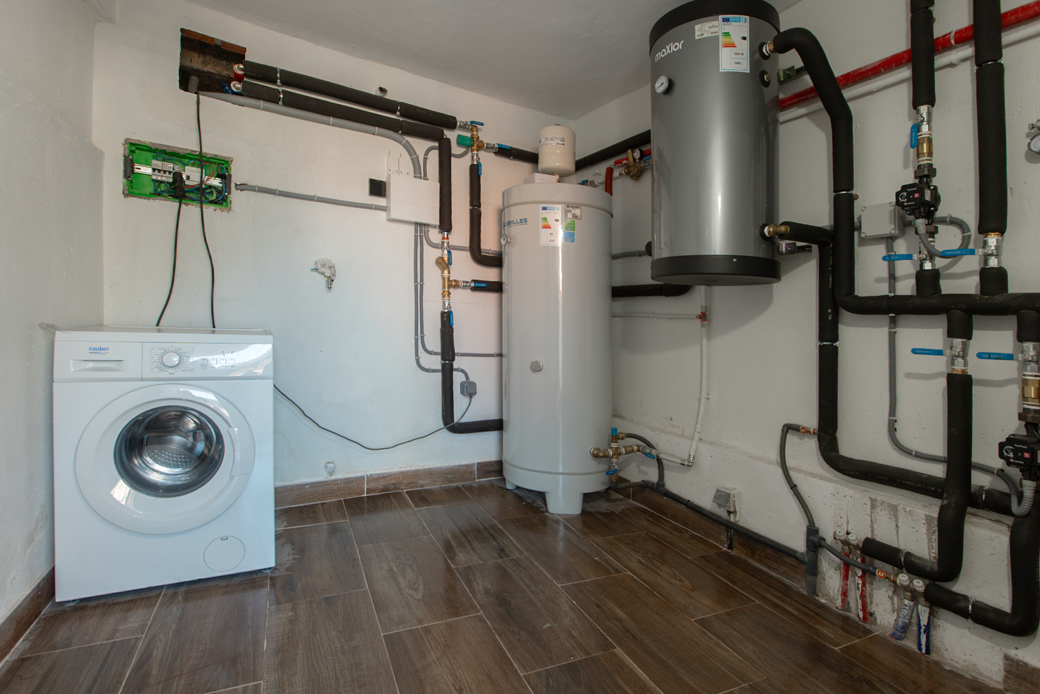 En la planta baja, destaca un salón con cocina totalmente equipada de concepto abierto, un dormitorio con armario empotrado, un baño completo y un práctico cuarto de lavandería con lavadora y zona de instalaciones. La cocina es de marca Santos con los electrodomésticos (nevera, horno, microondas, lavavajillas) a estrenar.