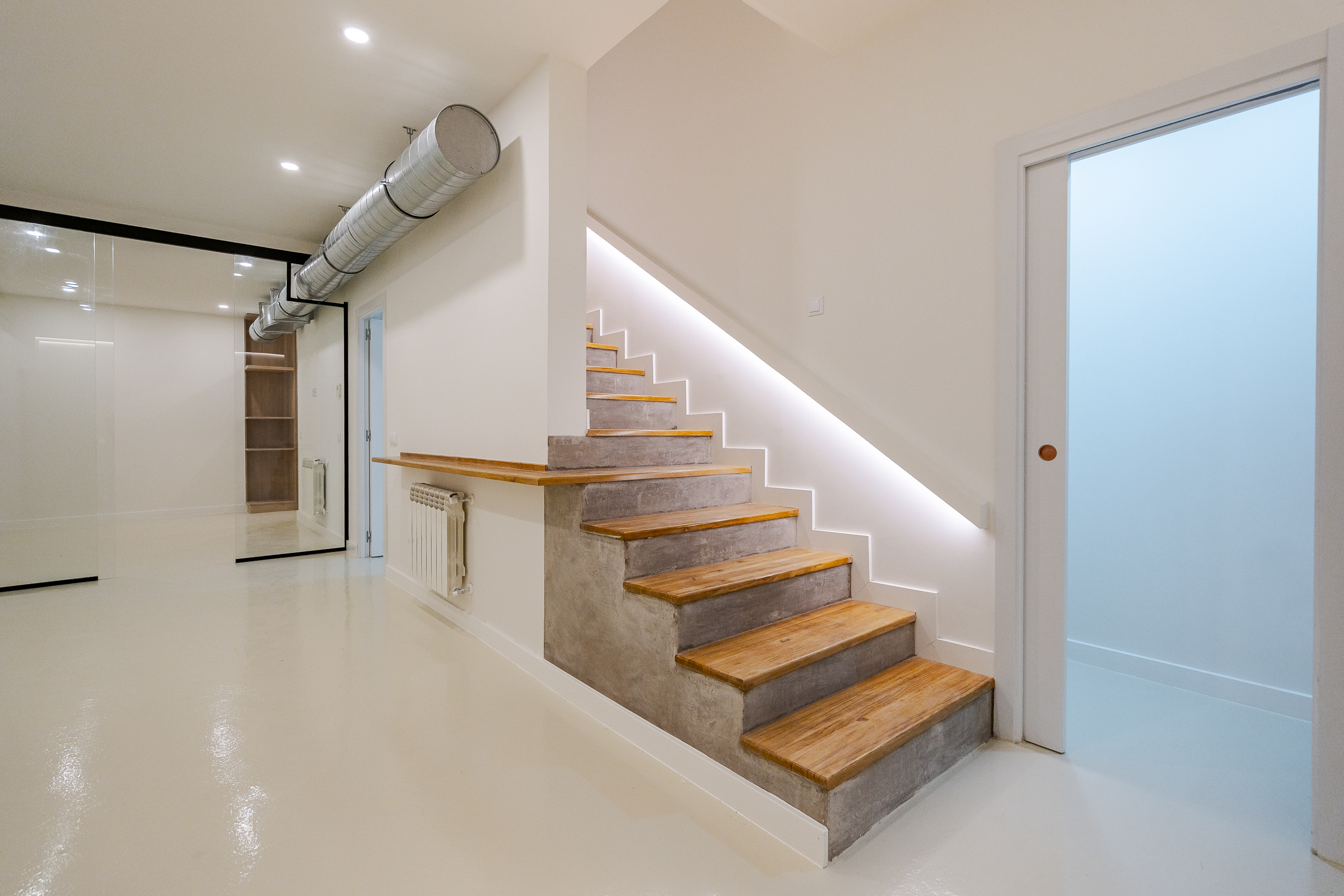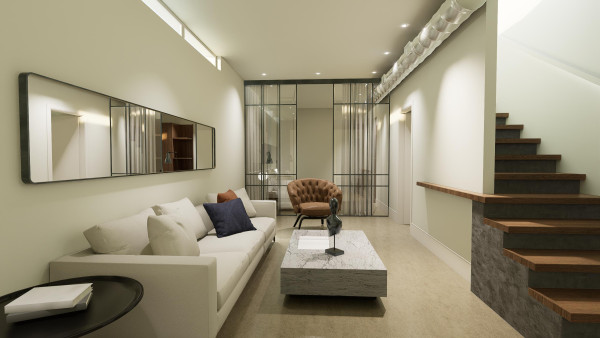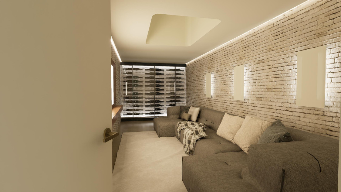 Descendiendo las escaleras, encontrarás 89 m2 adicionales que te invitan a explorar nuevas posibilidades. Este nivel cuenta con un amplio salón diáfano, ideal para el entretenimiento, además de una sala adaptable como cine, bodega o zona recreativa. Con baño completo y despensa, todo el nivel está armoniosamente iluminado por un gran ventanal con puerta corredera.