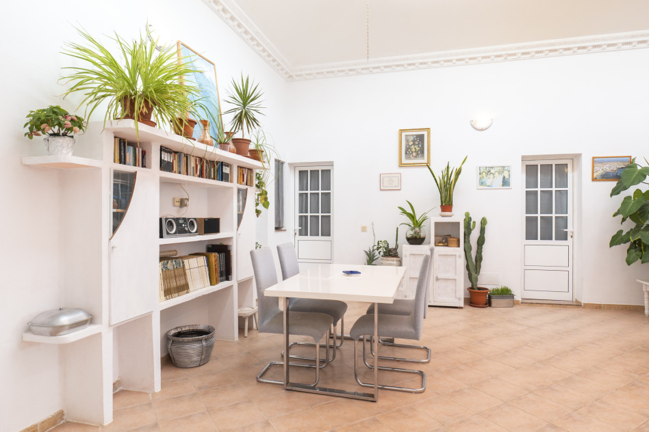 El corazón de la casa late en su amplio salón con comedor, un área diseñada para el esparcimiento familiar y social. Aquí, la vitrina de obra no solo es un elemento decorativo, sino también un práctico espacio de almacenamiento.