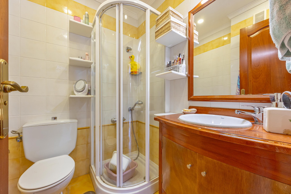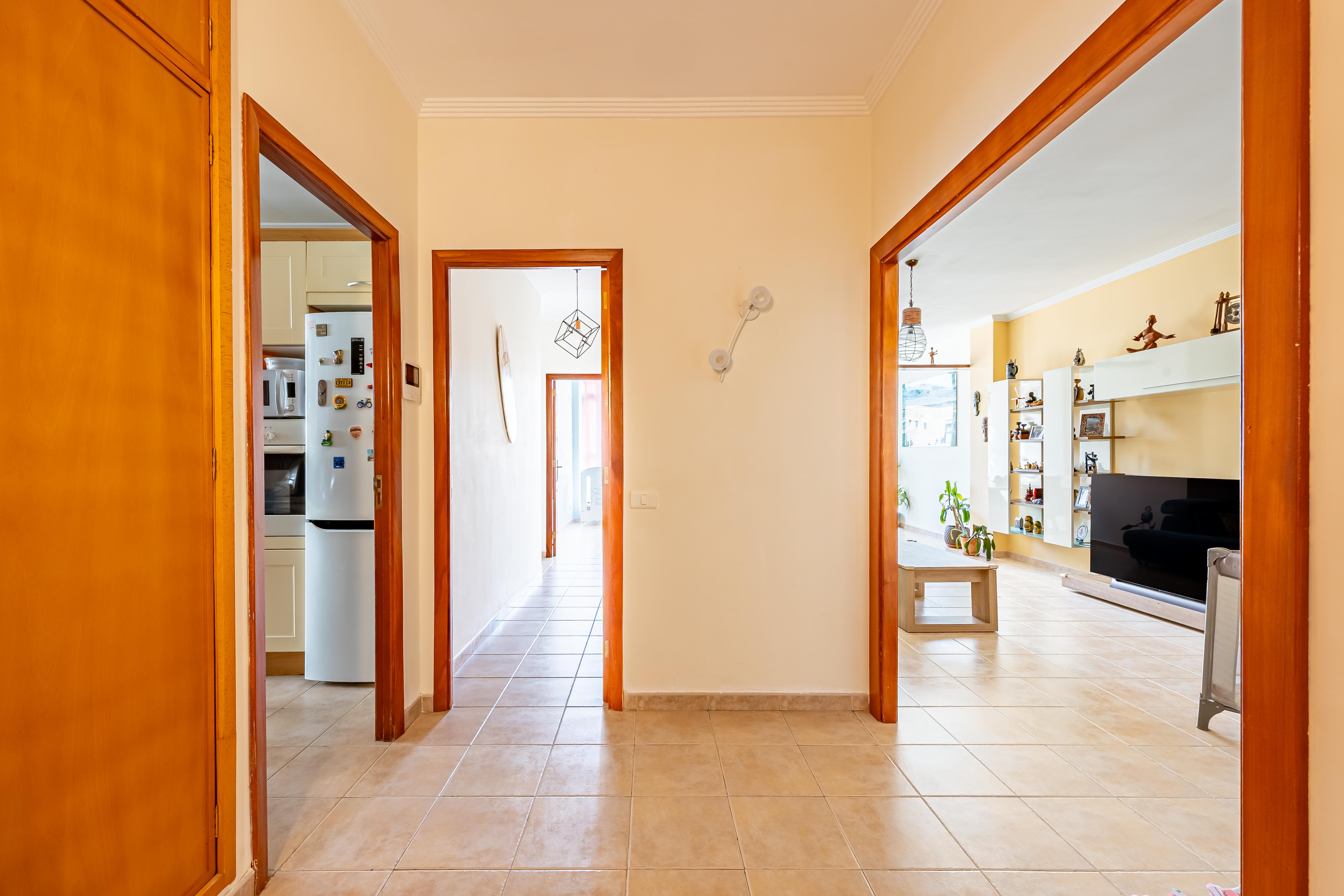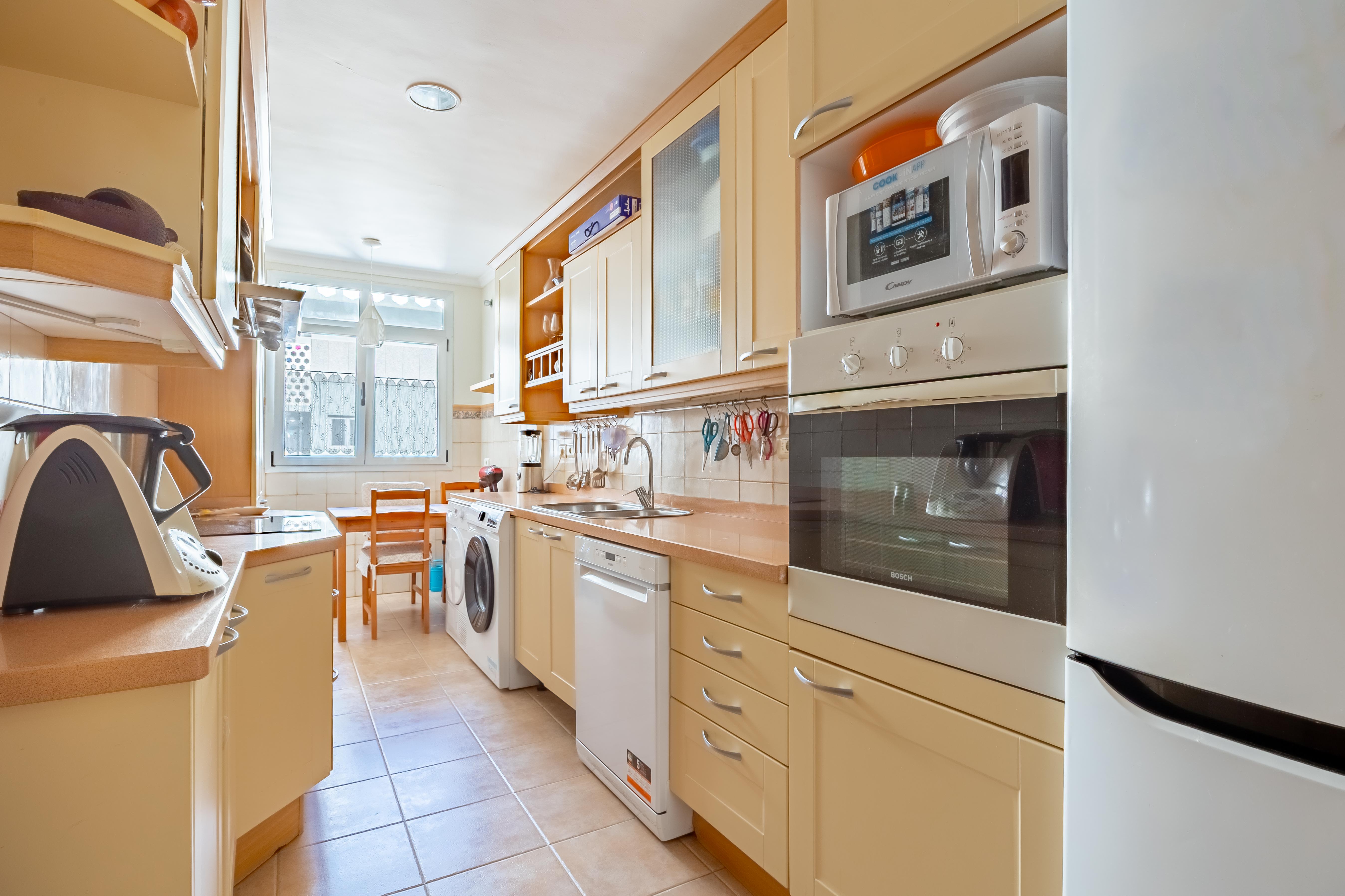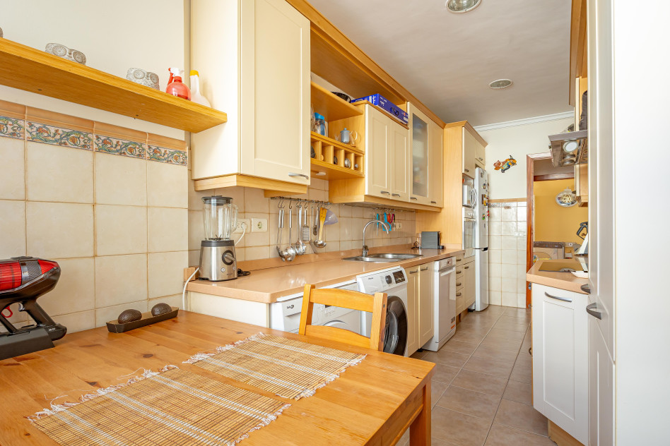Desde el primer momento, la vivienda transmite amplitud. Un generoso hall de entrada con armario empotrado da paso a una distribución cómoda y bien pensada. La cocina, independiente y con ventilación natural, cuenta con gran capacidad de almacenamiento y una práctica solana equipada con lavadora, secadora y lavavajillas.