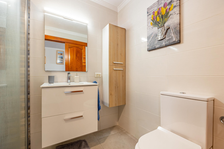 Situada en la séptima planta (penúltima) de un edificio cuidado con dos ascensores y tan solo dos vecinos por planta, destaca por su privacidad, altura y luminosidad. La ausencia de edificaciones frente a la vivienda y su orientación noreste permiten disfrutar de una luz natural constante durante todo el día, acompañada de una agradable vista lateral al mar.