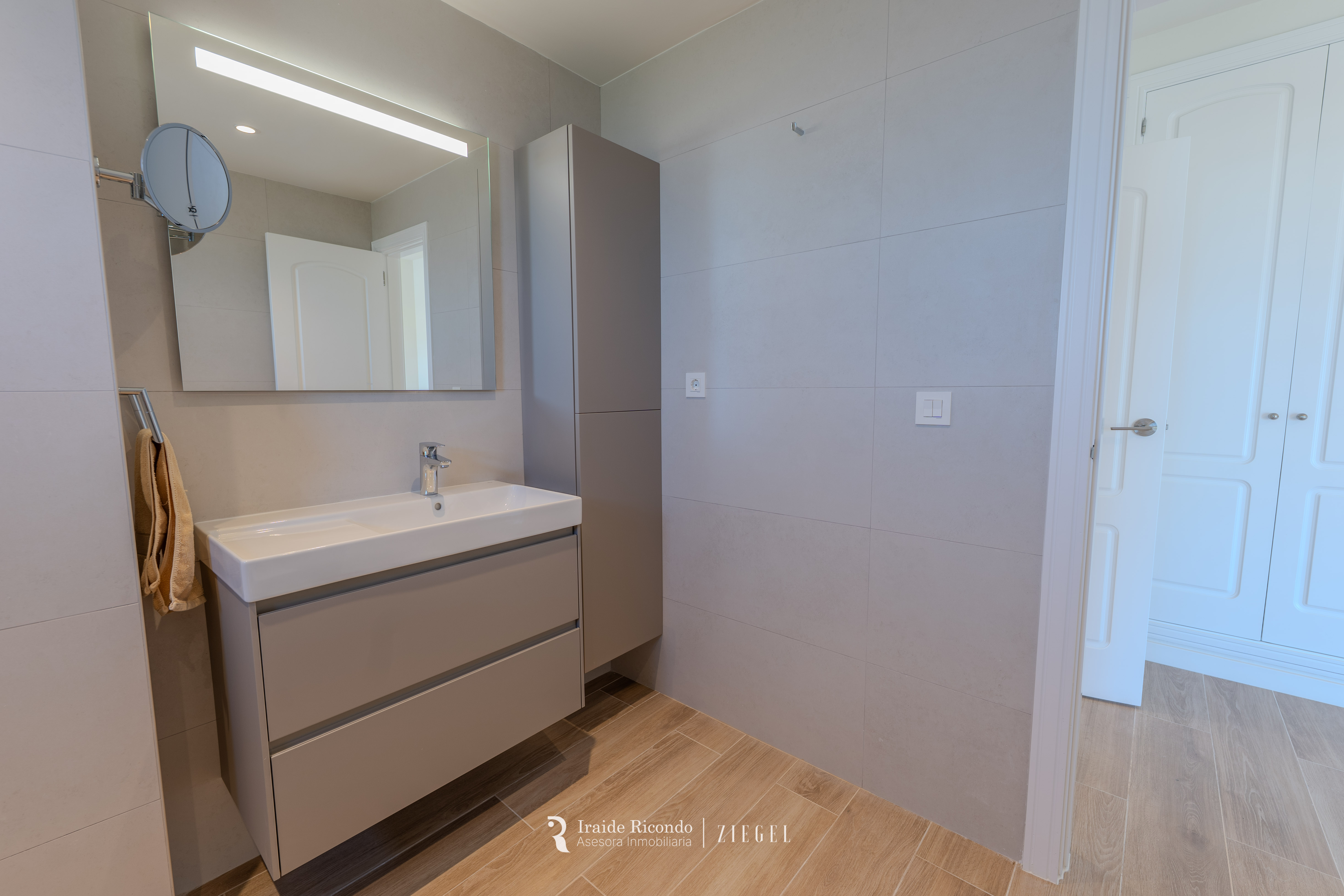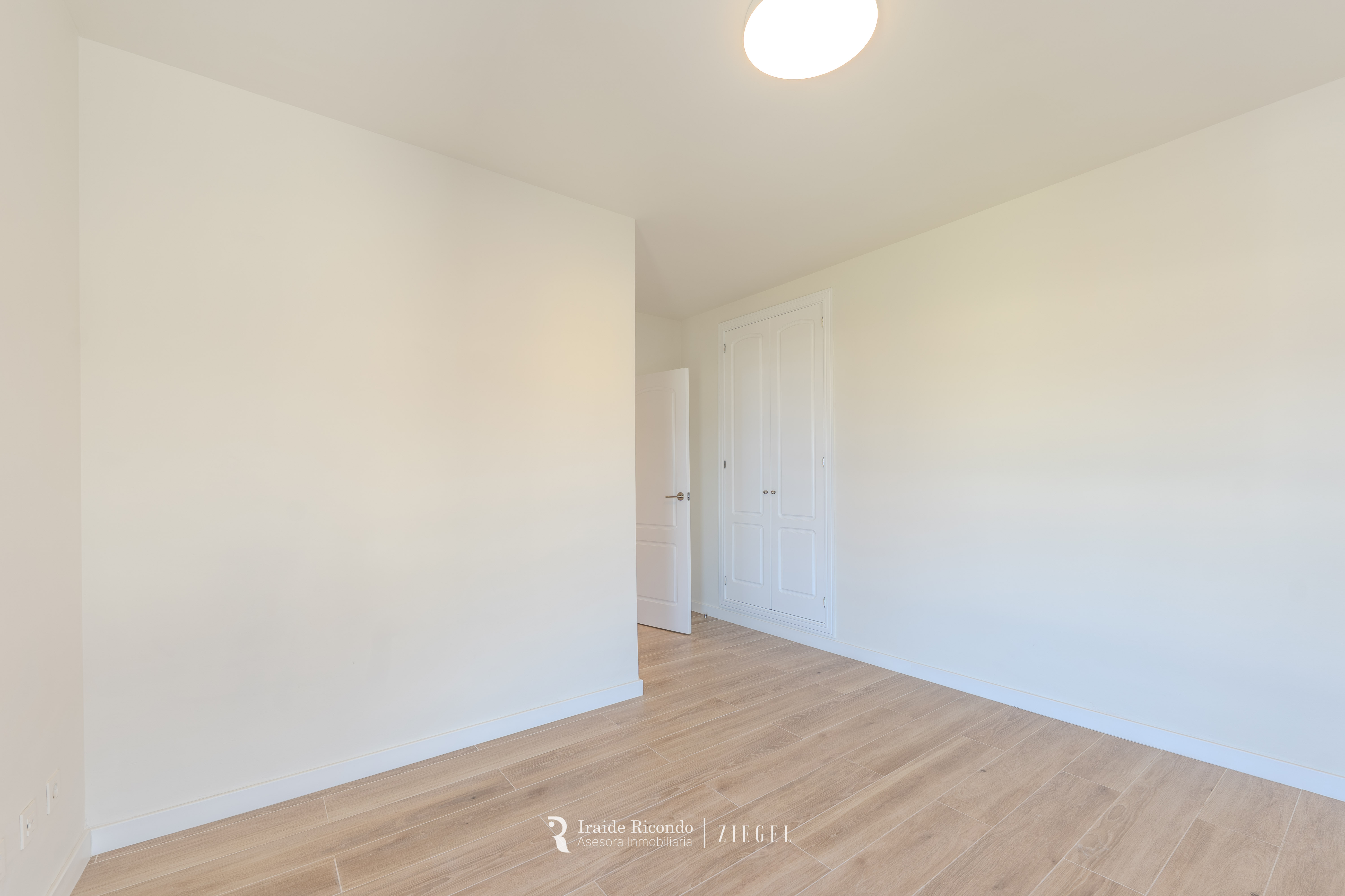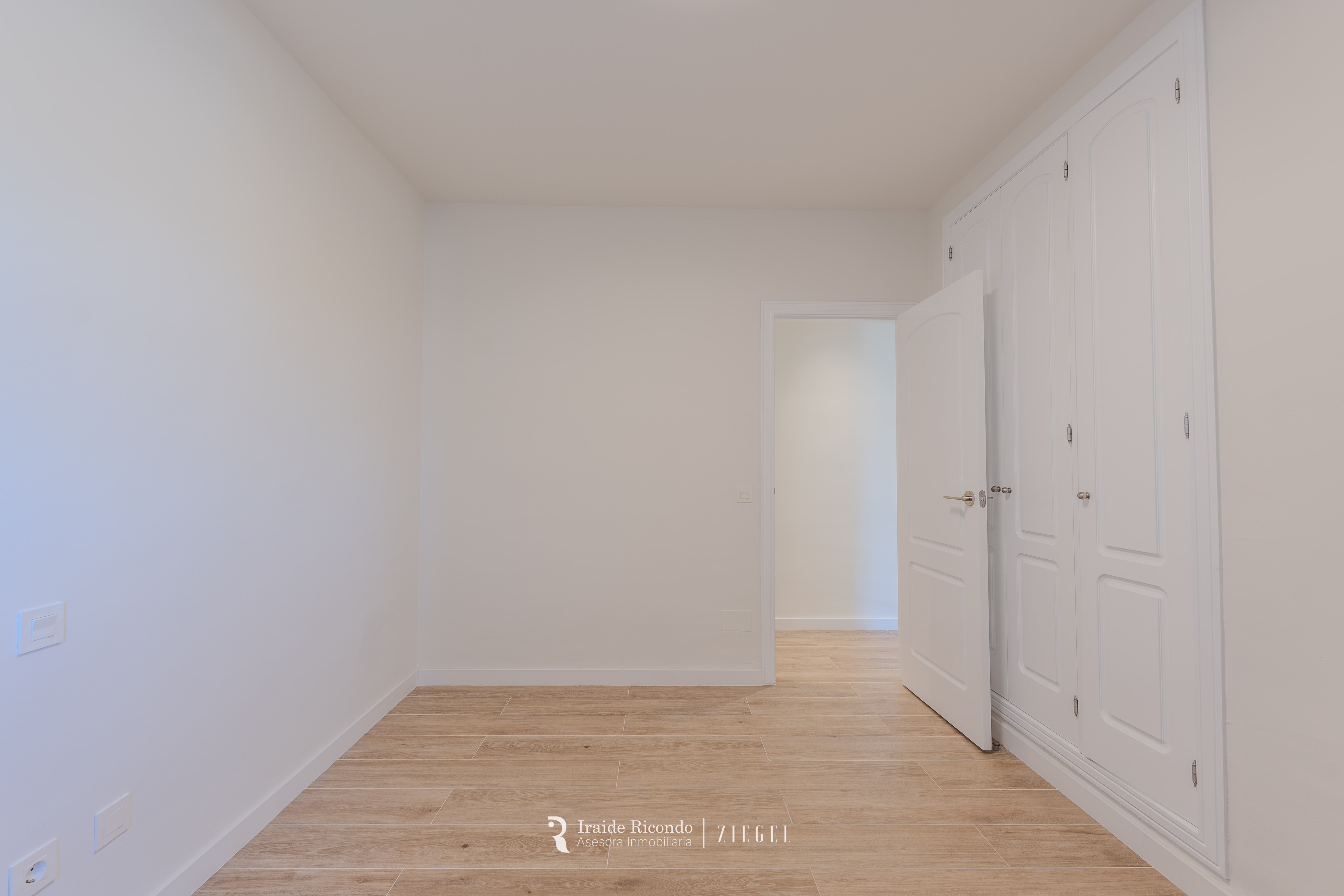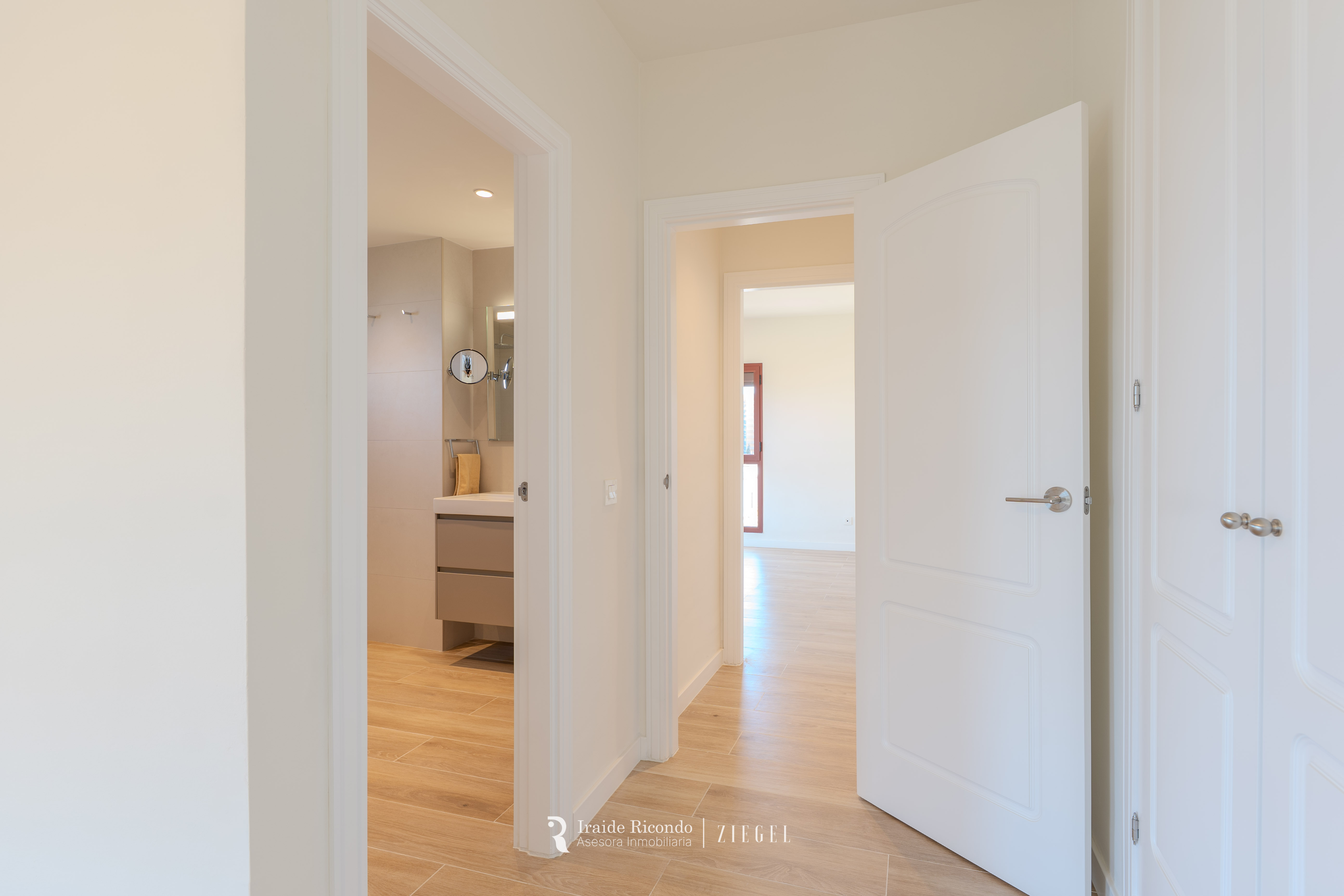 El inmueble cuenta con tres dormitorios, destacando una elegante suite principal con baño privado. Las otras dos habitaciones, igualmente amplias, disponen de armarios empotrados y comparten un segundo baño completo.
