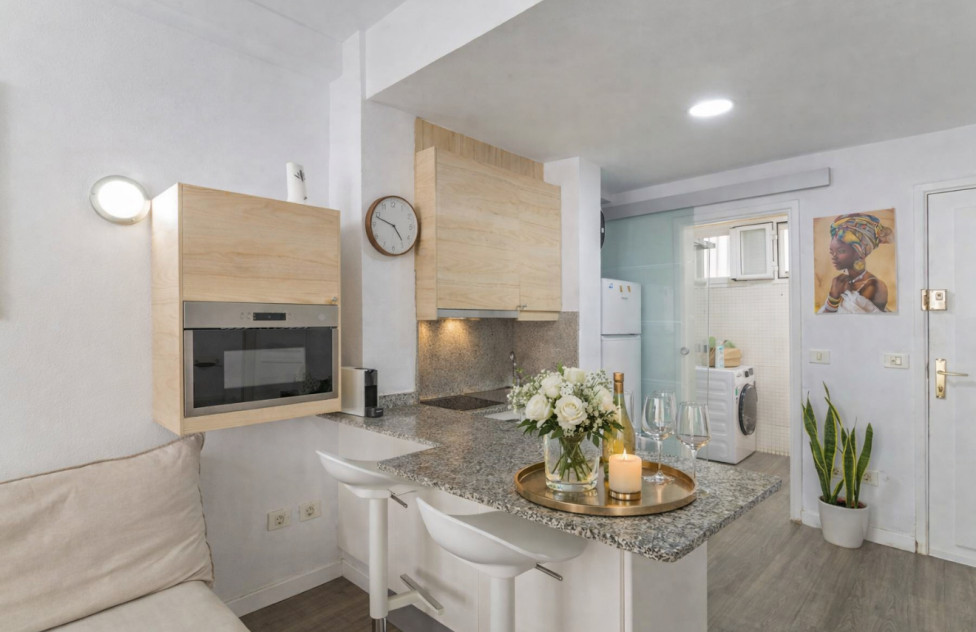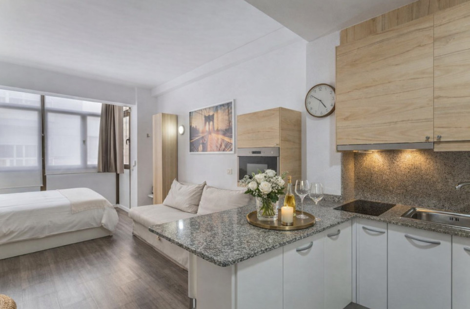 Se vende acogedor estudio de 28 m², completamente reformado, situado en una ubicación inmejorable, a escasos metros de la playa de Las Canteras y del Parque Santa Catalina.