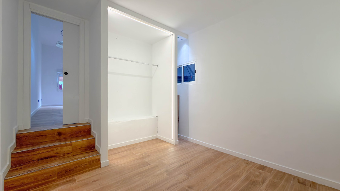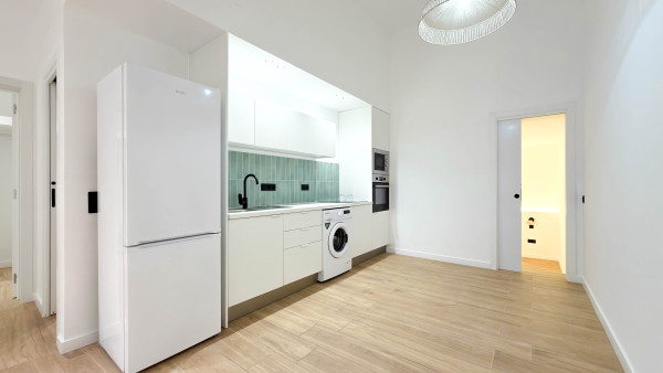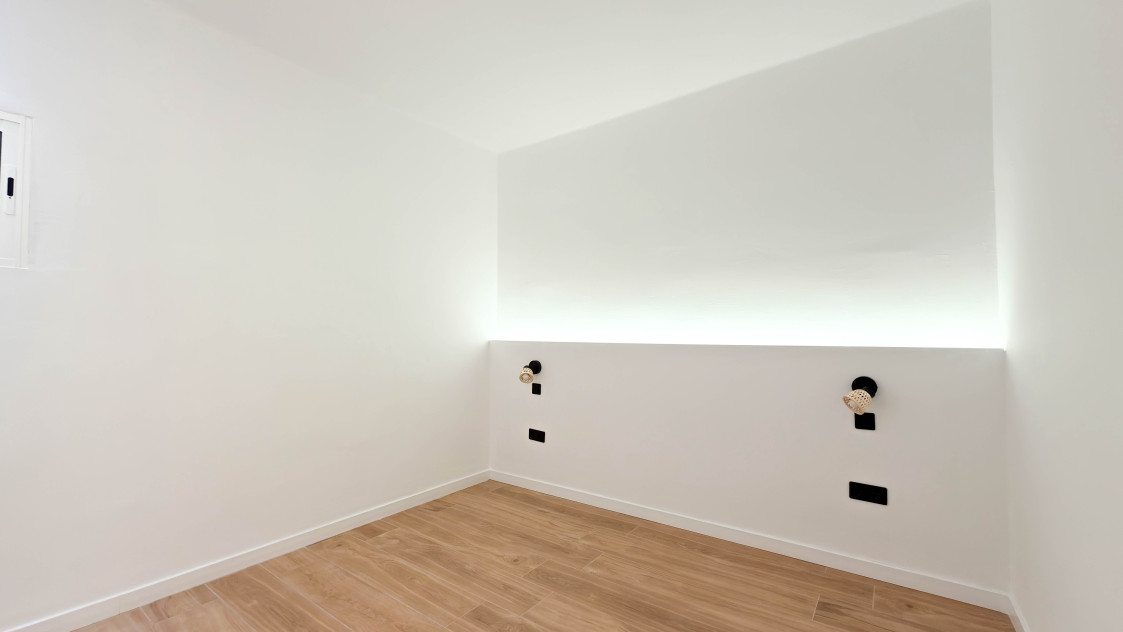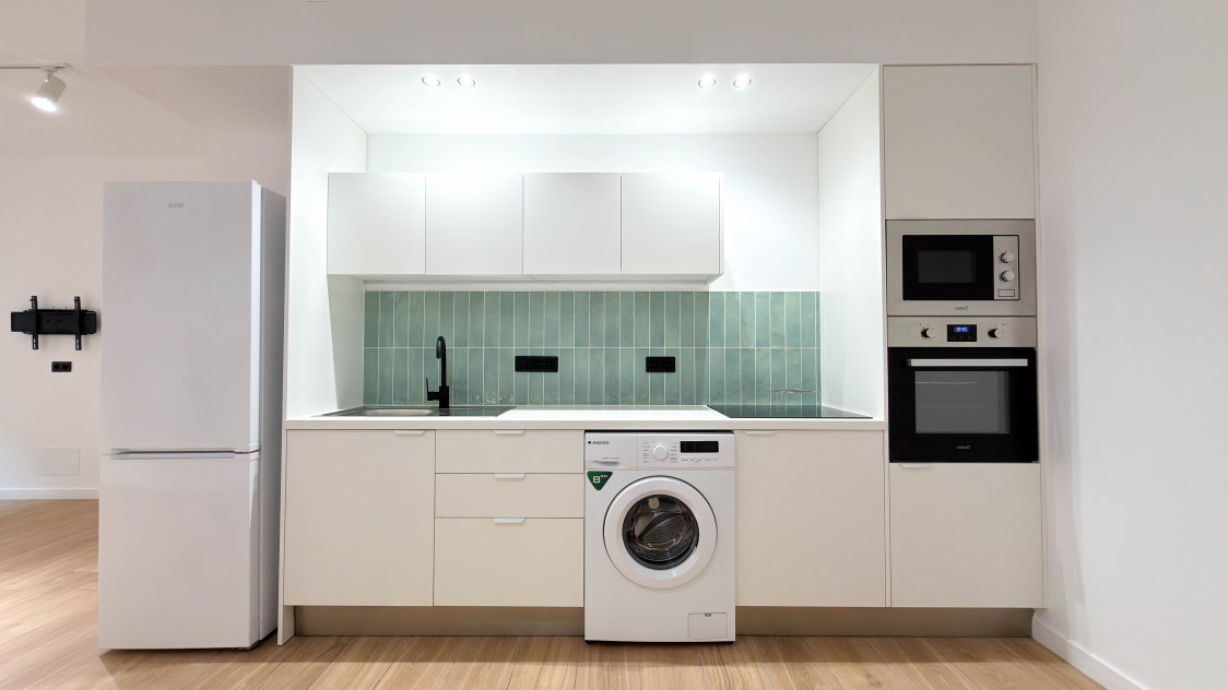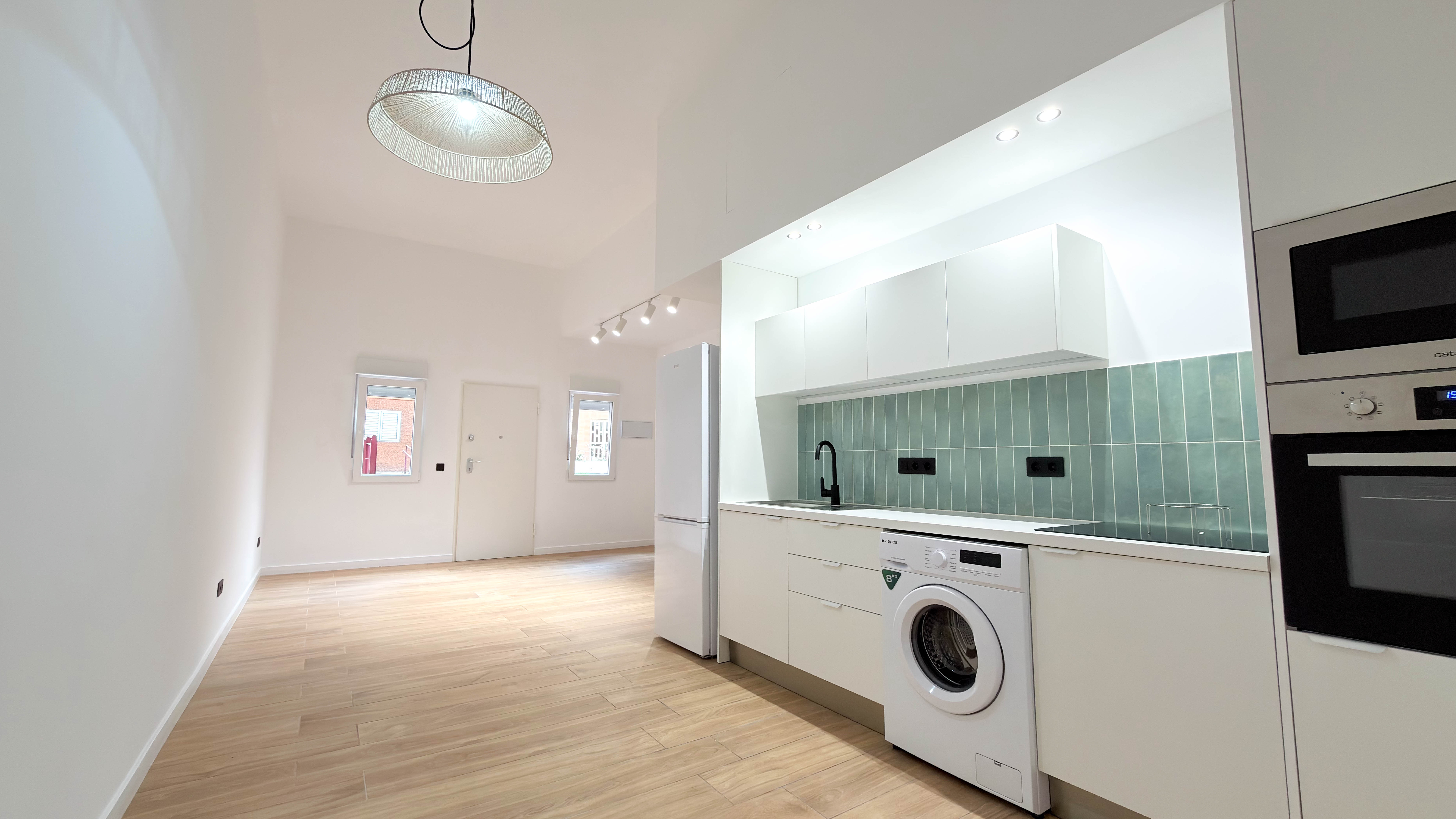 La vivienda cuenta con un salón amplio con cocina integrada, totalmente equipada con lavadora de 8 kg, nevera, horno y microondas. Se distribuye en dos dormitorios, ambos con armarios abiertos, y un baño completo equipado con ducha. Cuenta con suelo porcelánico y una reforma ejecutada con materiales duraderos.
