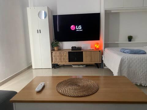 El estudio ha sido decorado con un estilo moderno y cálido, pensado para ofrecer comodidad y funcionalidad: