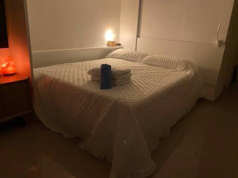 Amplia zona de descanso con cama doble confortable