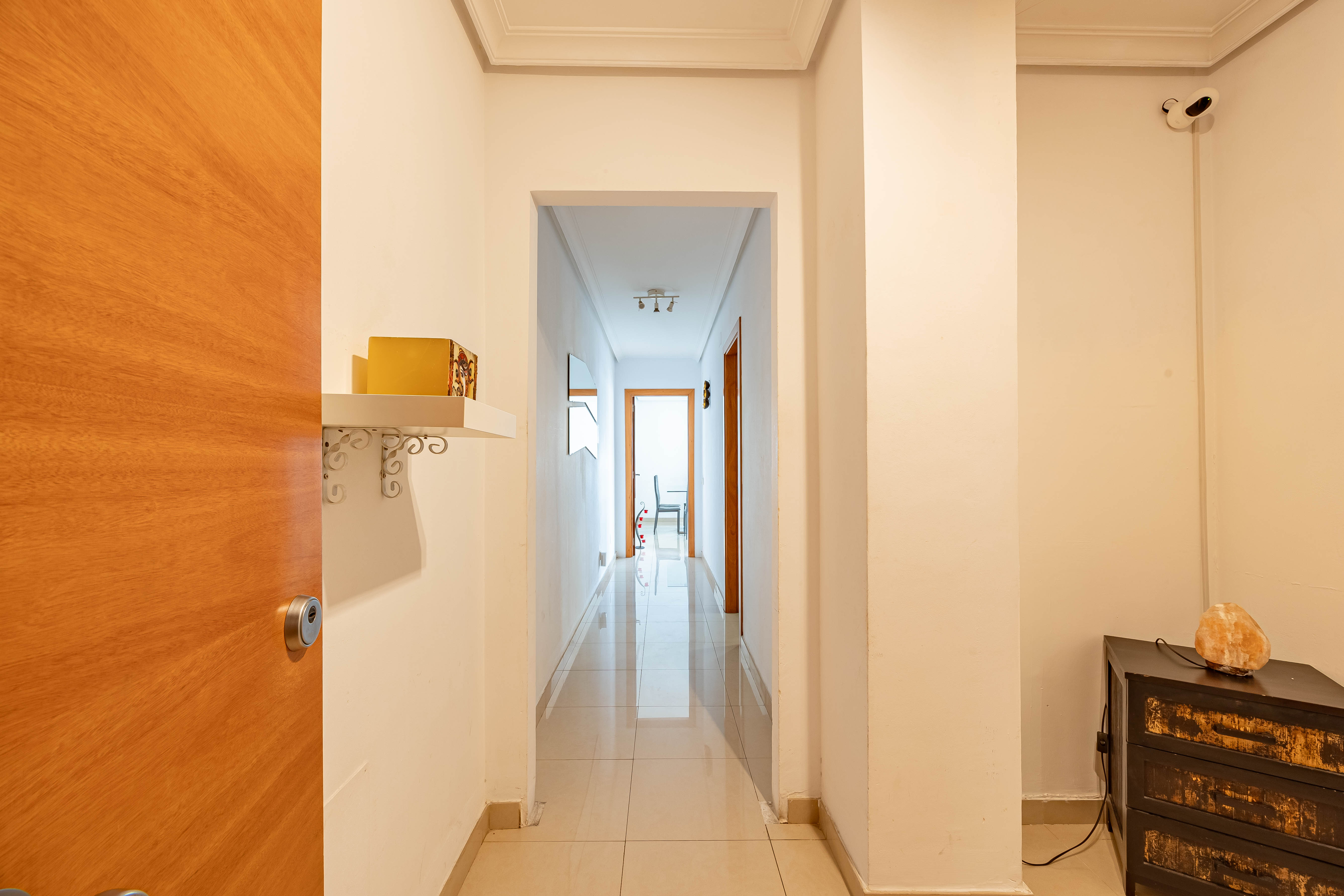 Al entrar a la vivienda, damos con un amplio recibidor que da acceso de frente a la zona de día, con un primer acceso a una amplia cocina con espacio de solana y un segundo acceso a un incríeble salón/comedor con amplios ventanales que aportan gran luminosidad a la estancia.