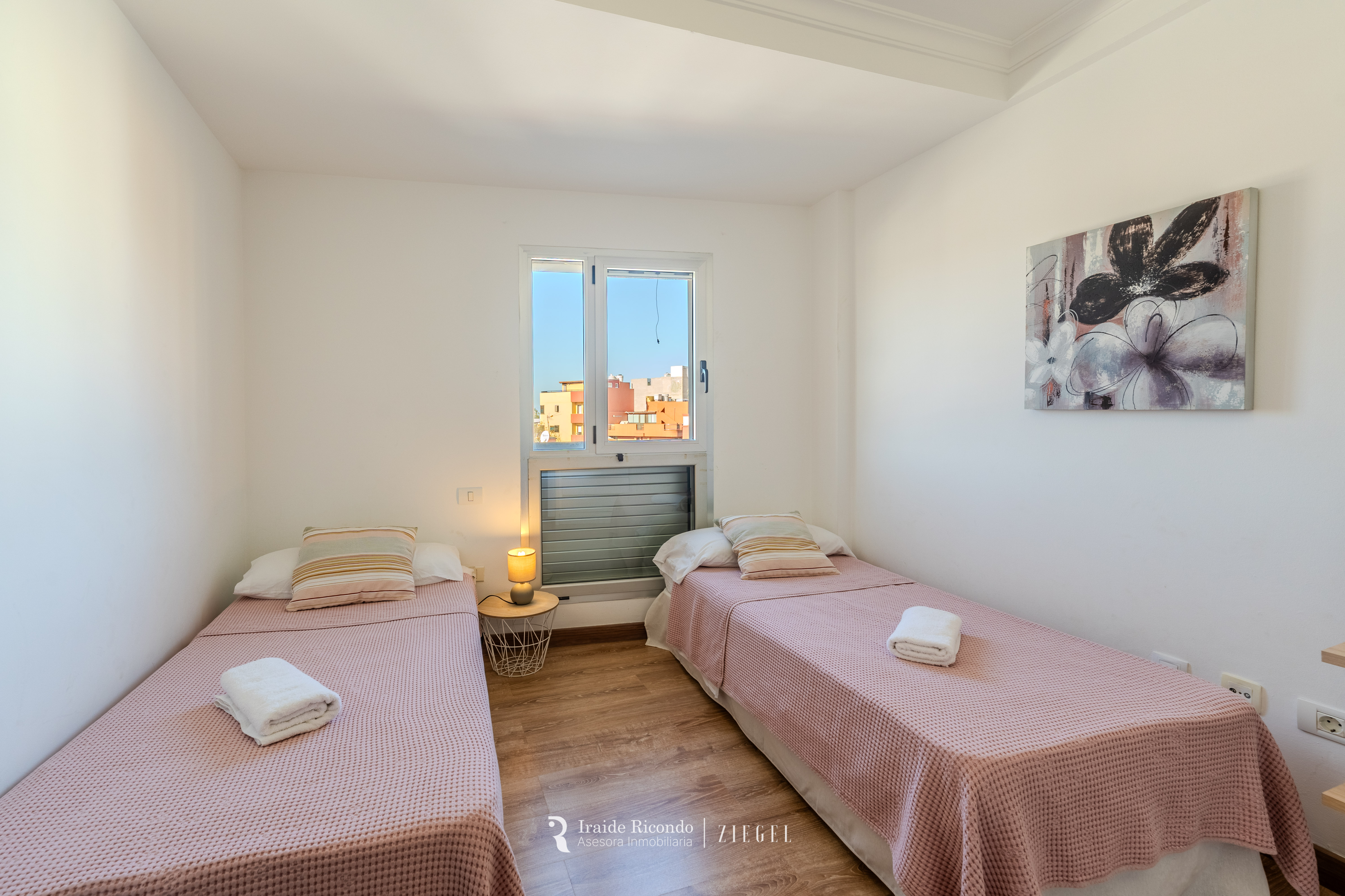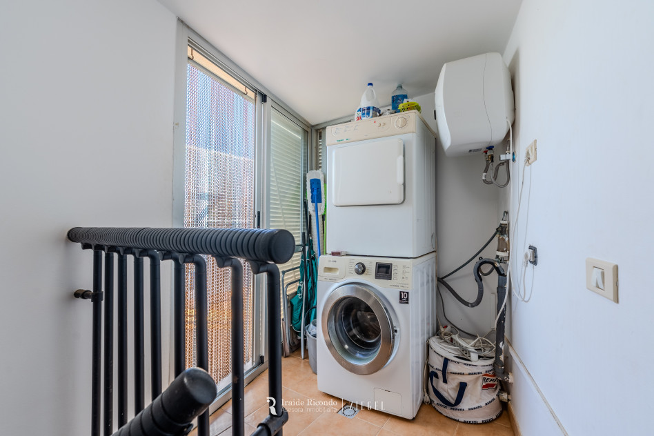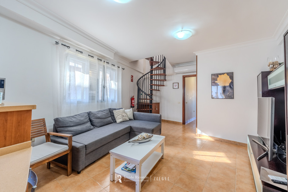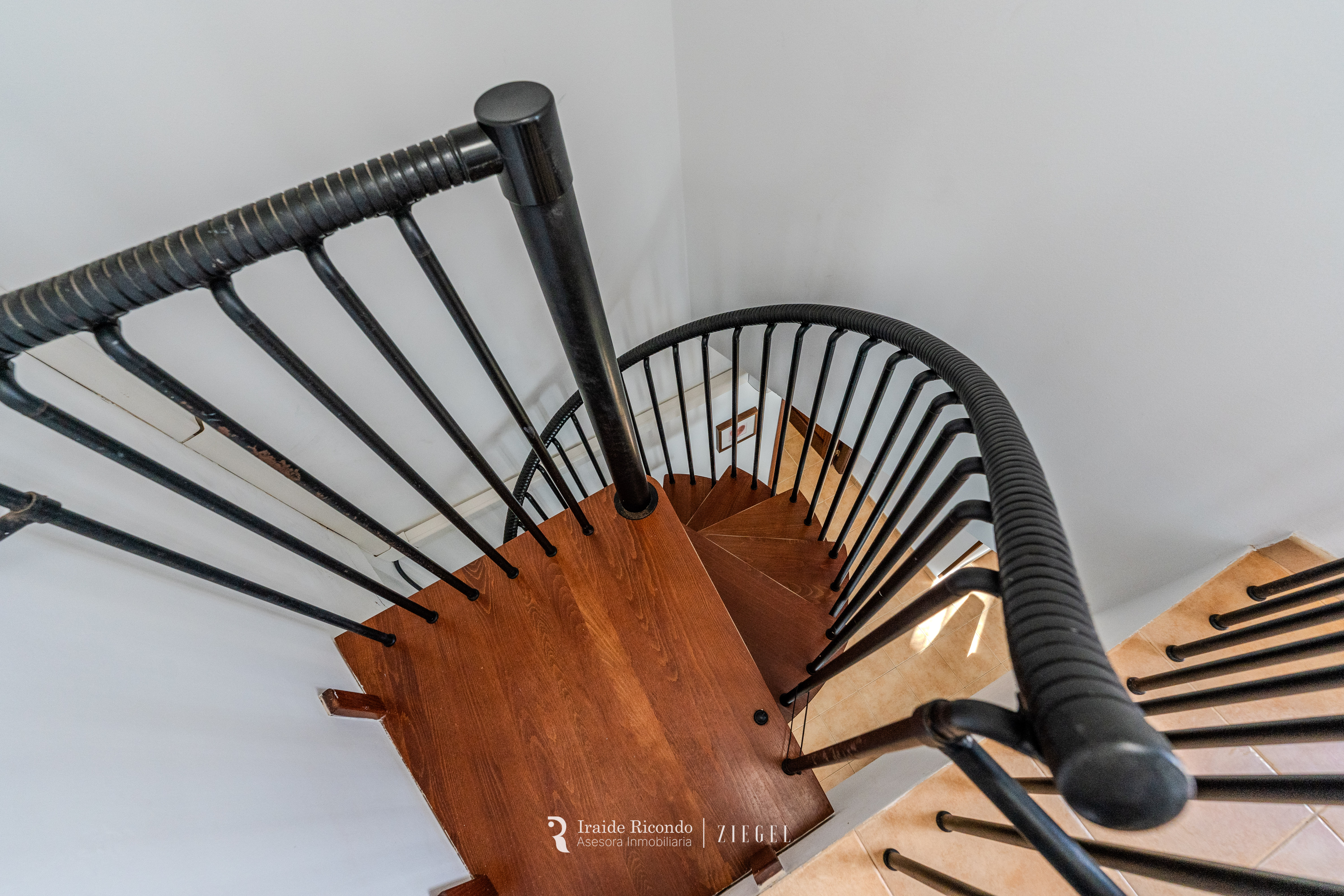 Desde el salón, una escalera de caracol conduce a la planta superior, donde se encuentra una práctica zona destinada a lavandería (lavadora y secadora) y el verdadero valor diferencial de la propiedad: una espectacular terraza privativa descubierta de aproximadamente 60 m² con vistas despejadas al mar. Este espacio permite crear distintos ambientes perfectamente definidos, como zona de barbacoa, comedor exterior y área de solárium, ideal para disfrutar del clima privilegiado de la zona durante todo el año.