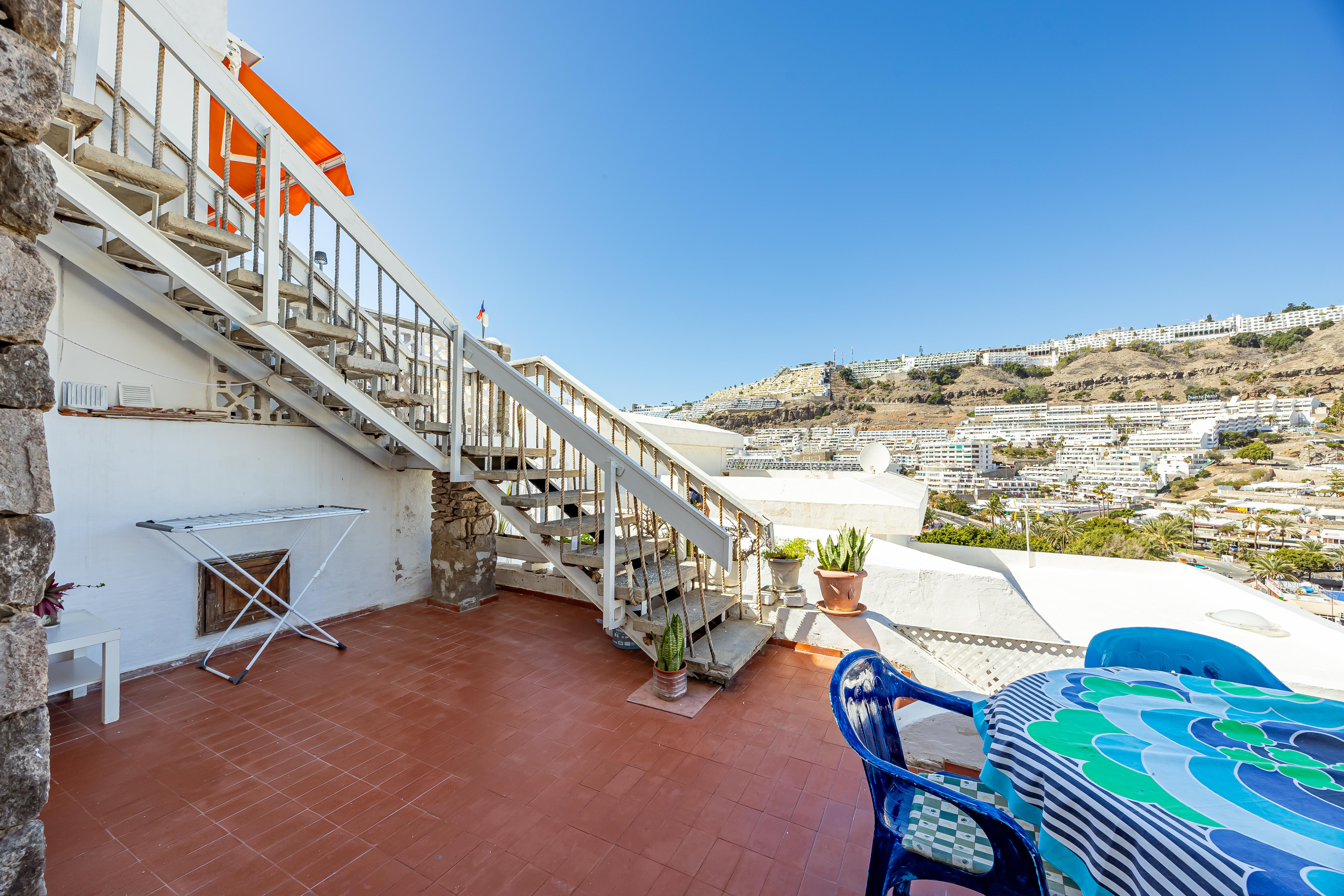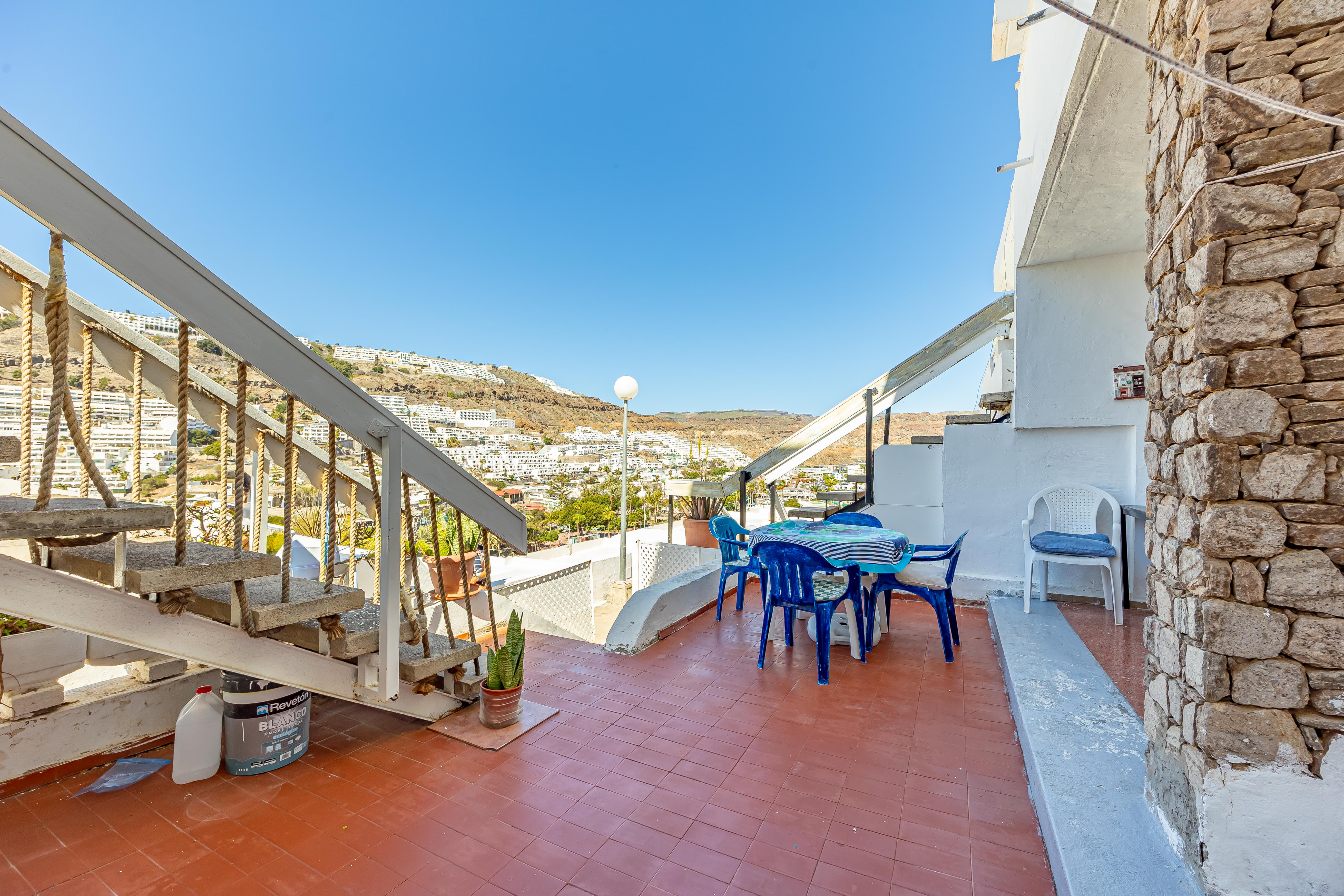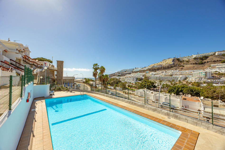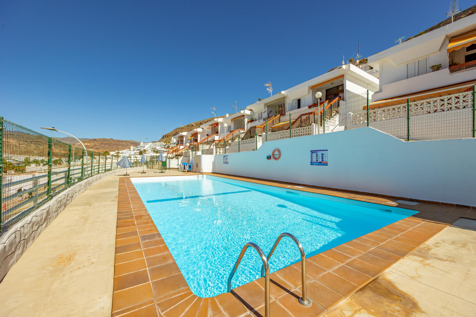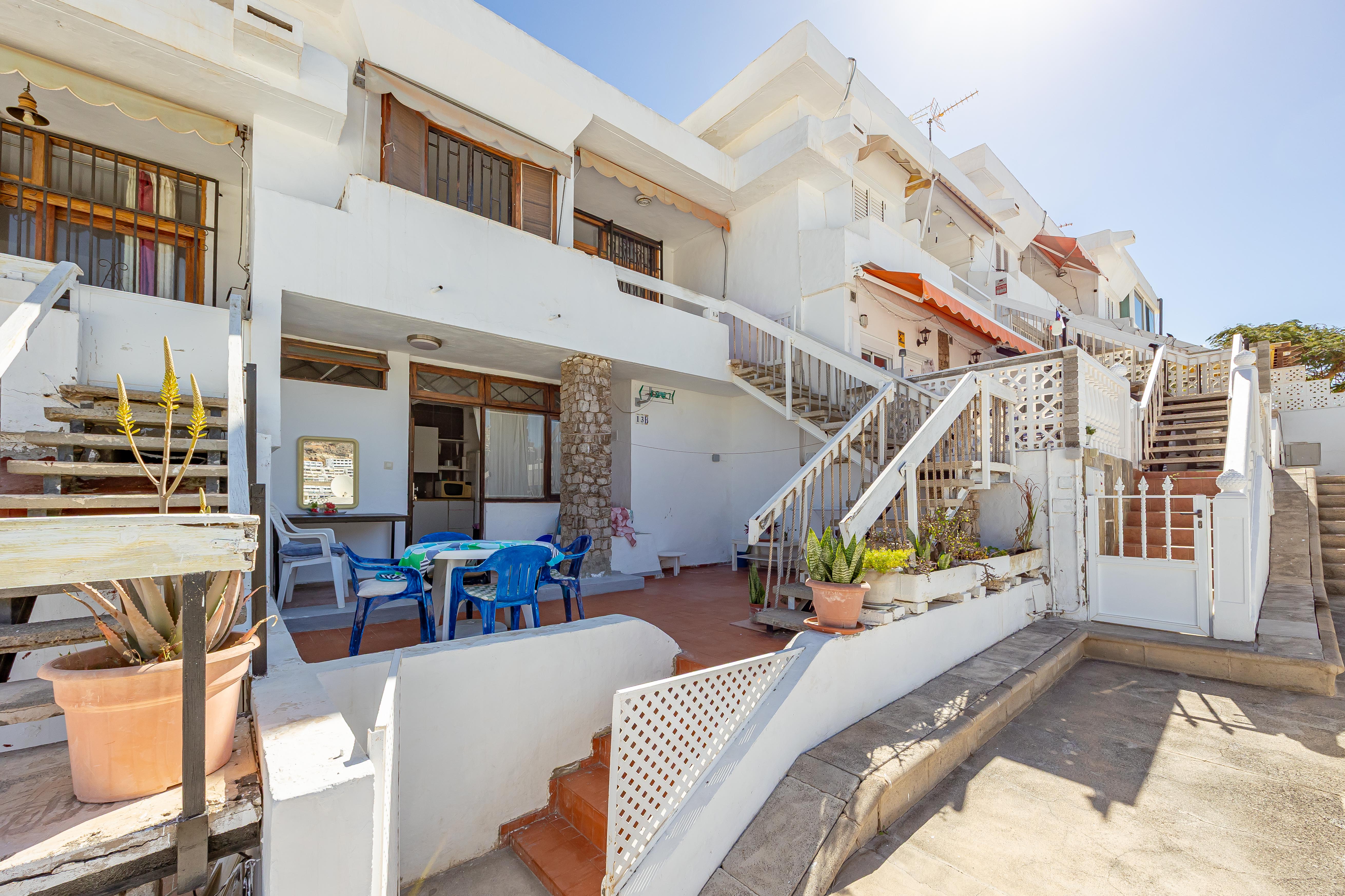 PUERTO RICO-MOGÁN. Hoy les presento la oportunidad de adquirir una propiedad versátil, con la posibilidad de disfrutarla personalmente, alquilarla o ambas al mismo tiempo. Se trata de dos apartamentos independientes (física y registralmente) pero que se unen entre sí, tipo dúplex por unas escaleras externas. El primer apartamento en la planta alta, se distribuye en dos dormitorios, baño, salón-cocina, balcón con espectaculares vistas y una terraza trasera, que ofrece infinidad de posibilidades. En la planta baja, se encuentra el otro apartamento, tipo loft de unos 24m2 y con una bonita terraza delantera. Ambas propiedades son A REFORMAR. El complejo está en la zona baja de Puerto Rico, relativamente cerca de la playa y se encuentra libre de explotación. También cuenta con una fantástica piscina comunitaria. Oportunidades así, no duran mucho tiempo en el mercado, no lo dude y pida más información sin compromiso, Y VEA EL VIDEO CON RECREACIÓN Y REFORMAS VIRTUAL.