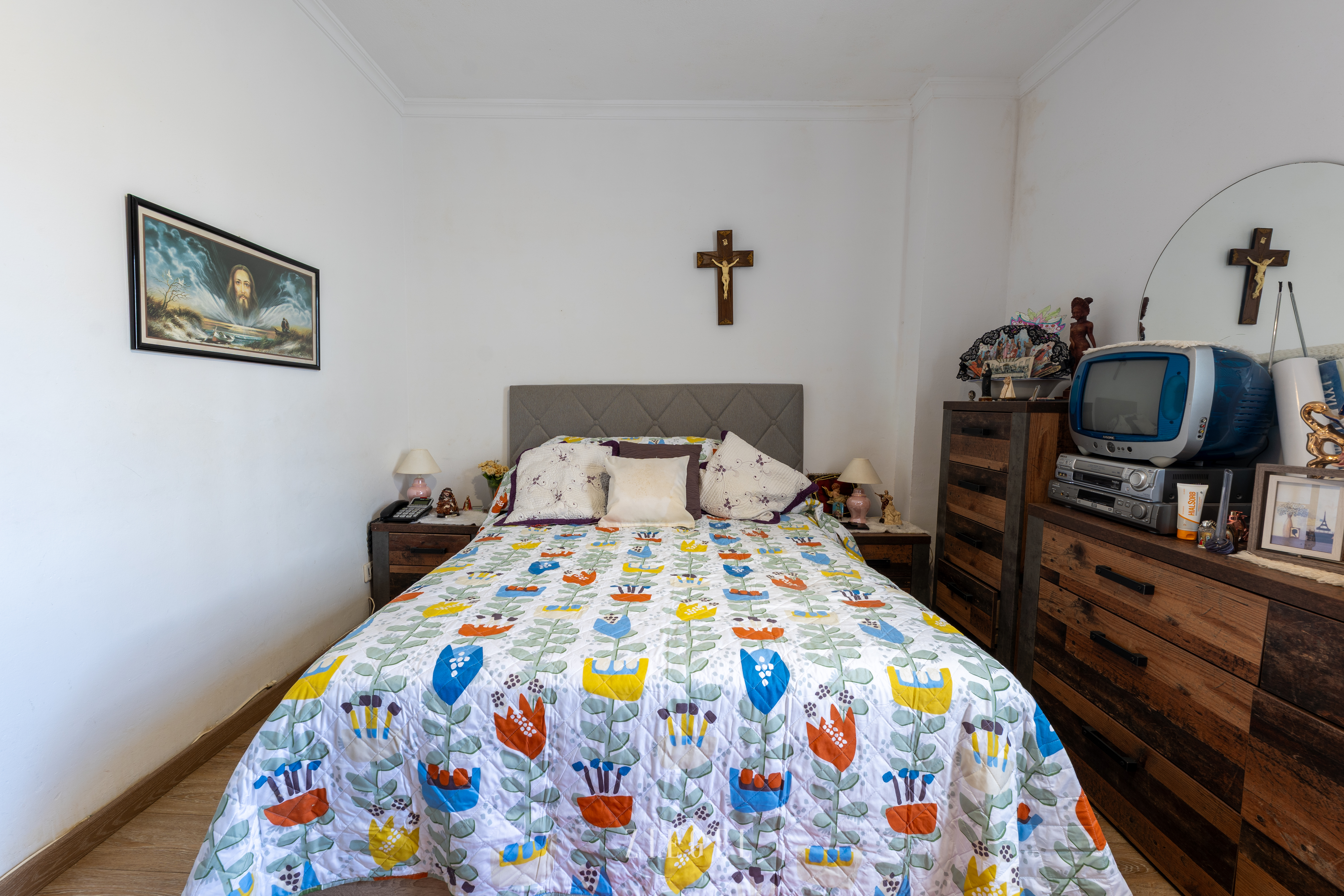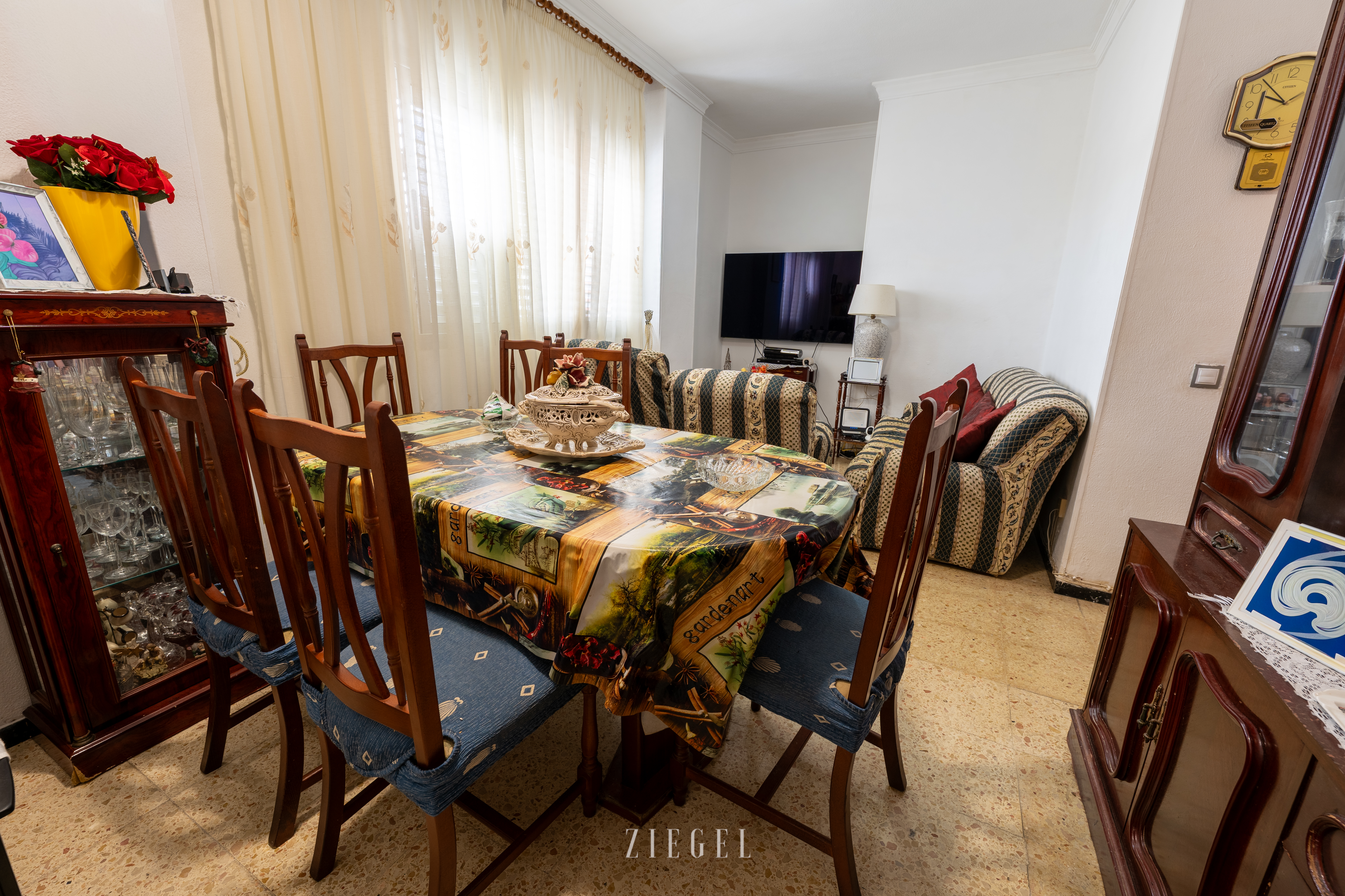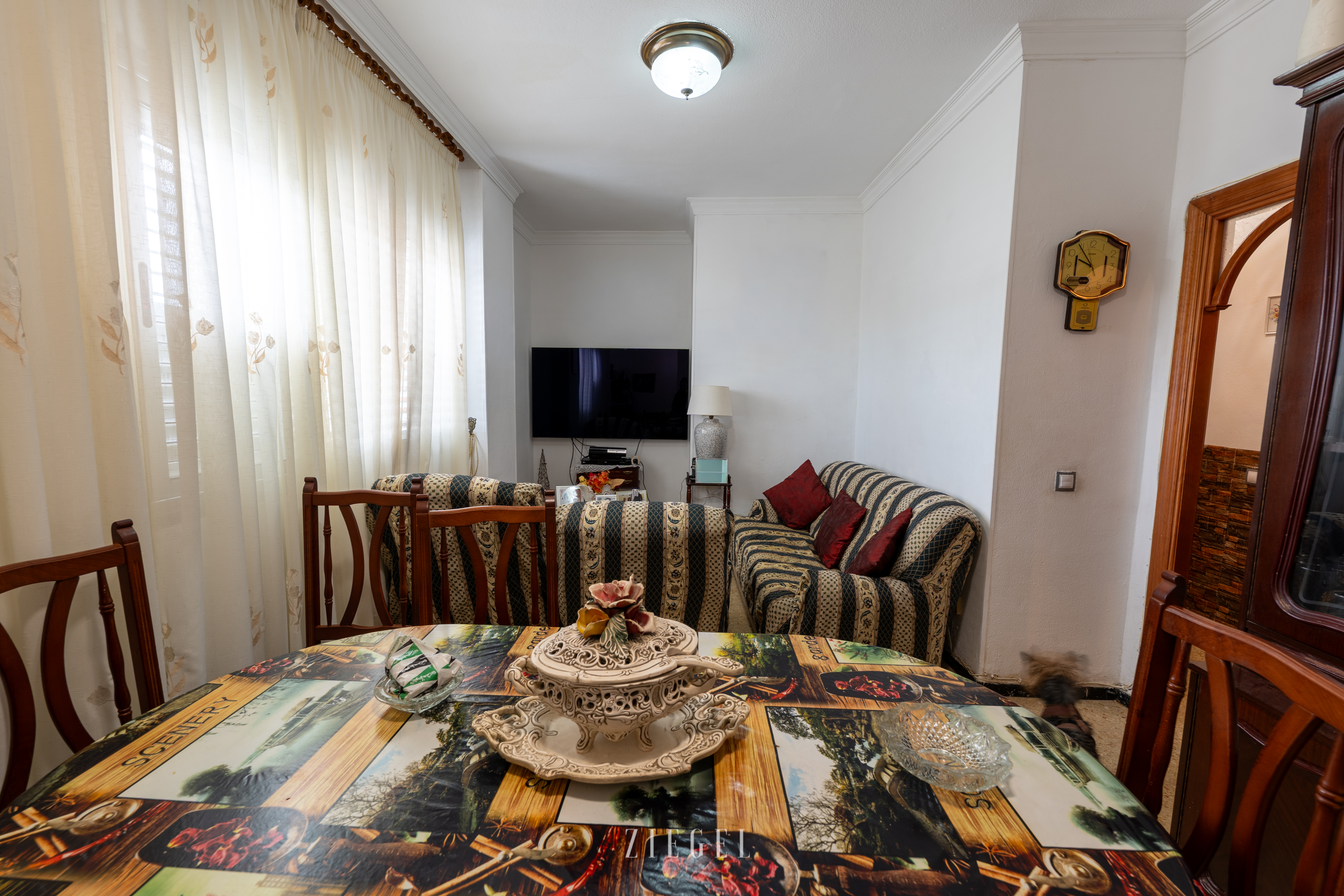 El piso está meticulosamente distribuido para maximizar cada rincón, contando con un acogedor estar-comedor que invita al descanso tras un largo día. Los tres dormitorios son ideales tanto para una familia como para aquellos que deseen tener un espacio adicional para oficina o invitados. La cocina bien equipada y una solana adicional proporcionan practicidad para las tareas diarias.