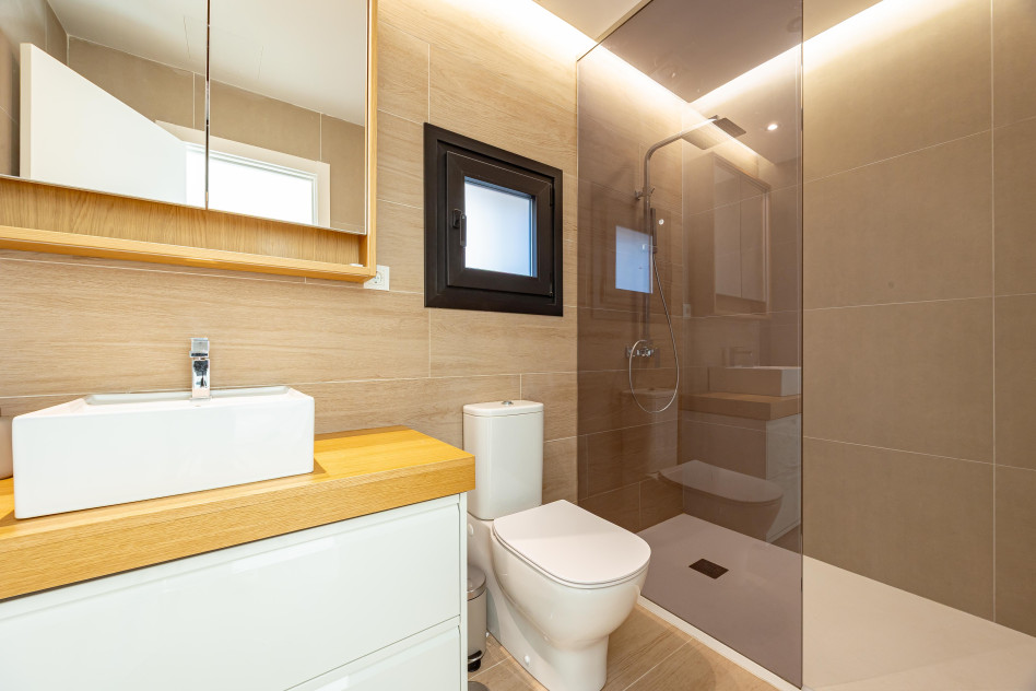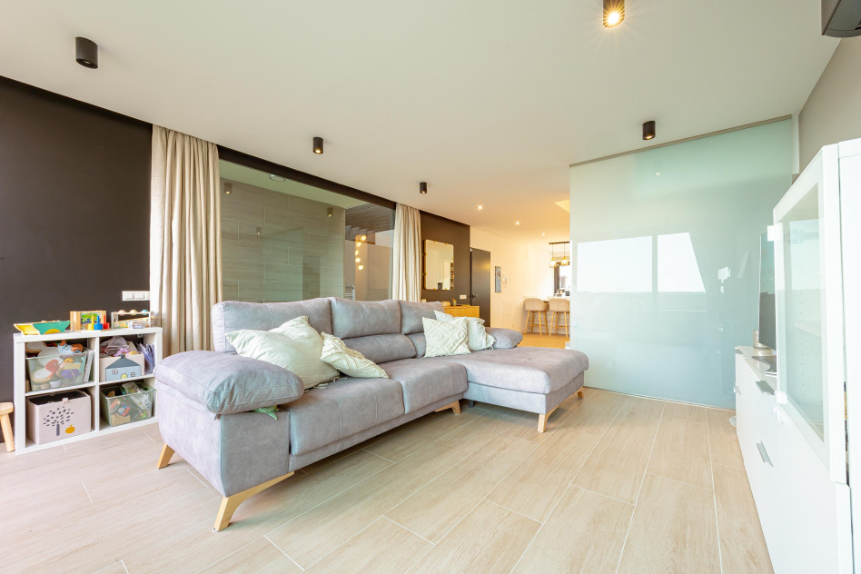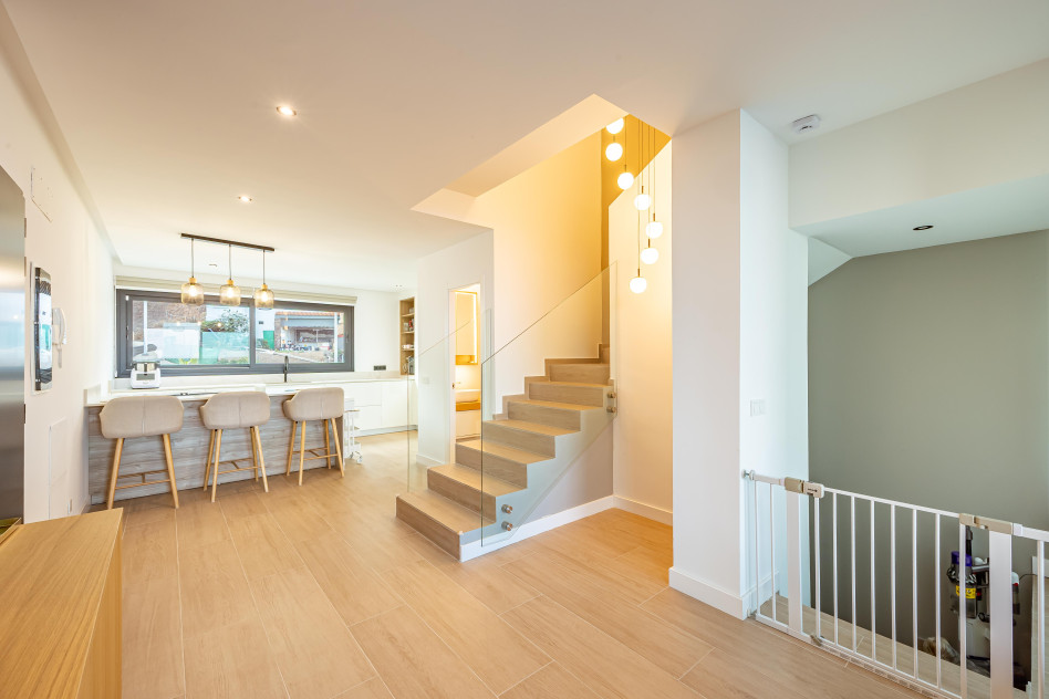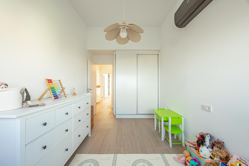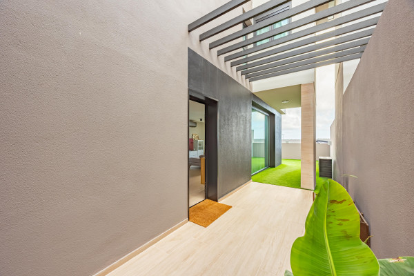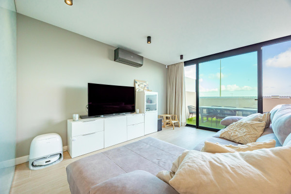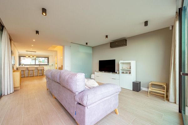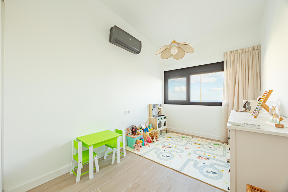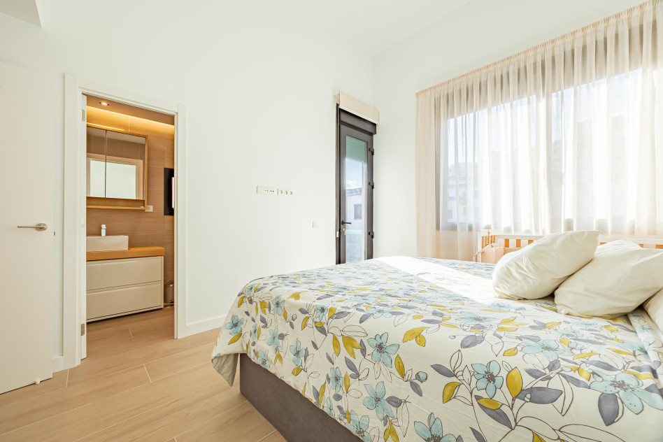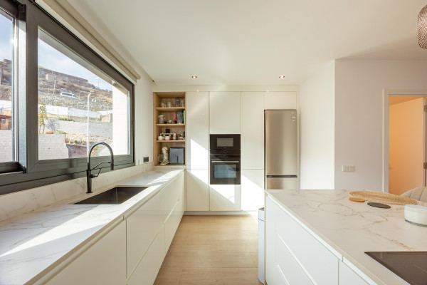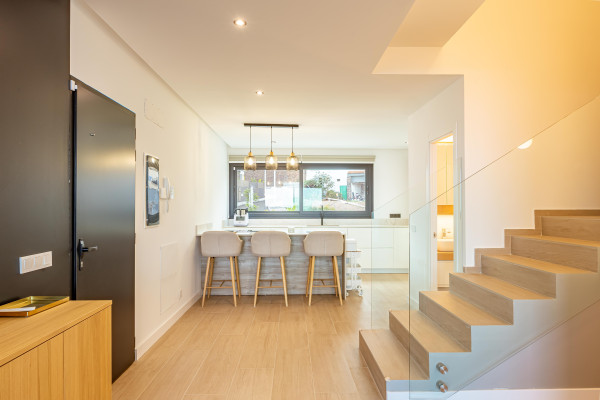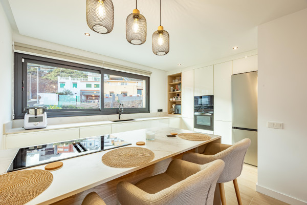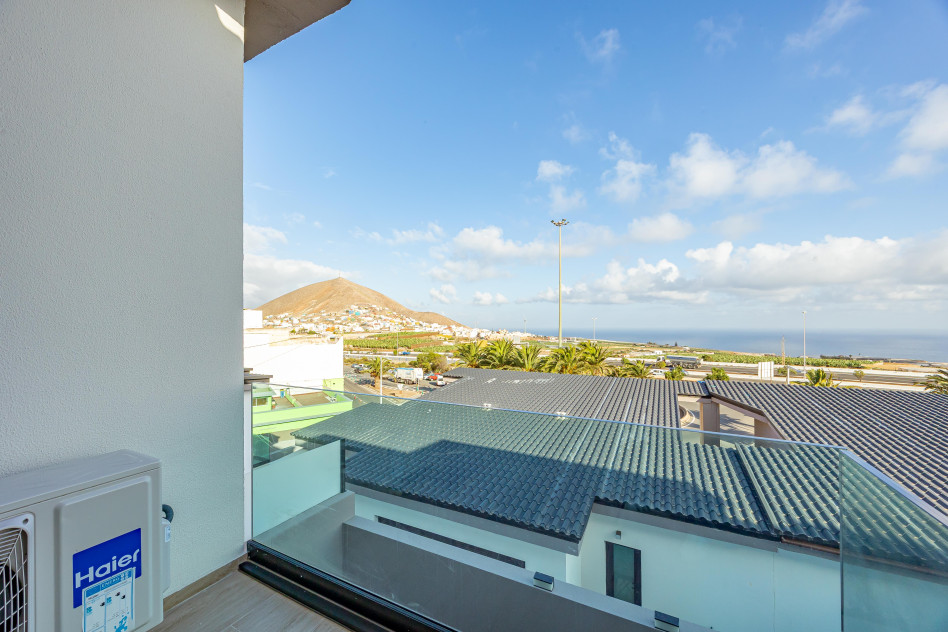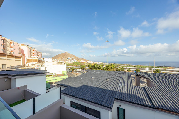 En la planta alta, con 57,40 m², se ubican tres dormitorios luminosos, dos baños completos y terrazas que ofrecen hermosas vistas hacia el mar y la montaña de Guía, ideales para disfrutar de la tranquilidad y el entorno. En esta planta también se ha instalado aire acondicionado para un ambiente perfecto en cualquier época del año.